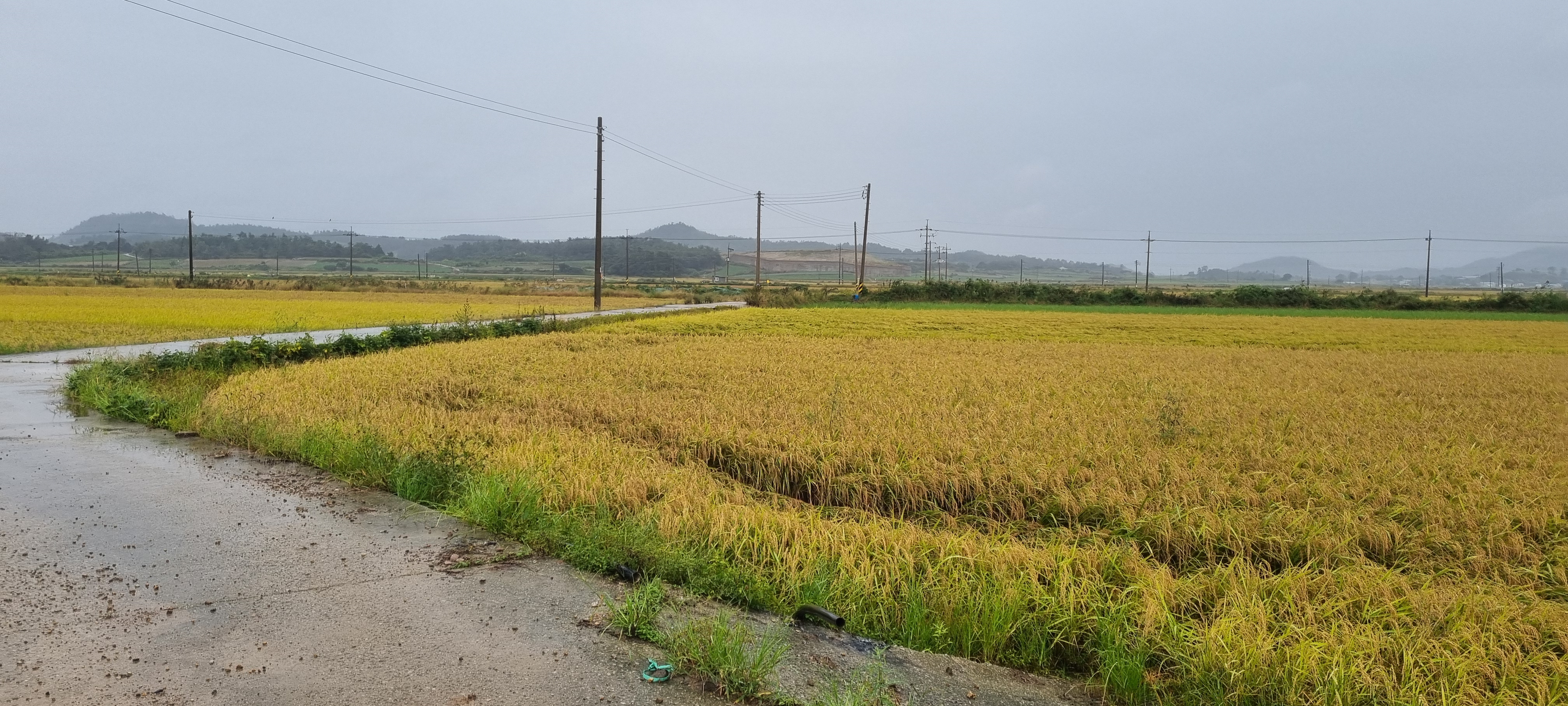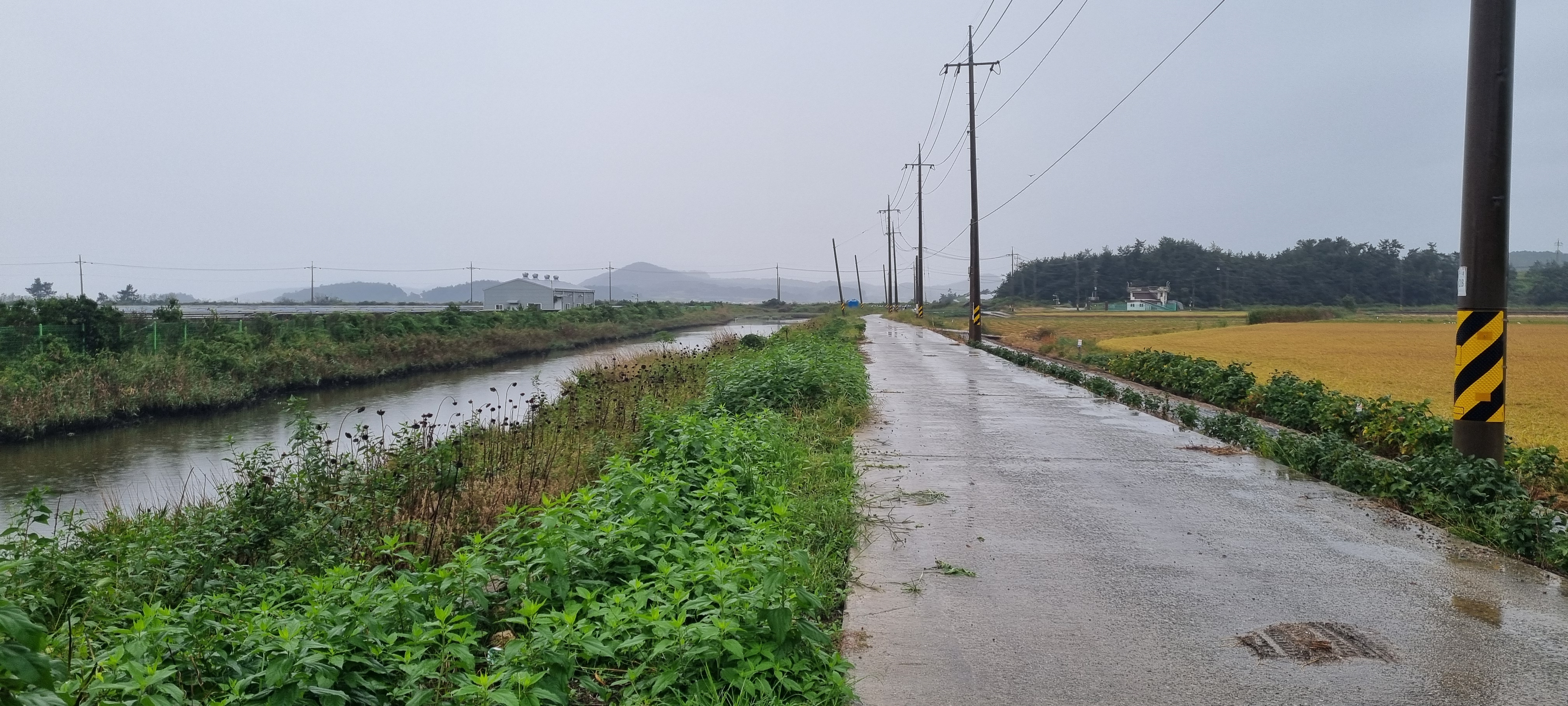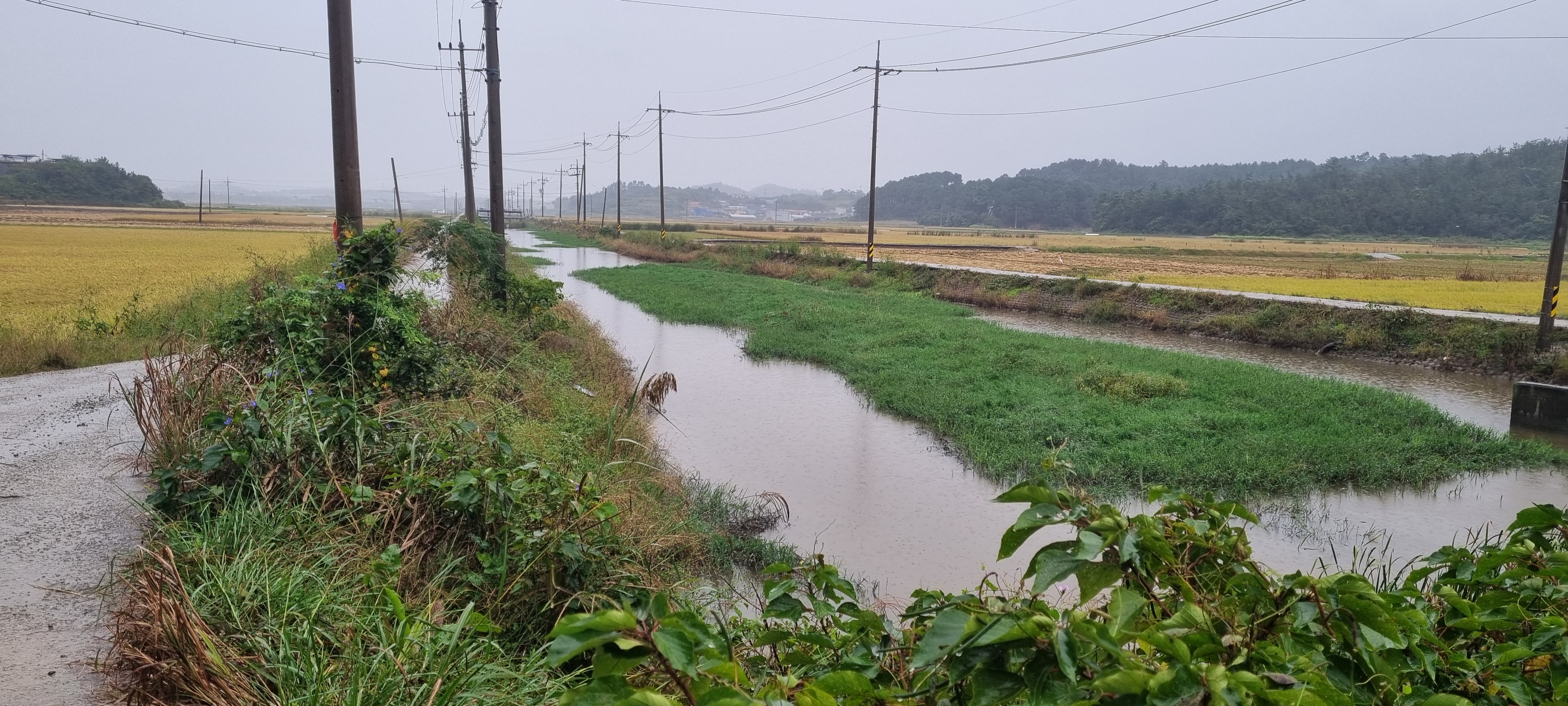 콘크리트 농로길에 물웅덩이가 장난이 아닙니다.