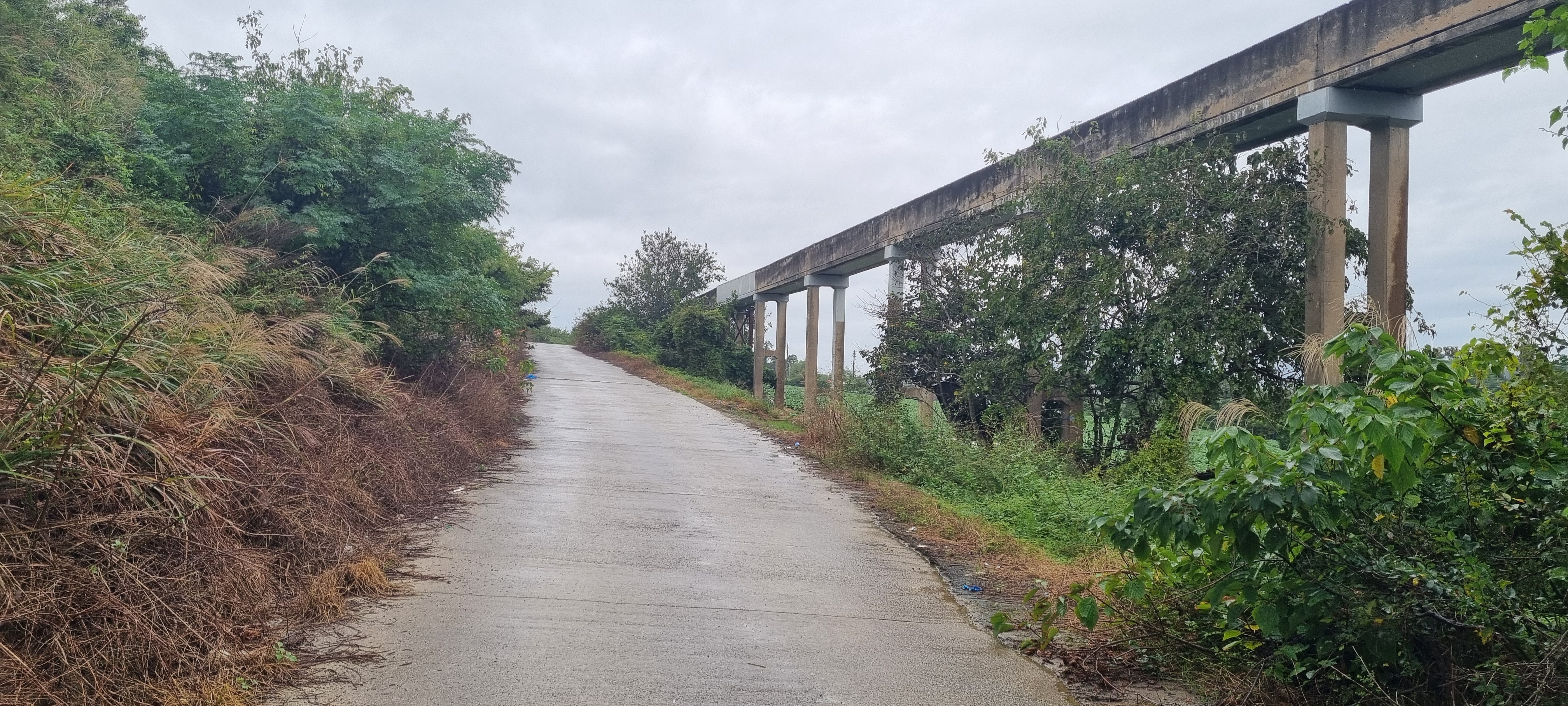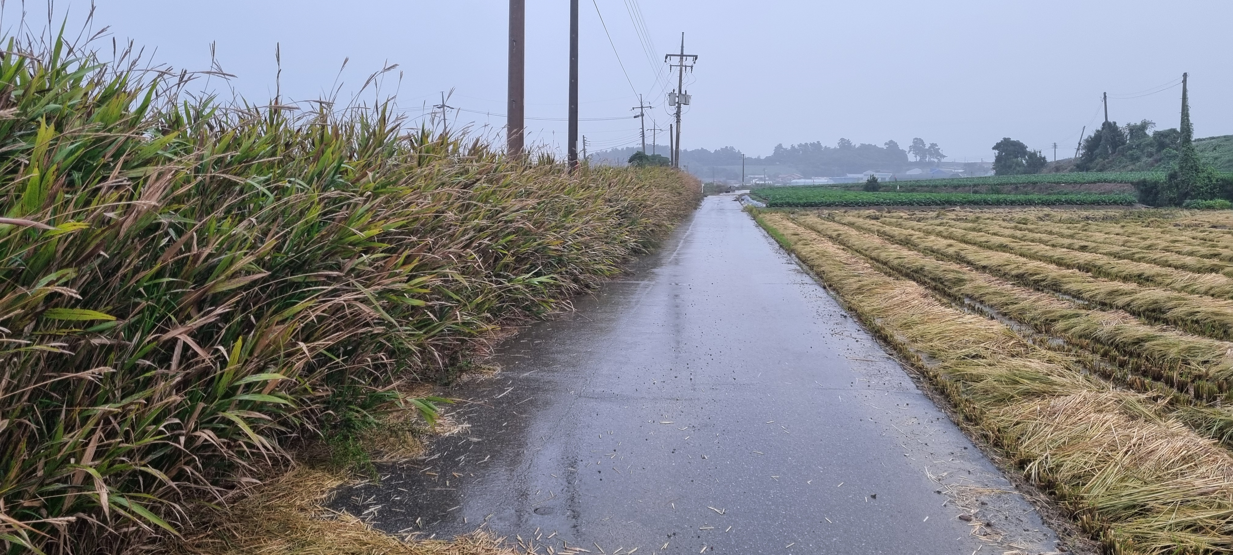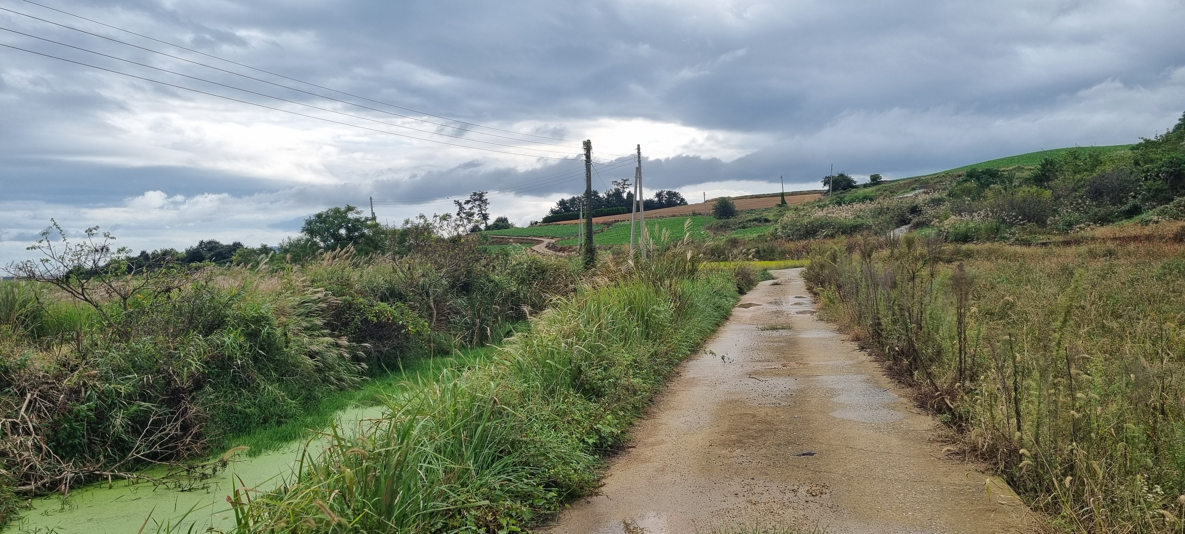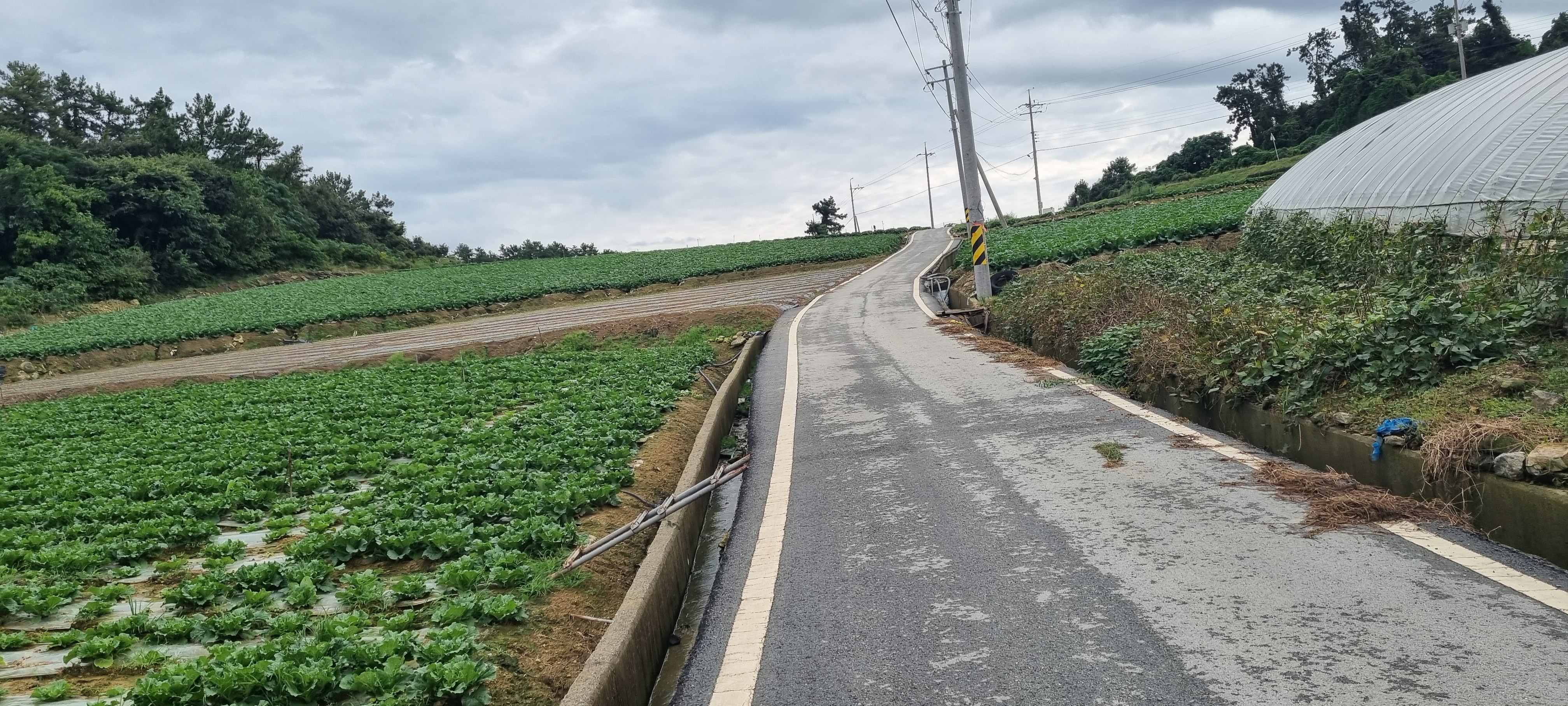콘크리트 농로길에 물웅덩이가 장난이 아닙니다.