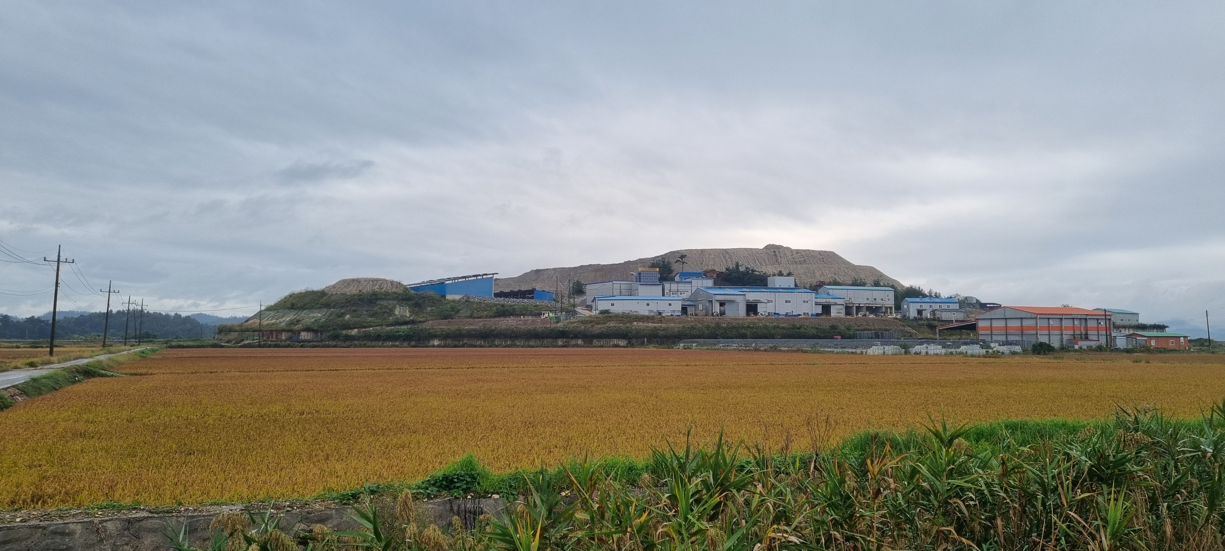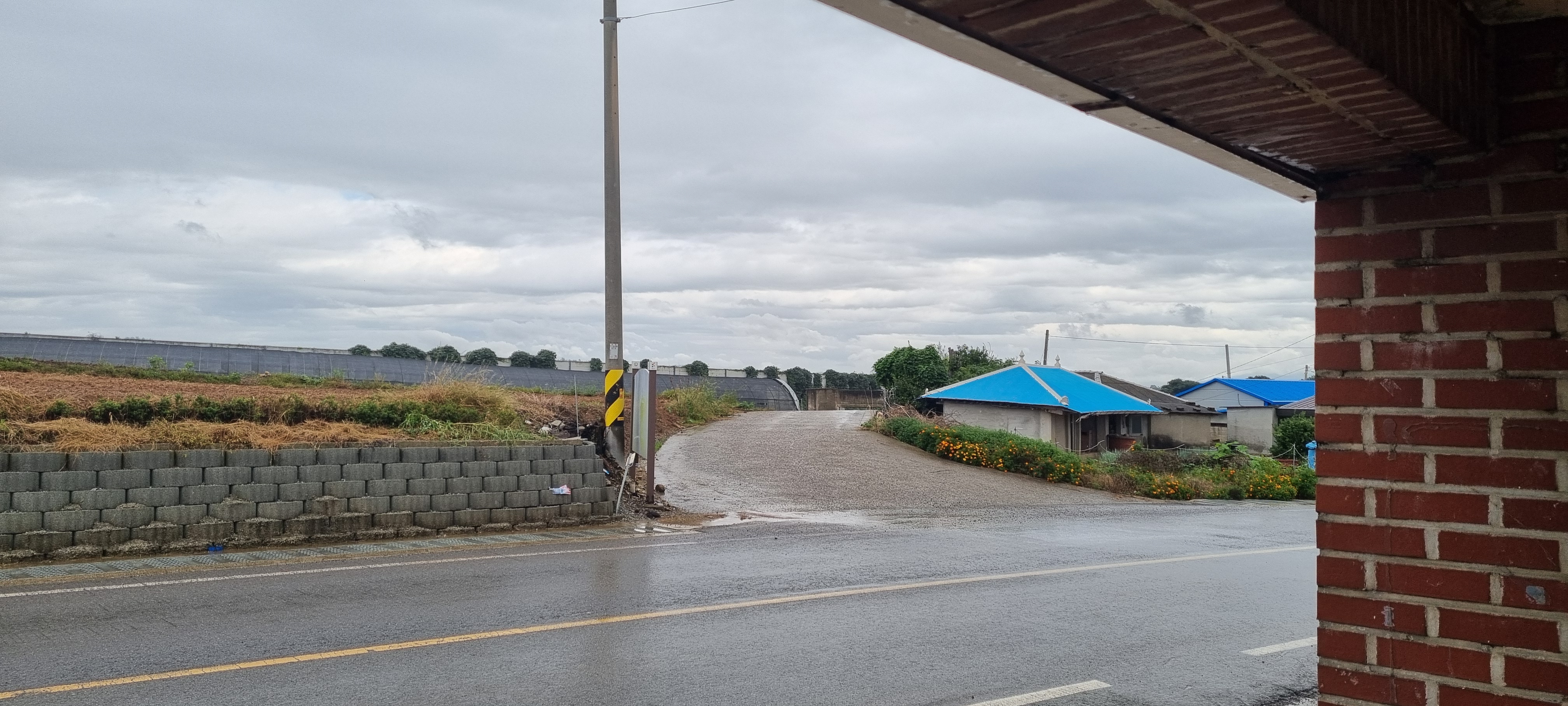 ㅇ그냥 맞으며 갈 정도의 비가 아니라.. 인근 오픈형 막사(농기구 창고용)로 들어가 20분가량 비가 잦아들기 기다림.