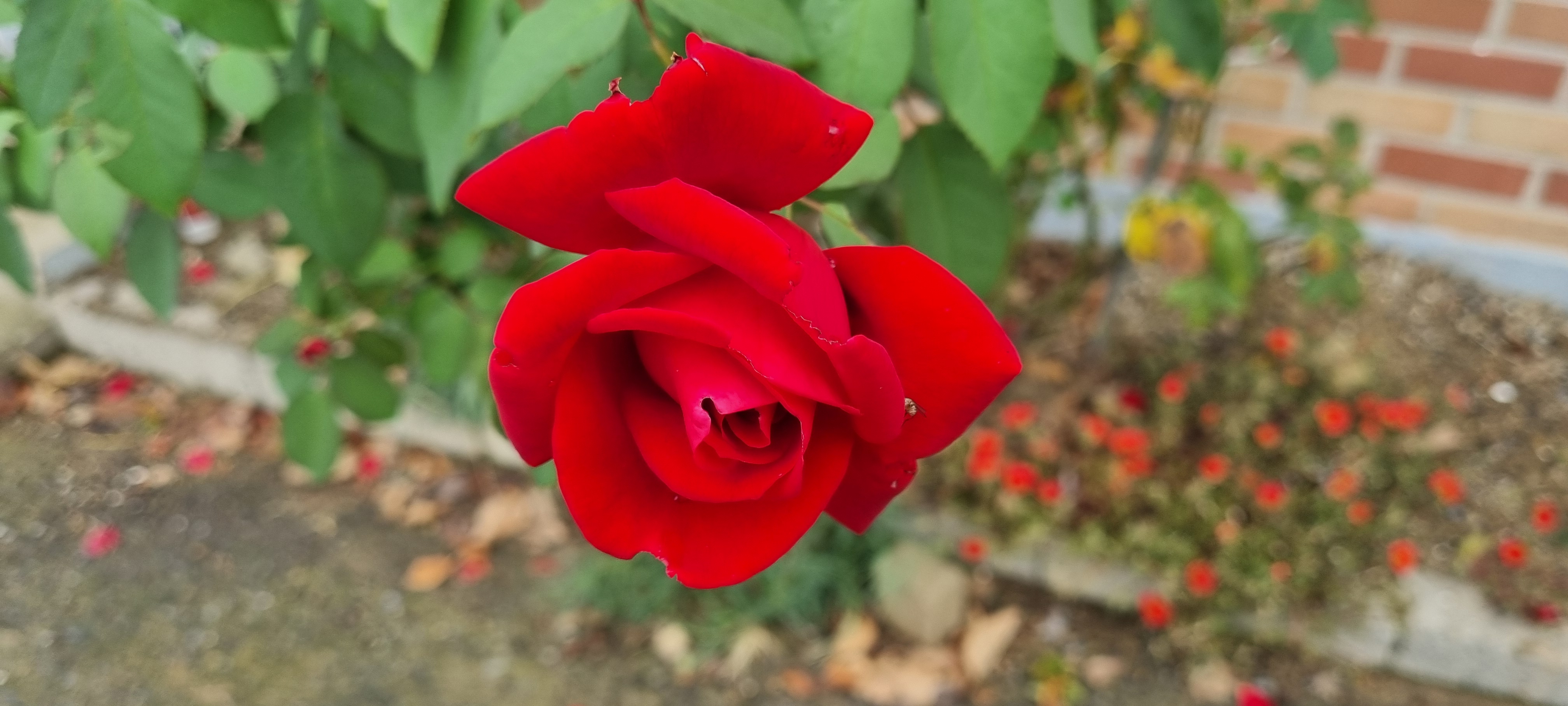 회관 근처 장미 한송이.