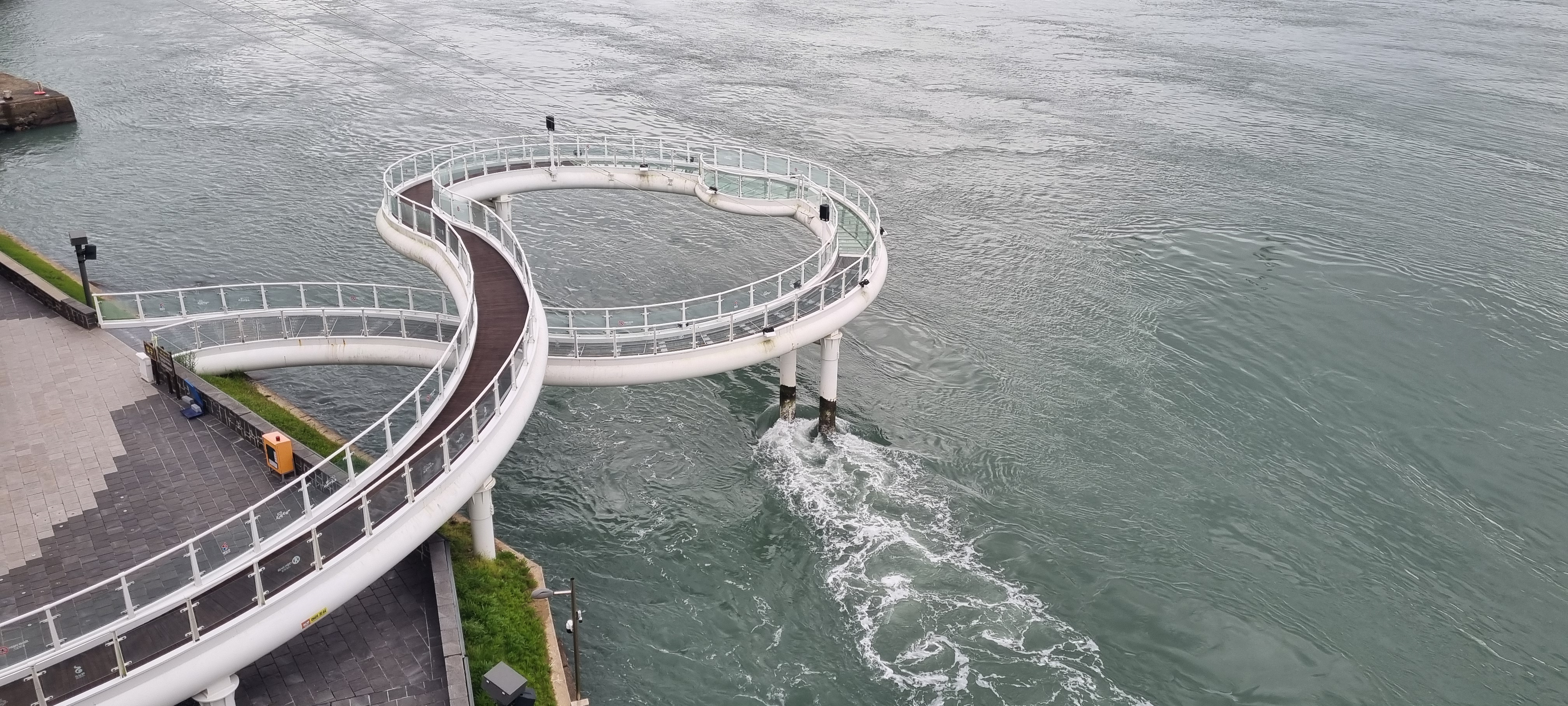 울돌목 조망대 기둥에 흐르는 바닷물이 부딪혀