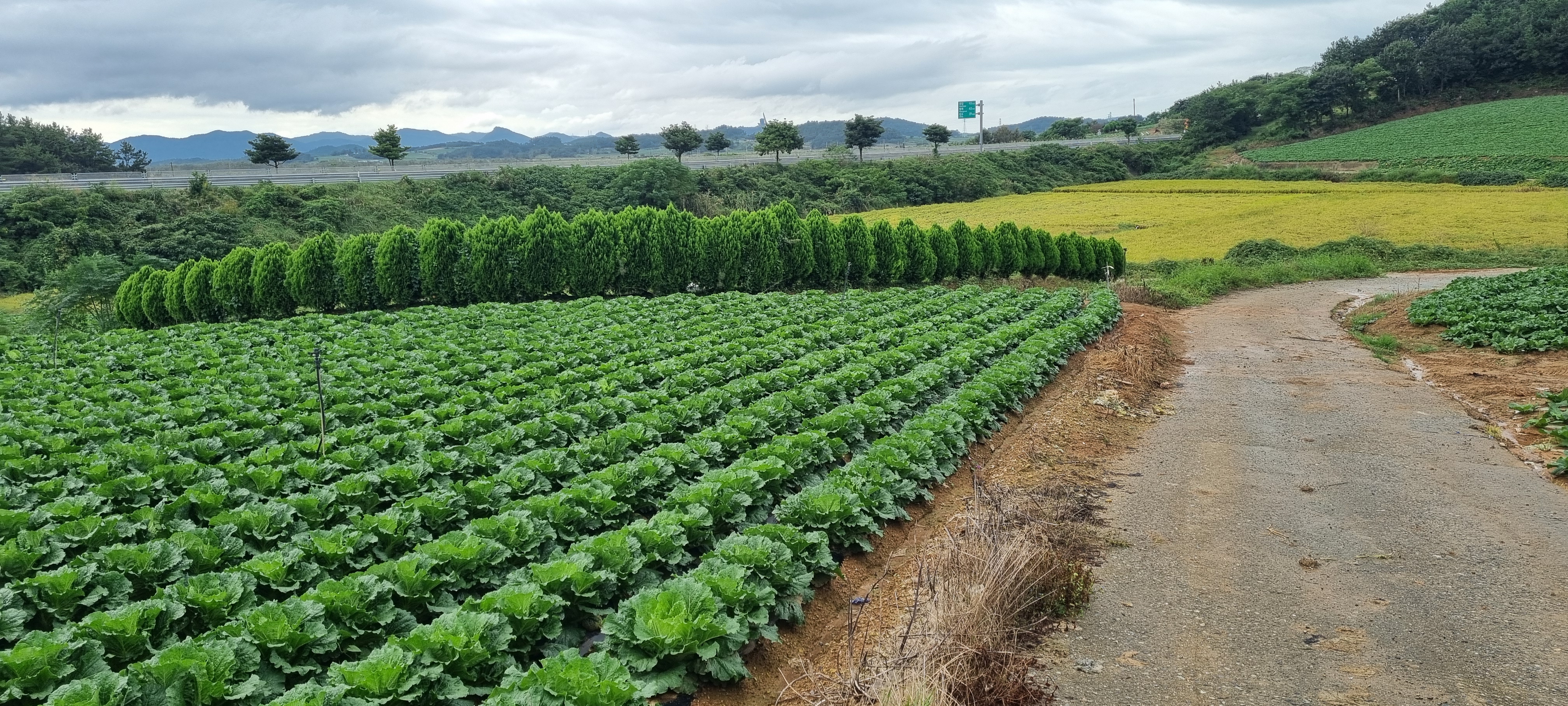 ㅇ밭의 작황은 김장철 대비 싱싱한 배추밭이 대세이고.. 간혹 파밭도 눈에 뜨임.