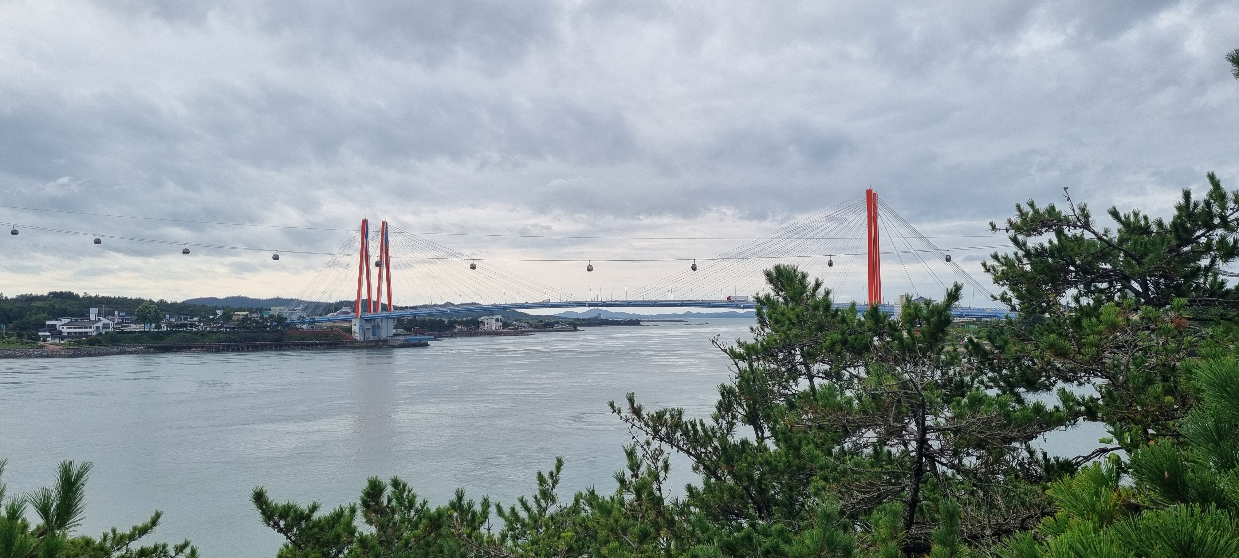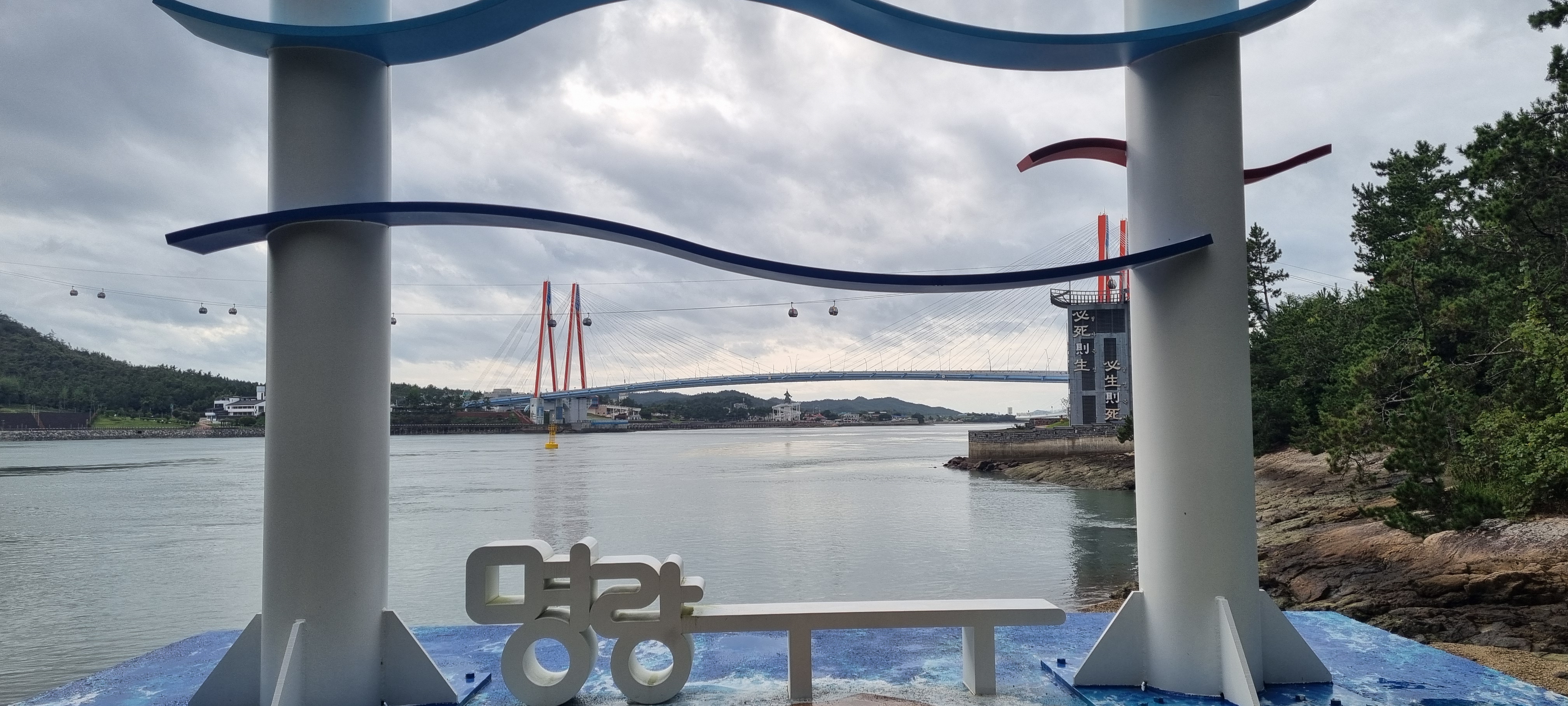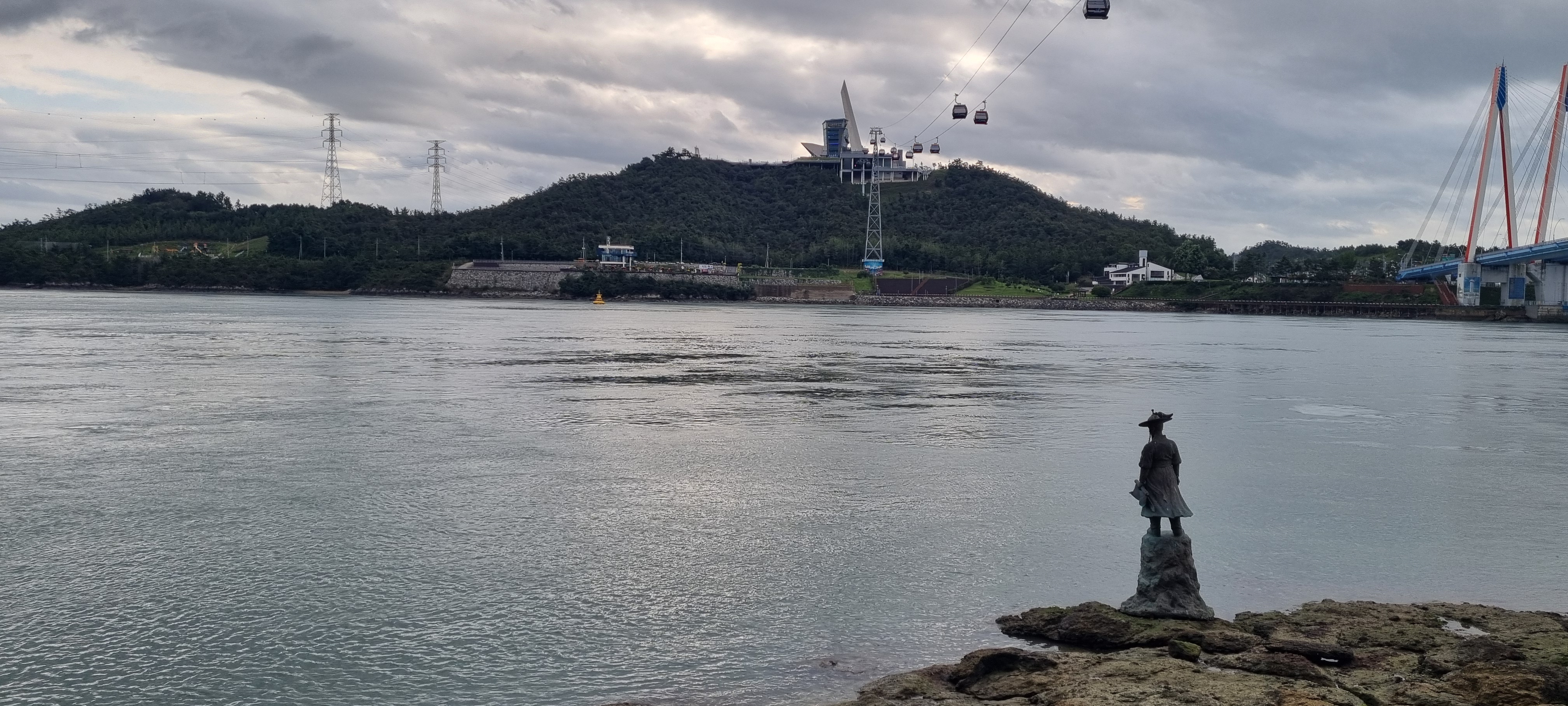 그 옆에 케이블카가 울돌목을 가로지릅니다.