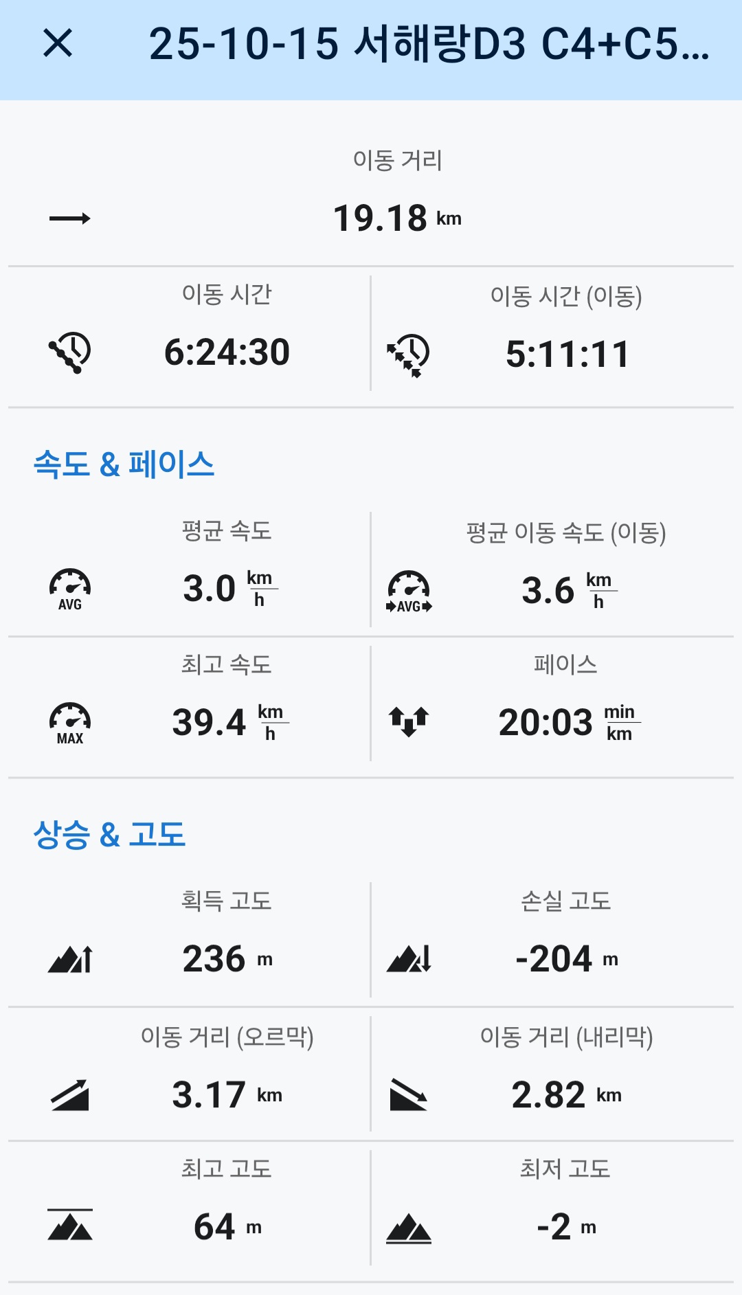 ㅇ당일 운행 결과표.(4코스 초반부 약7K정도 누락됨)
