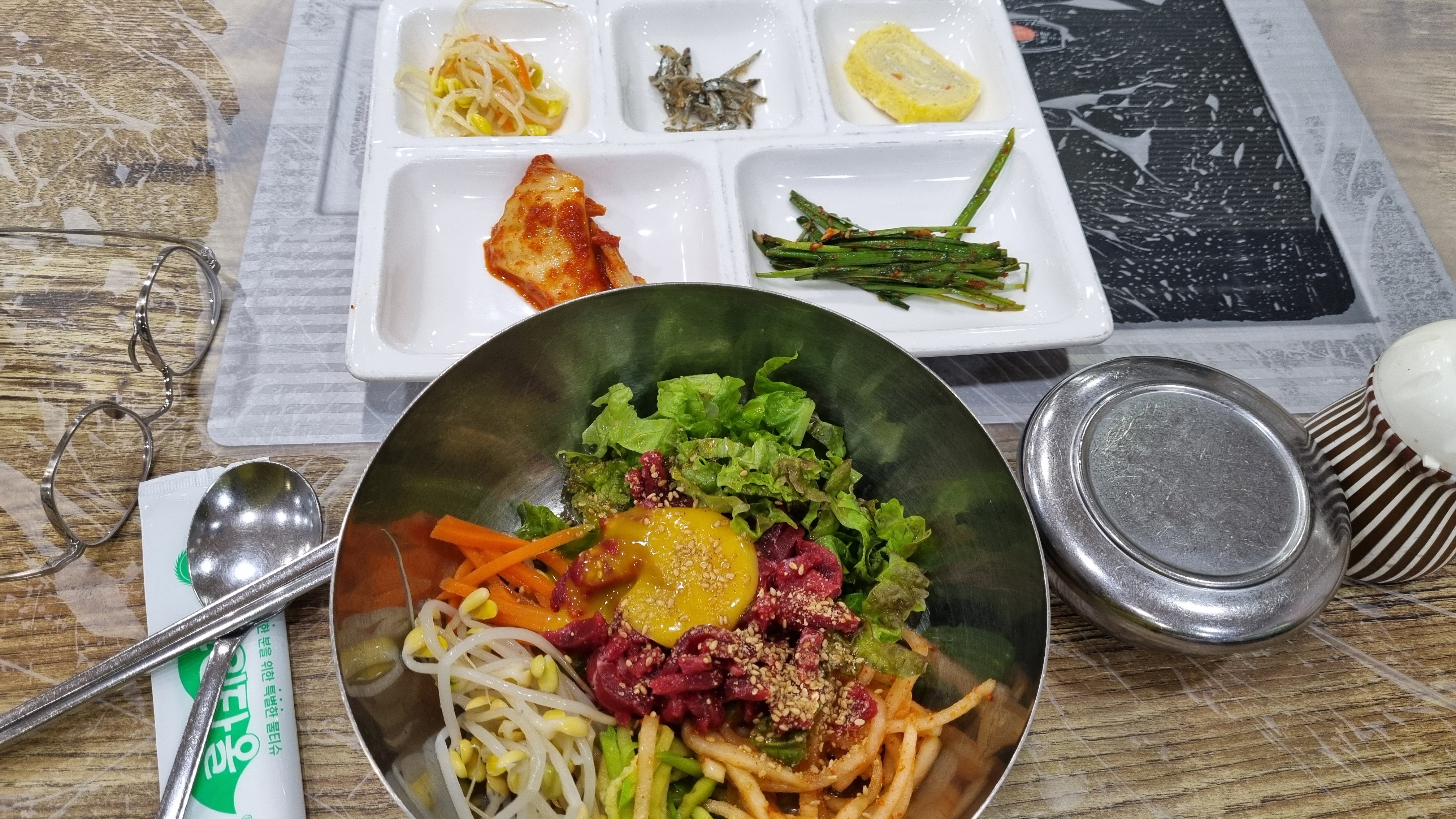 어제 들린 고깃집에서 파는 유일한 식사로 저녁 먹습니다.