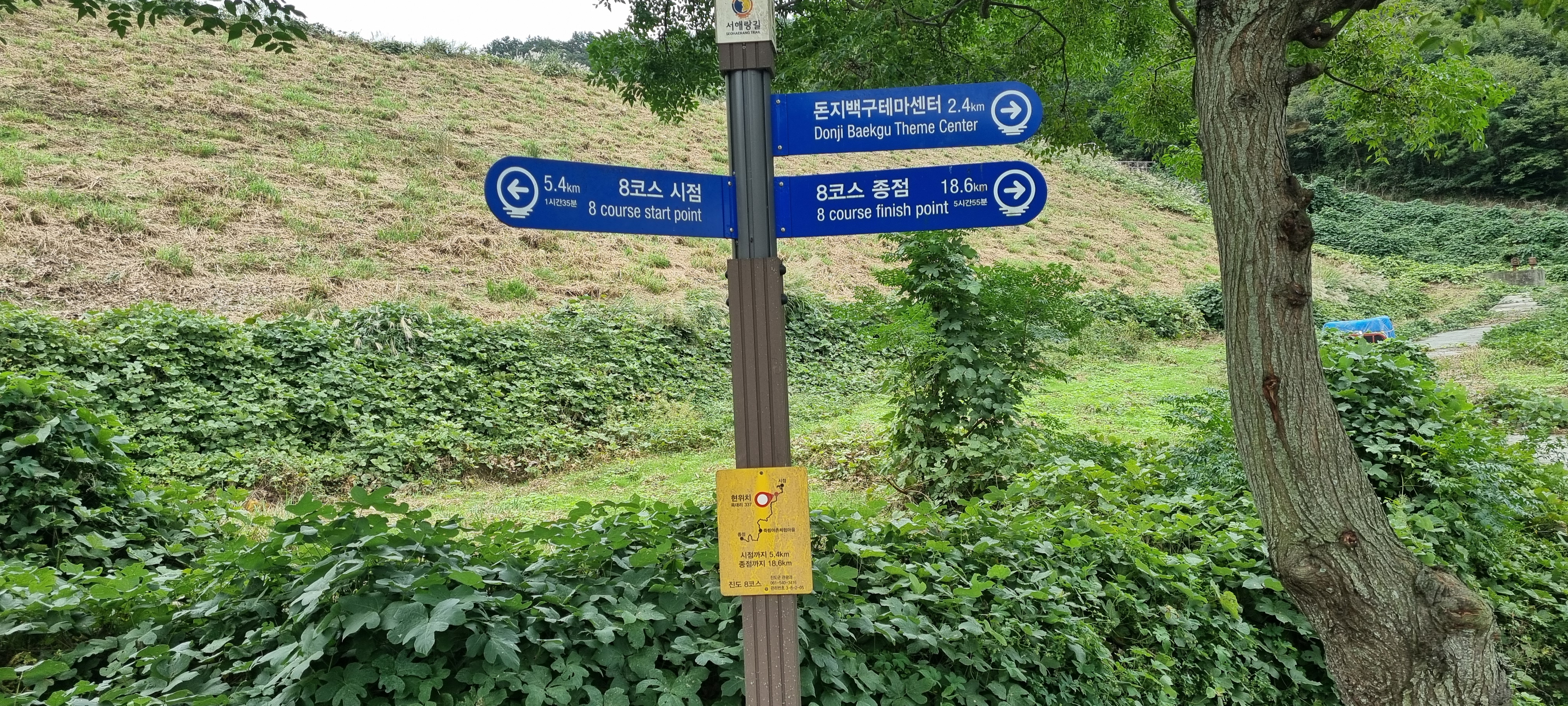 주차장 입구 한켠에 8-9코스 안내판 봅니다.
