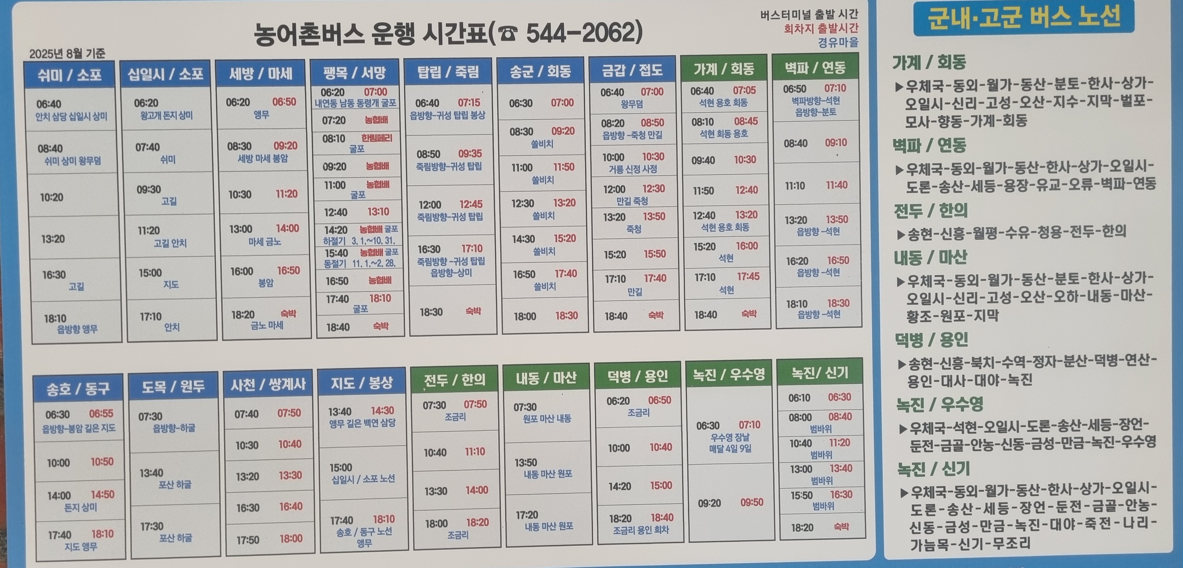 -각 정류장과 터미널에 부착된 시간표는 어디나 똑같음.