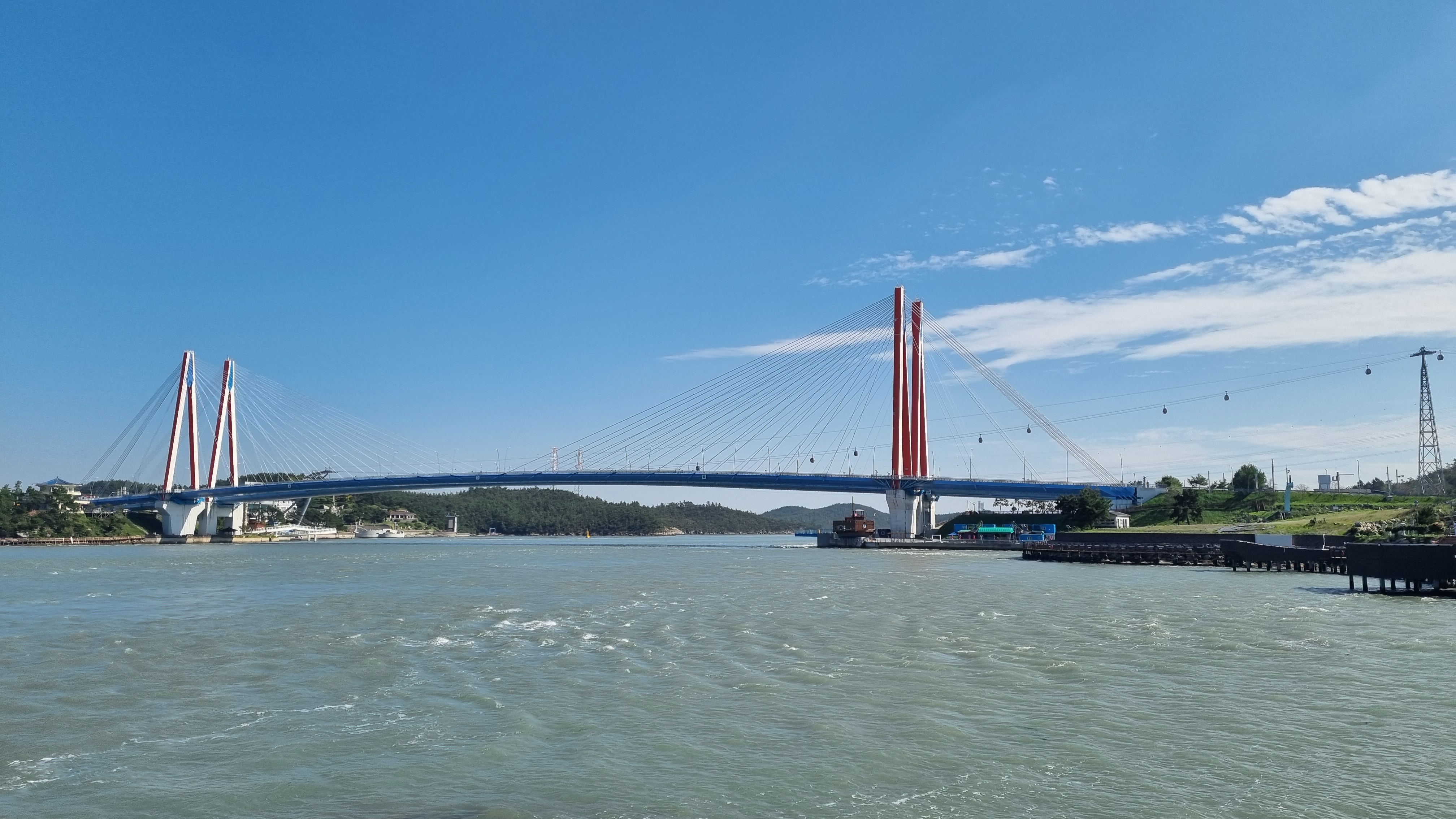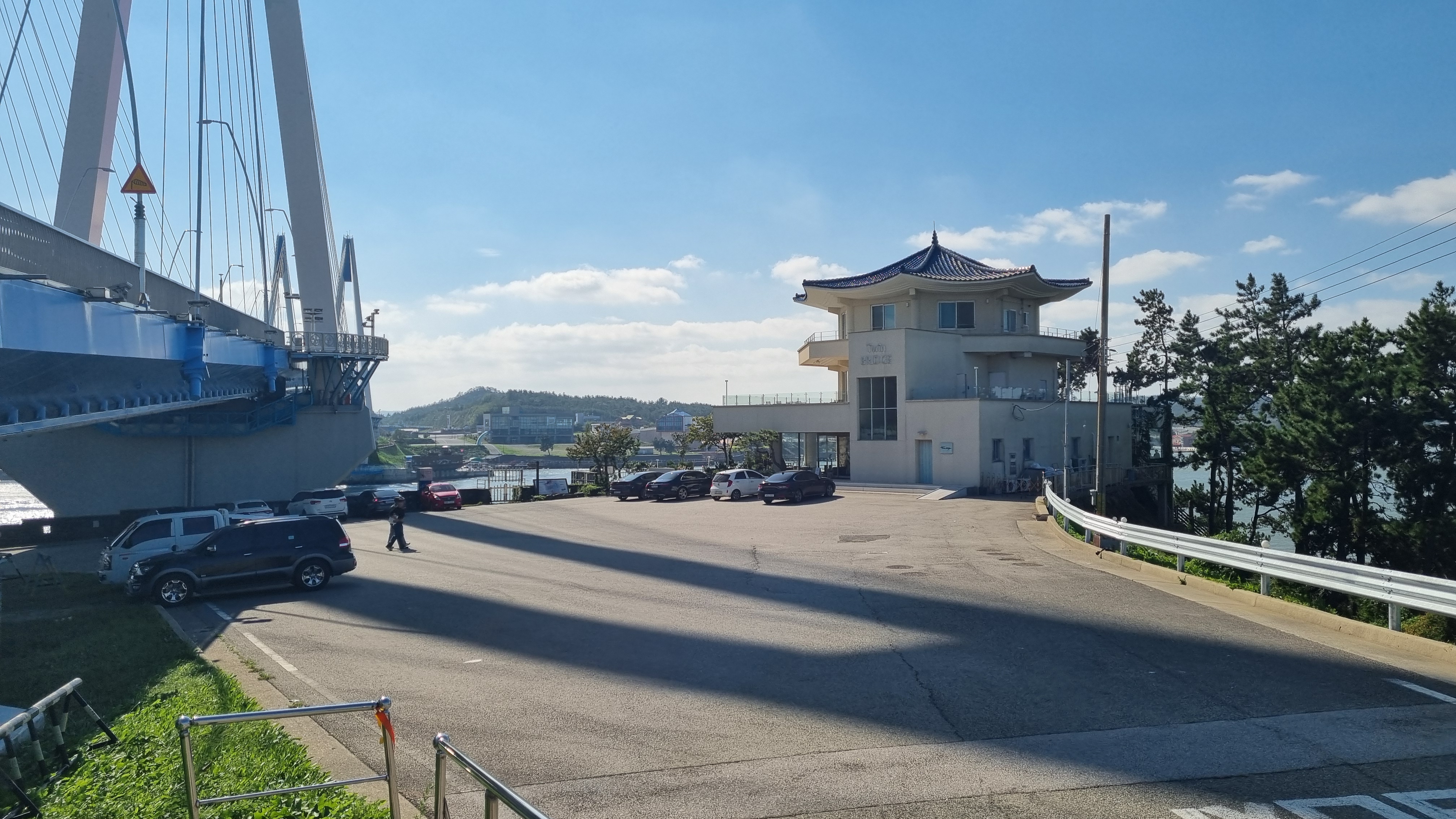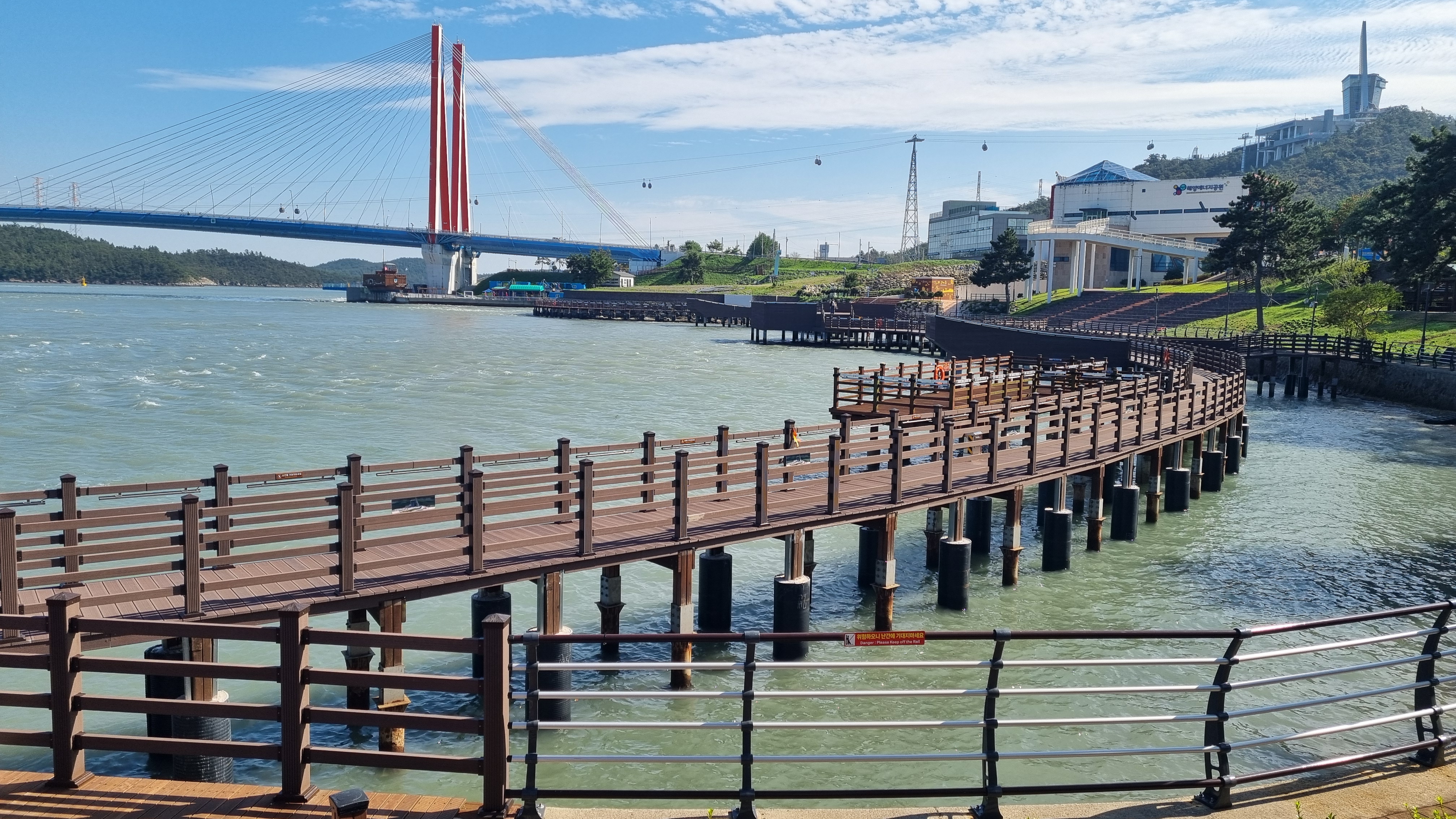 녹진관광단지 지나 대교 위로 오릅니다.