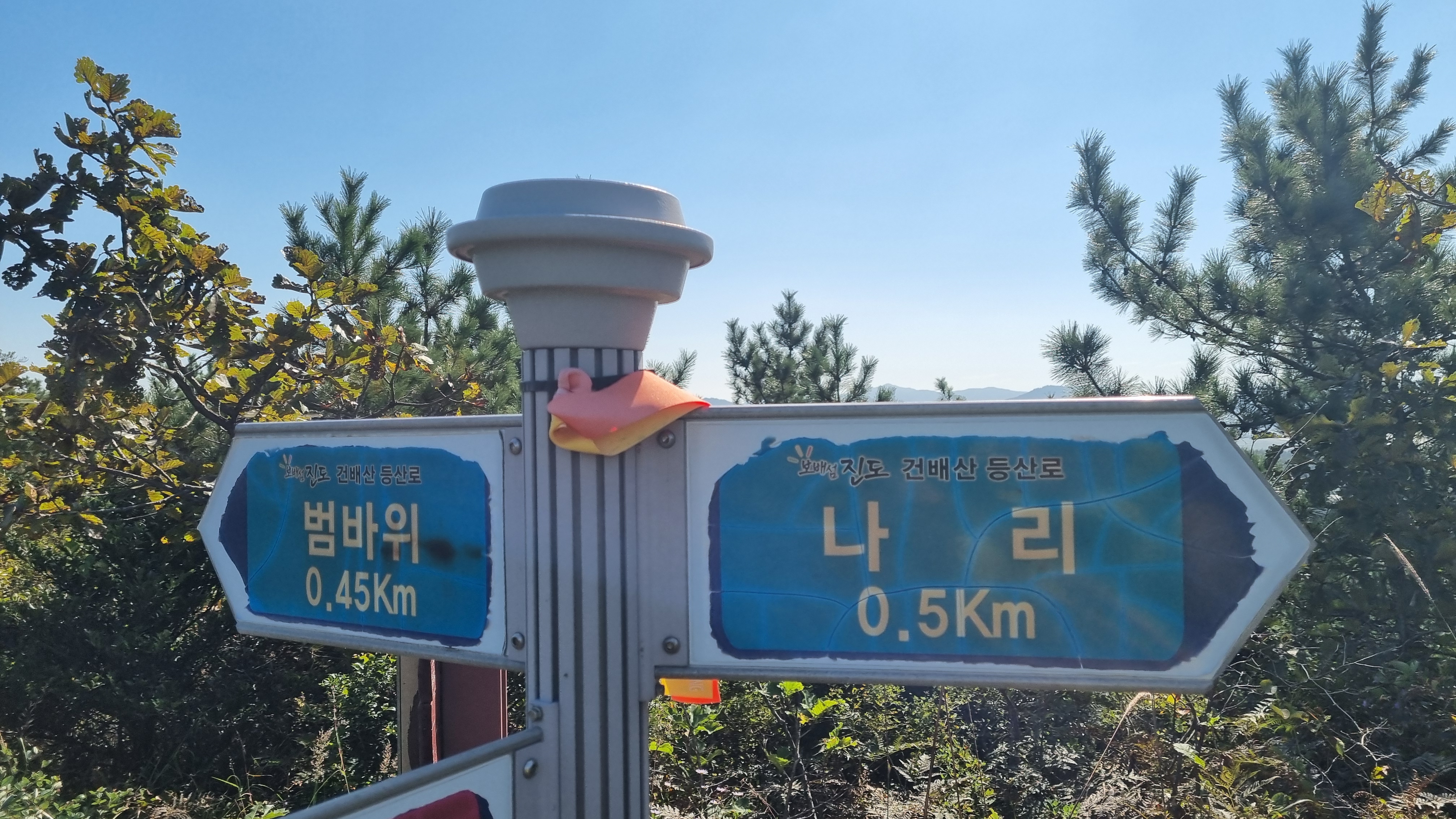 진도대교 건너편에 있는 건배산으로 등산코스를 서해랑길 루트로 편성. 야트막한 산이고.. 울돌목 건너 해남 우수영이 조망되는 아기자기한 코스.