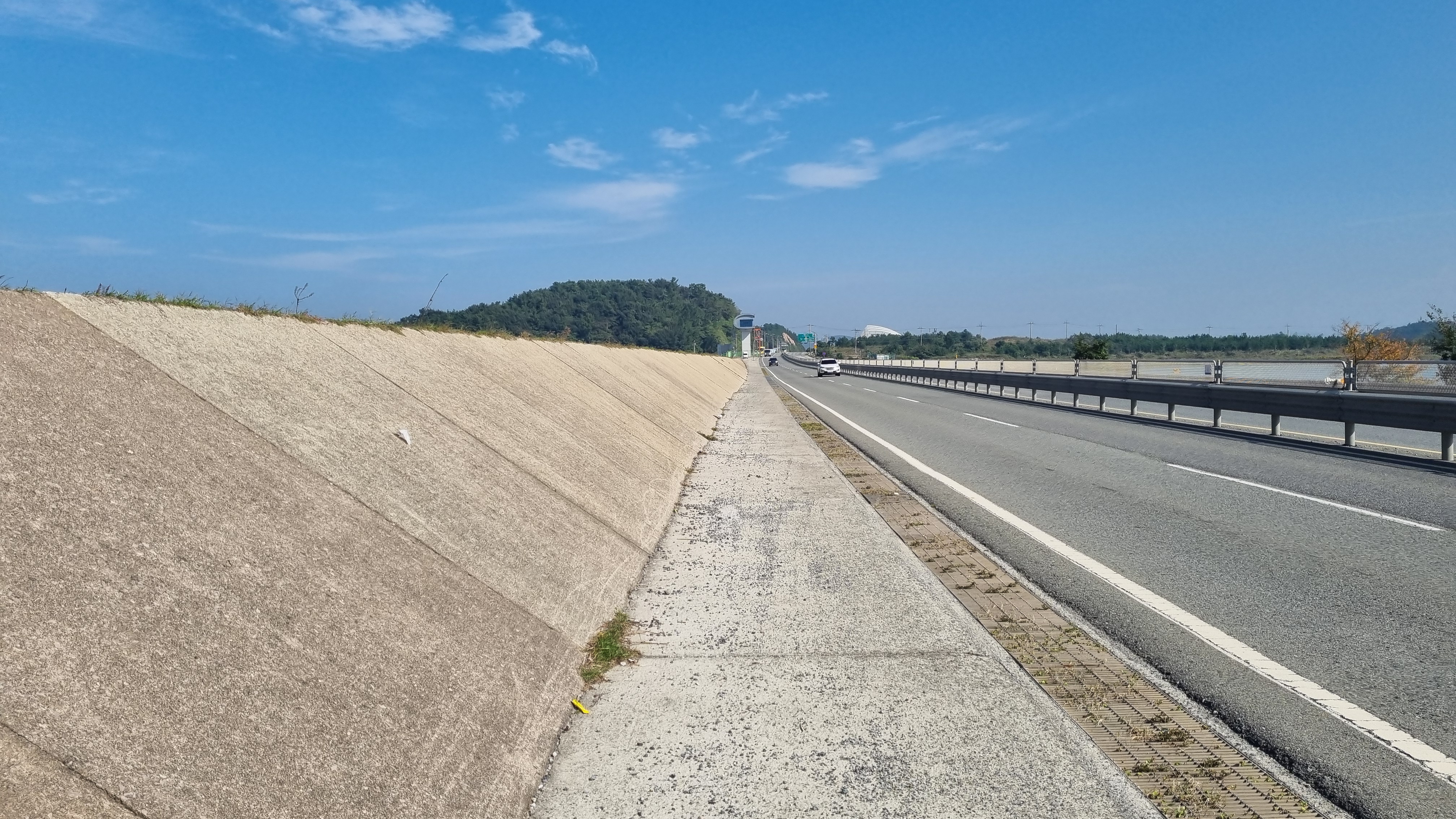 ㅇ영암호반을 따라 걷노라면 전면에.. 10킬로 전방에 아주 긴 다리(솔라시도대교)가 보이기는 하지만 지루하게 거리가 좁혀지지 않는 듯.