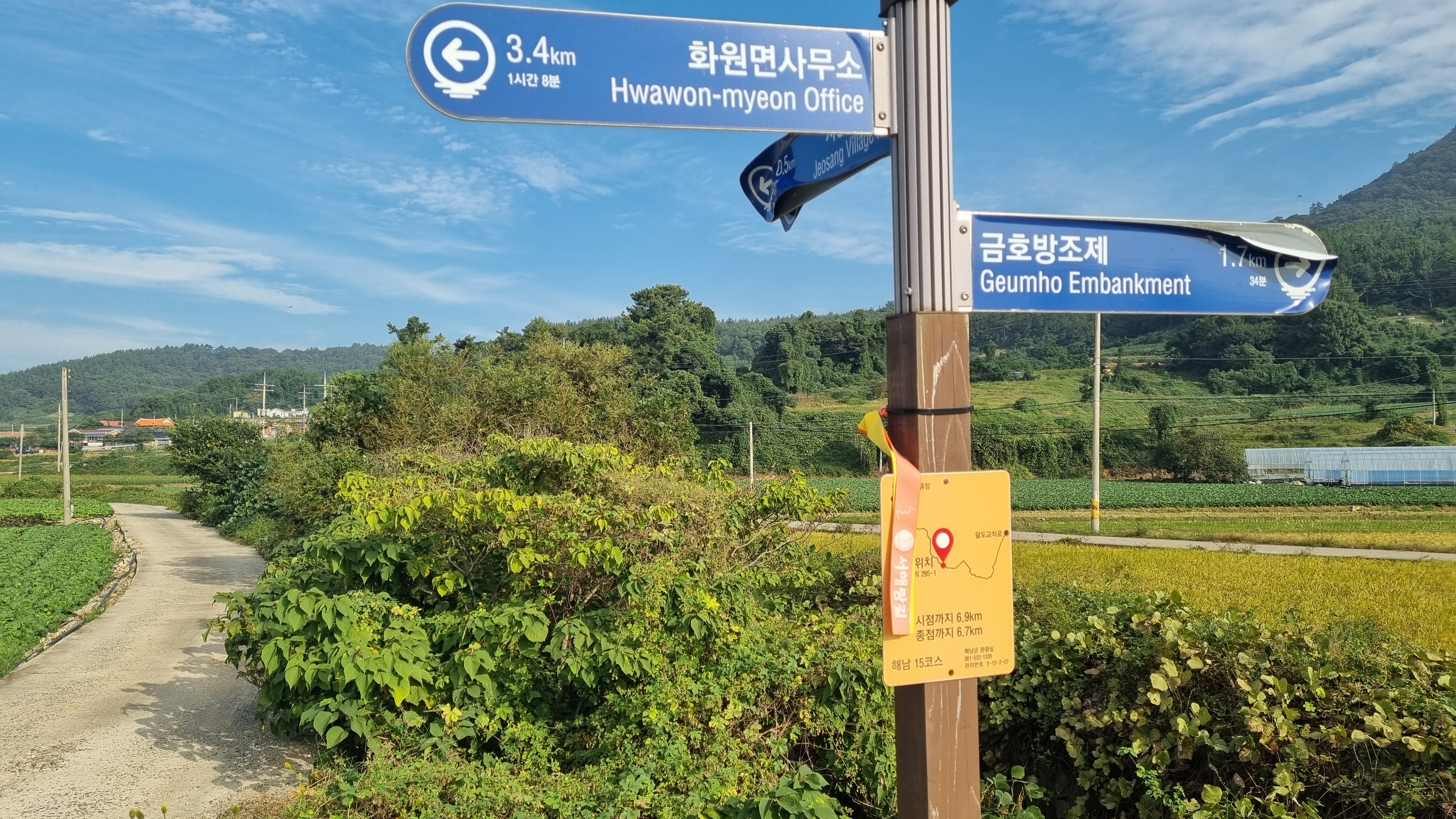ㅇ15코스; -당포버스정류장-(4.9K)-마산제-(3.9K)-금호갑문-(4.8K)-달도 교차로