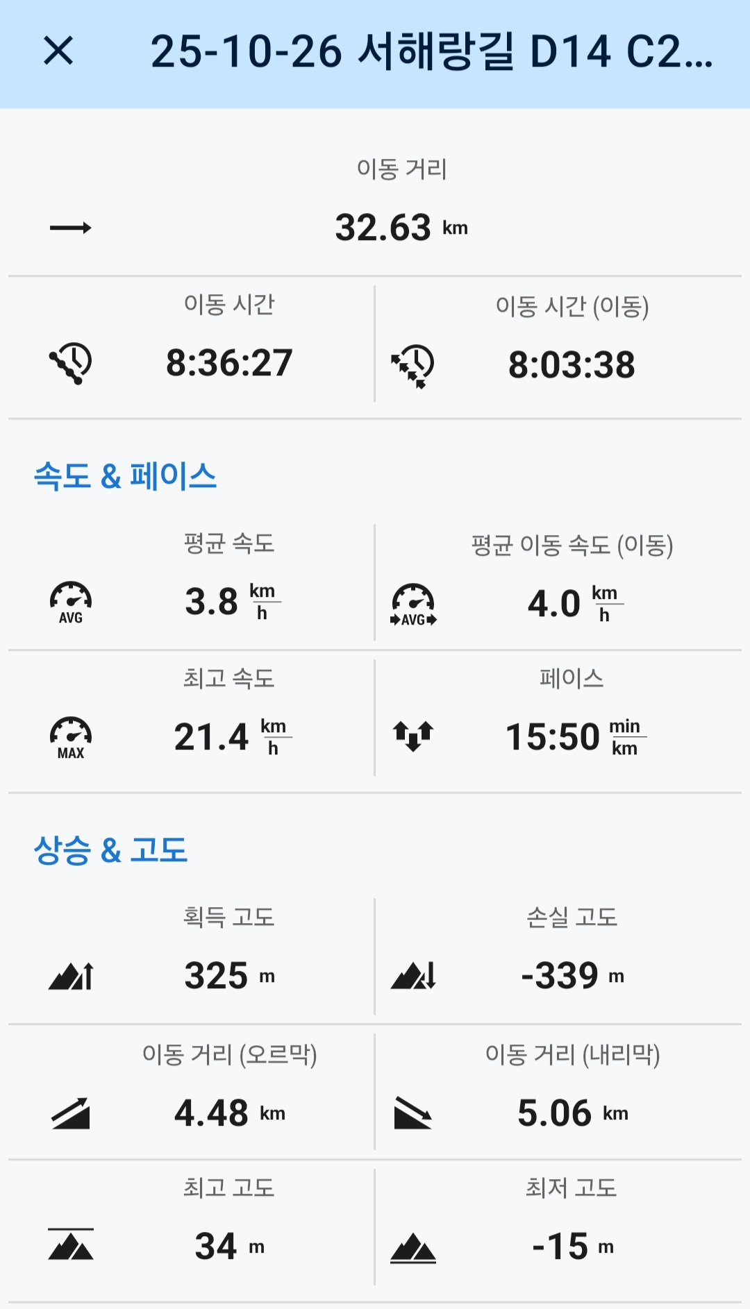 ㅇ로커스 맵상의 금일 트랙-32.63Km.