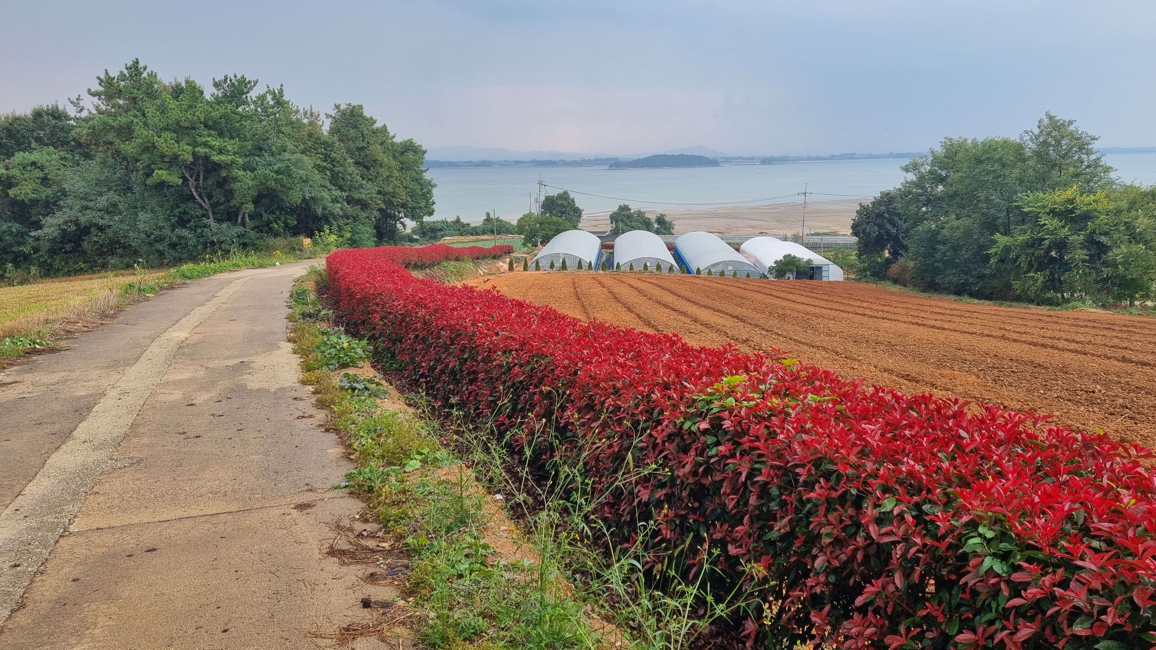 길은 해안 마을 농경지 구간으로 바뀝니다.