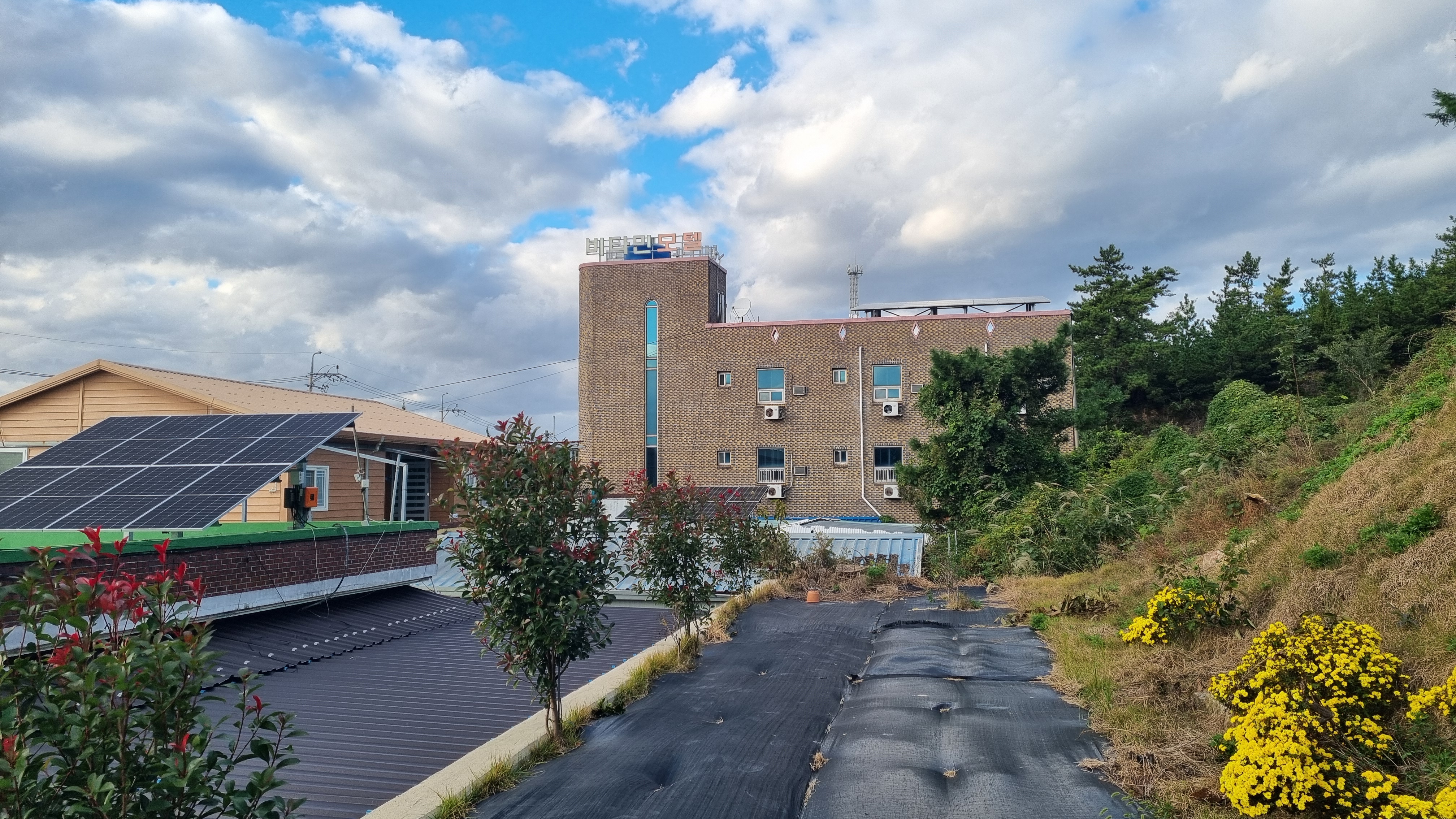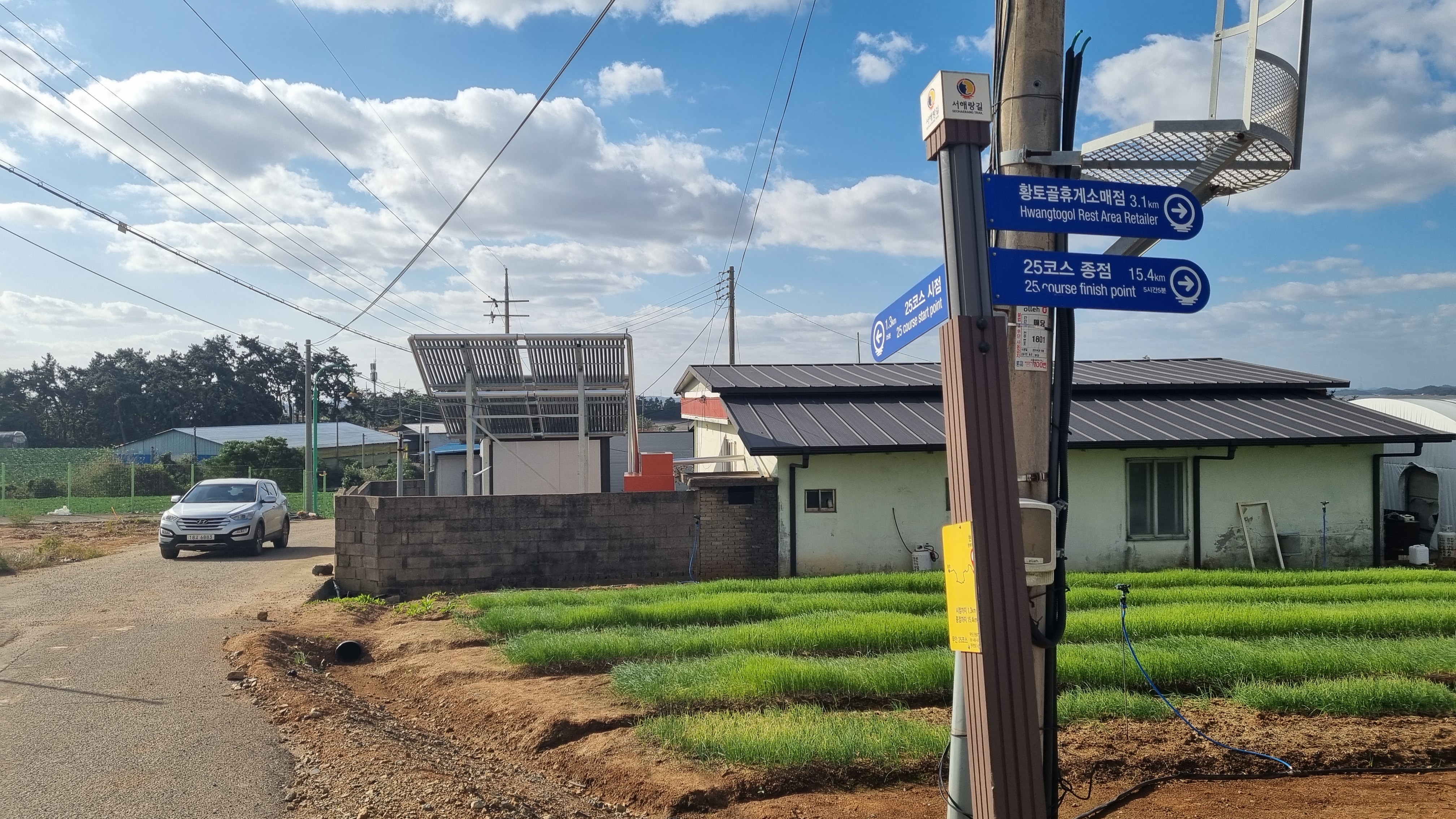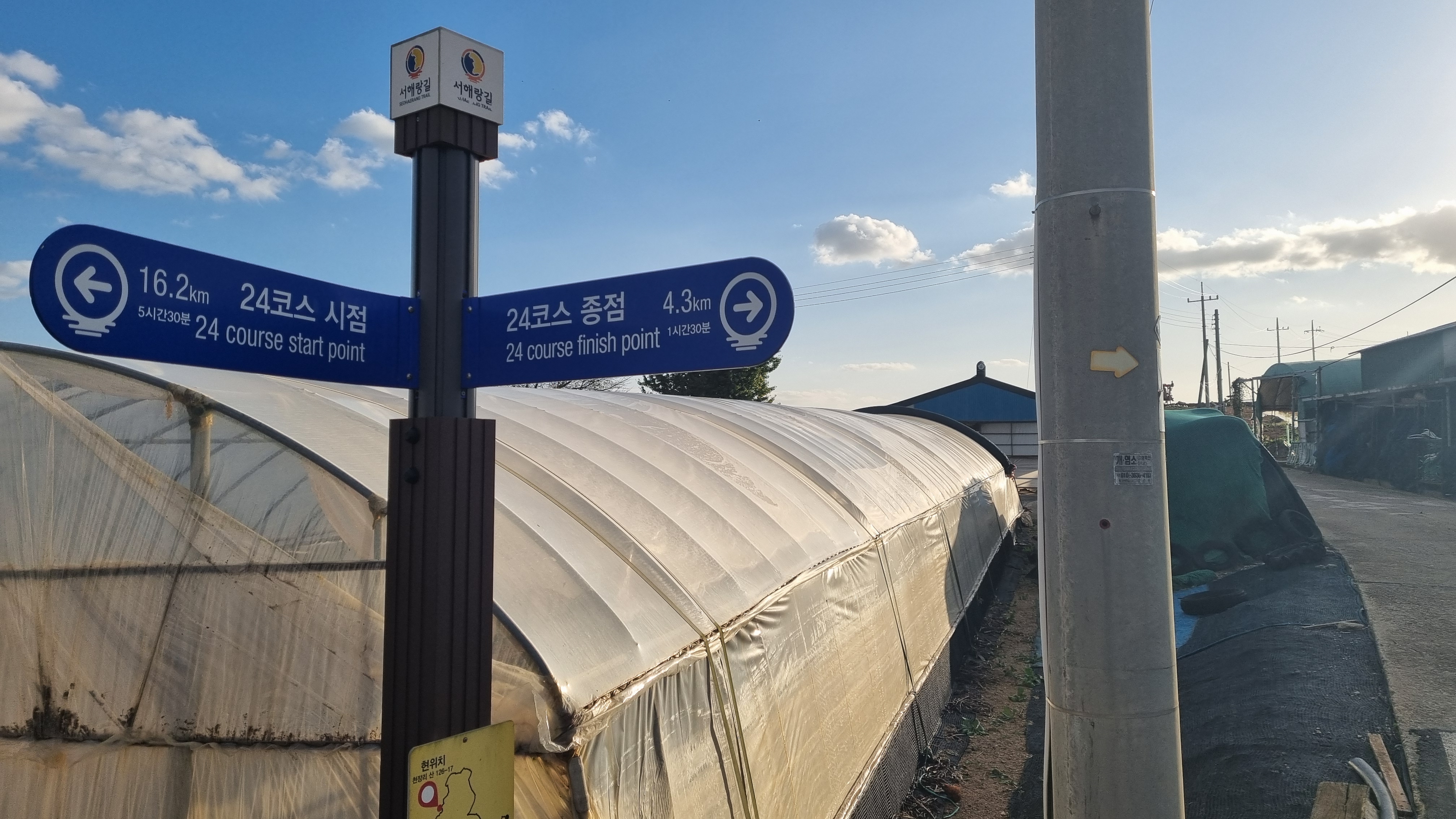 매당노인회관 마당 한편에 24코스 종점 표지판.