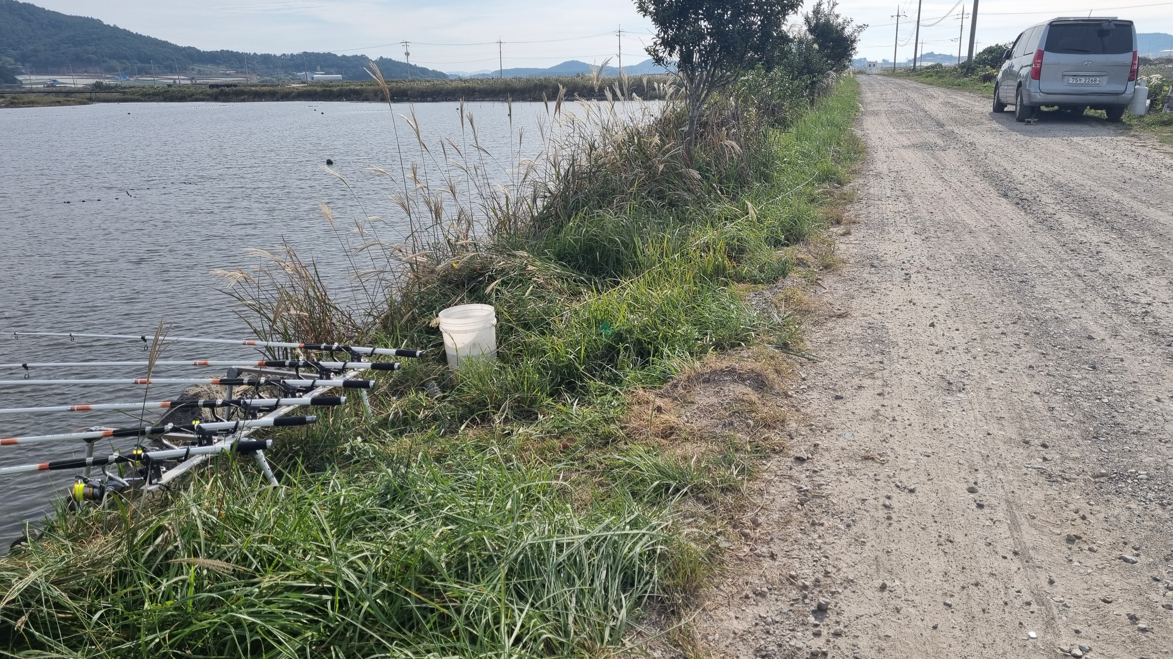 낚시꾼은 봉고차에서 쉬고 있나 봅니다?