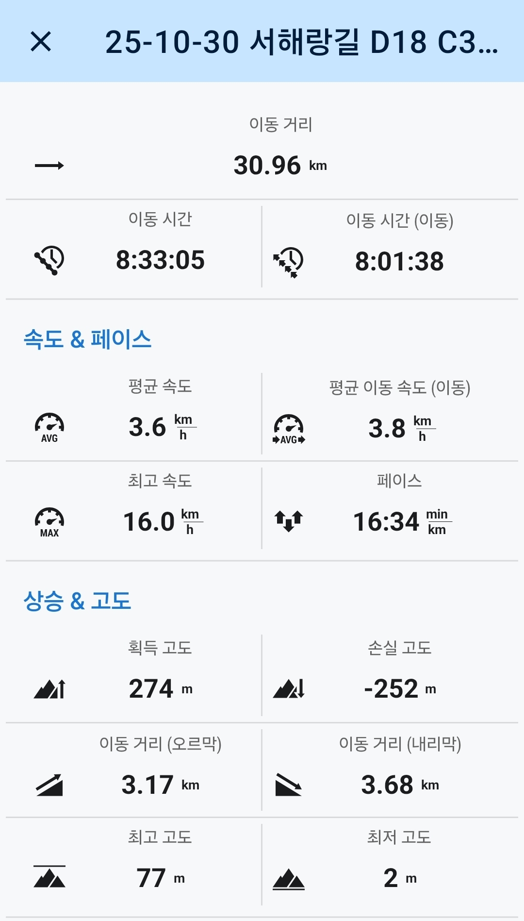 ㅇ31코스 거리-고도표.