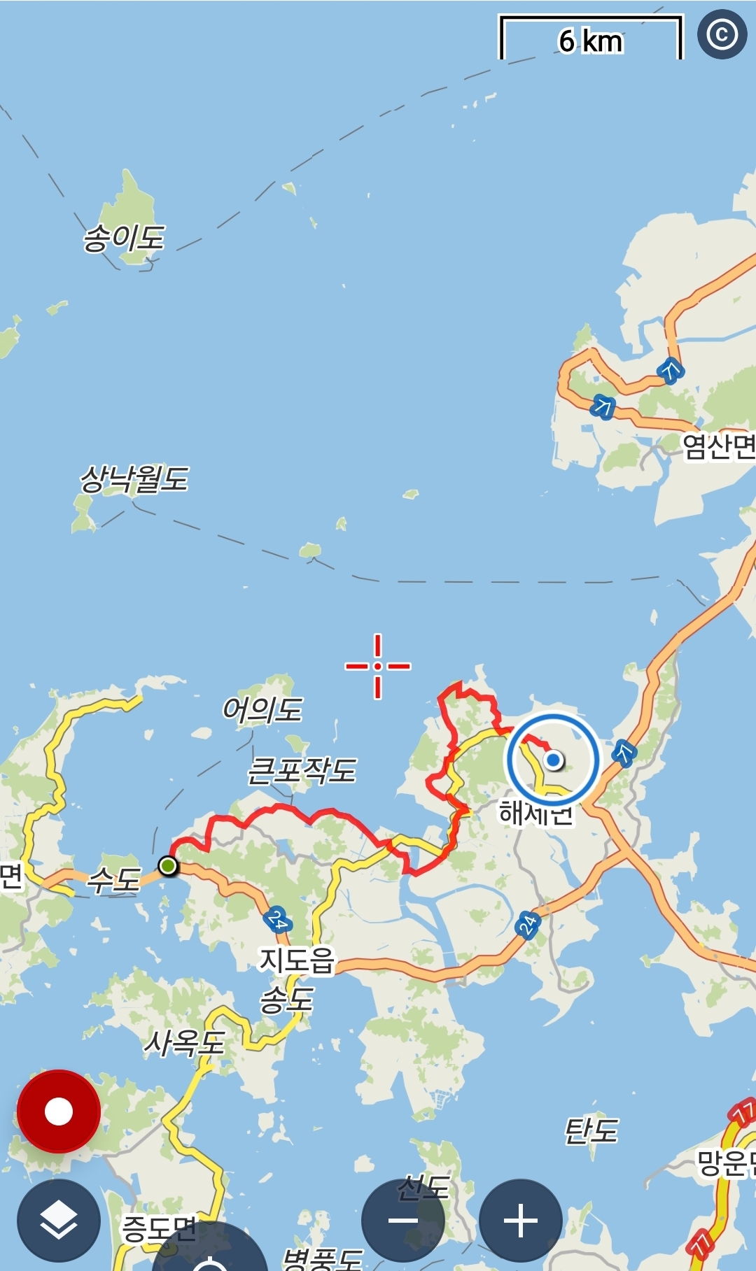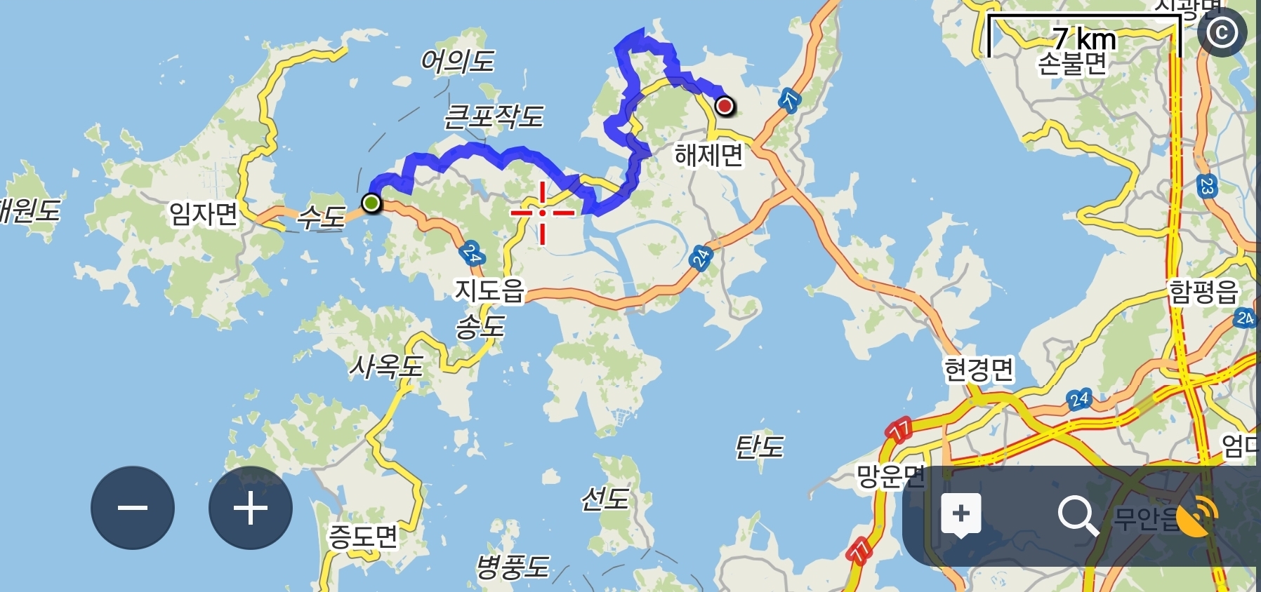 ㅇ로커스 맵상으로 본 신안과 무안 경계 지점.