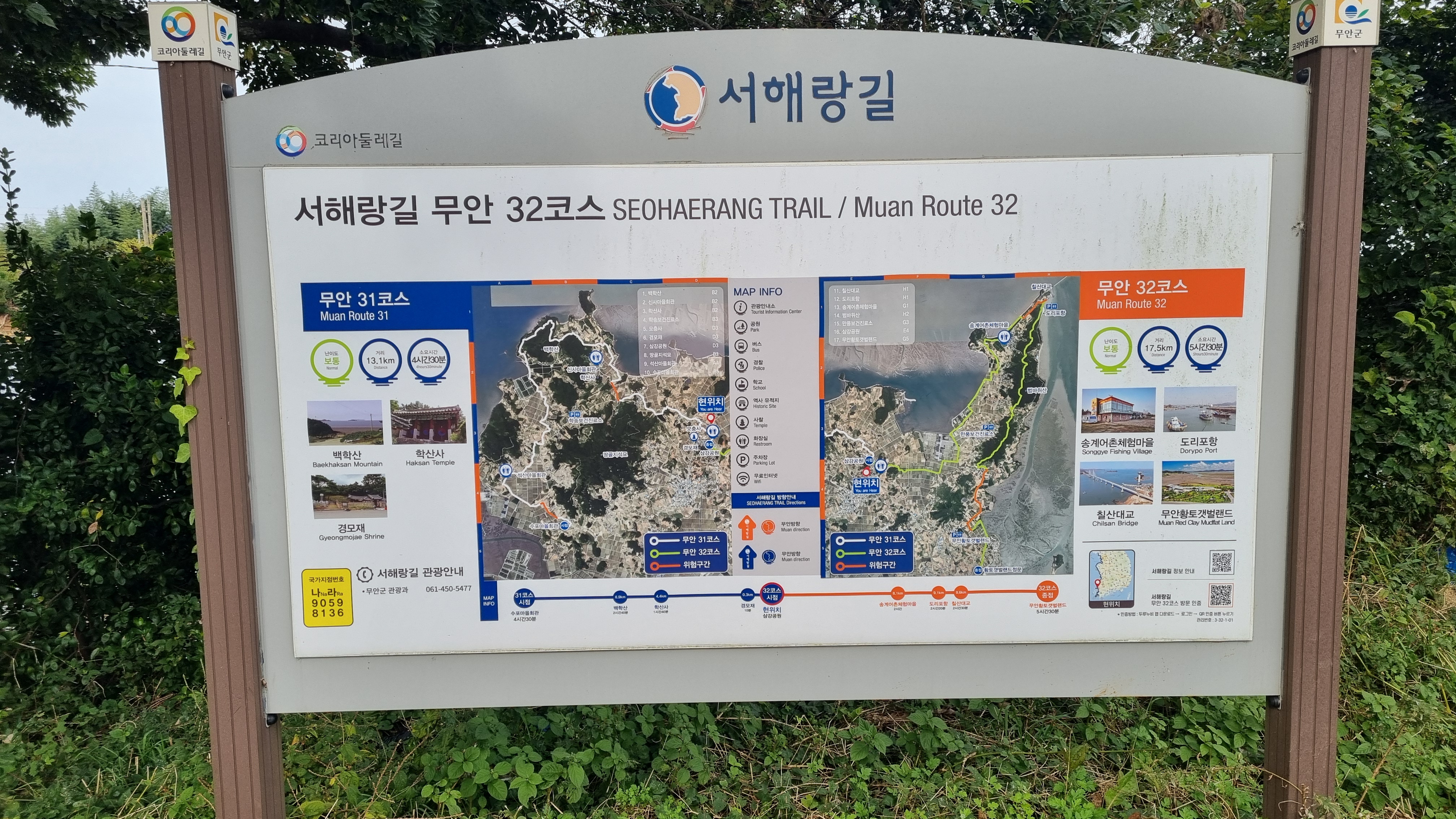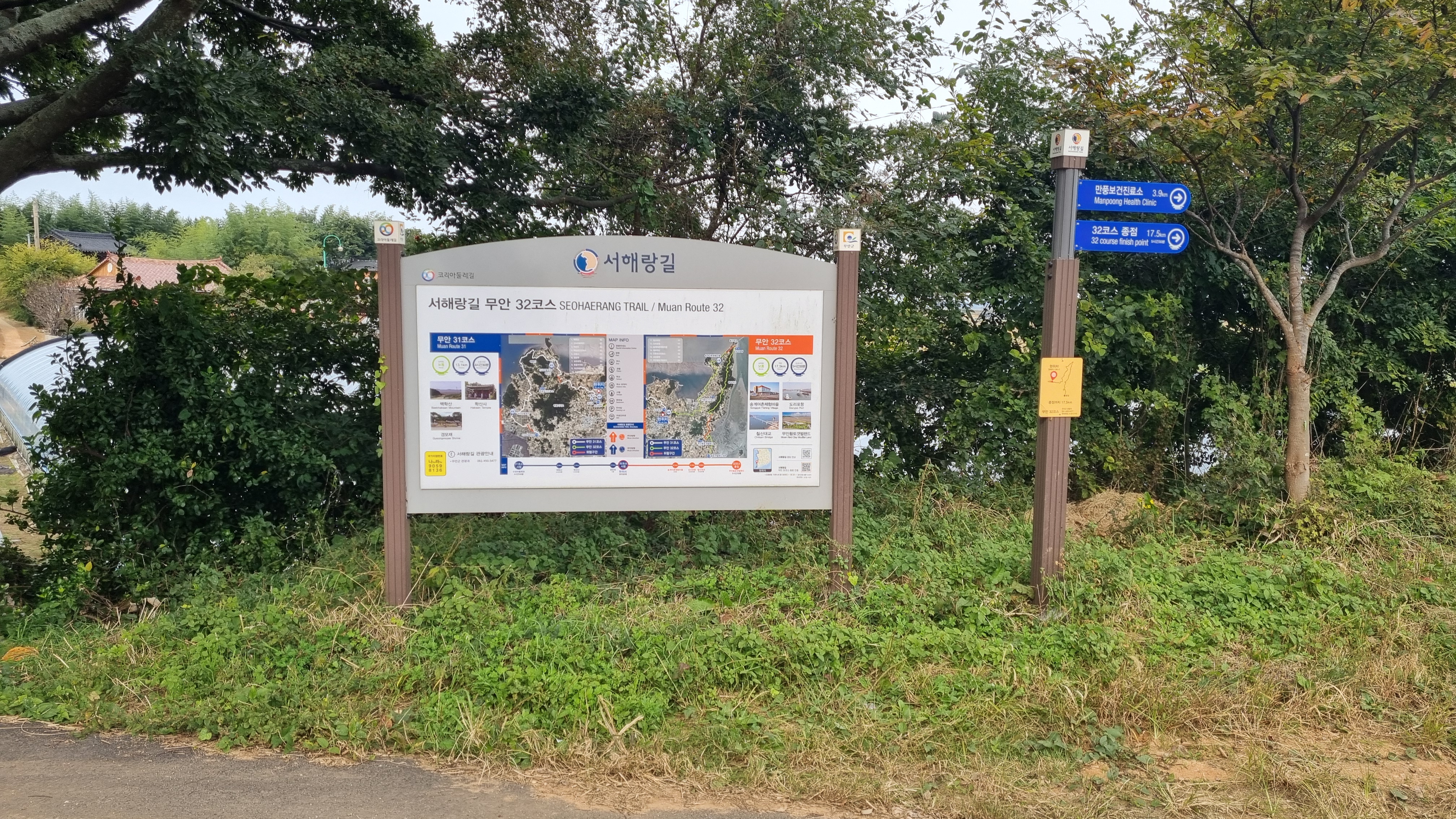 삼강공원 맞은편에 31코스 마감, 32코스 안내판입니다.