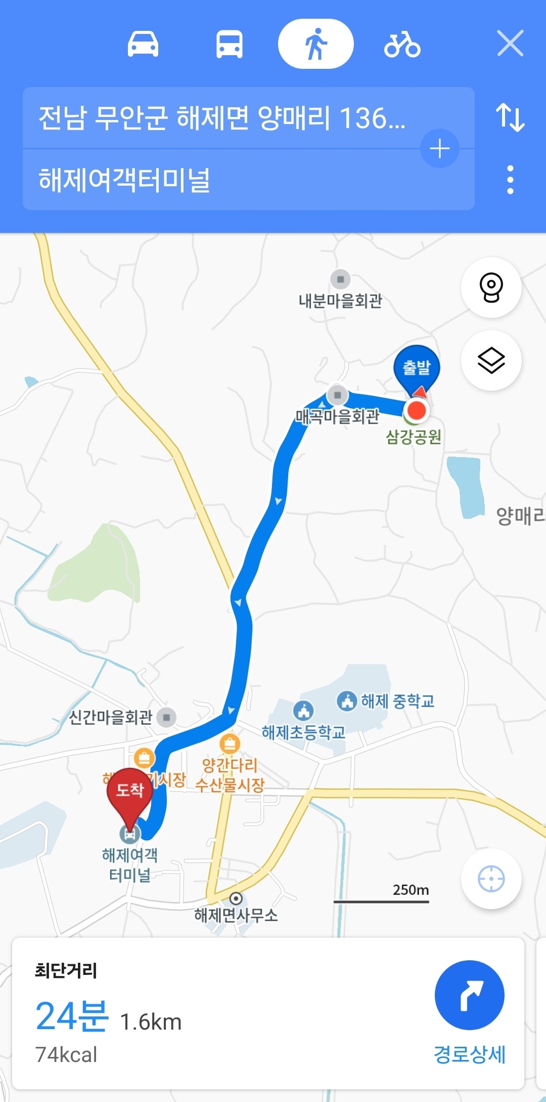 버스 타고 예약해 둔 숙소 가기 위해 카카오 맵으로 해제터미널로 가야 합니다.