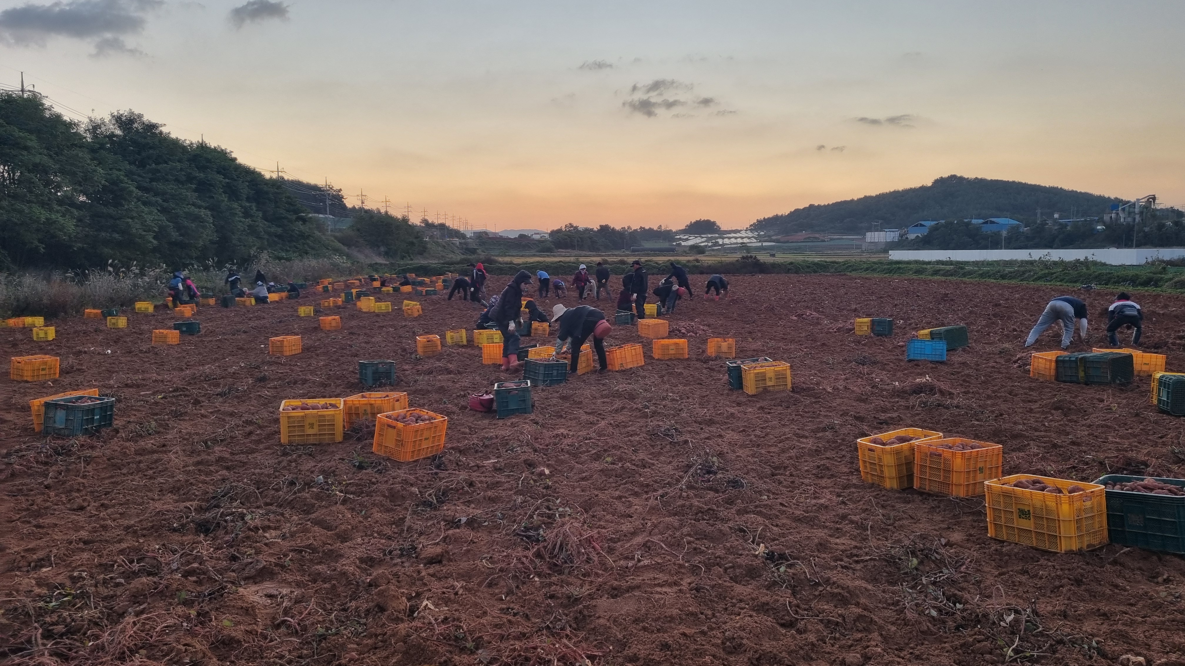 ㅇ전문 인력 투입하여 고구마 수확하는 팀이 작업 중 일때.. 고구마 맛보기로 두 개얻음.