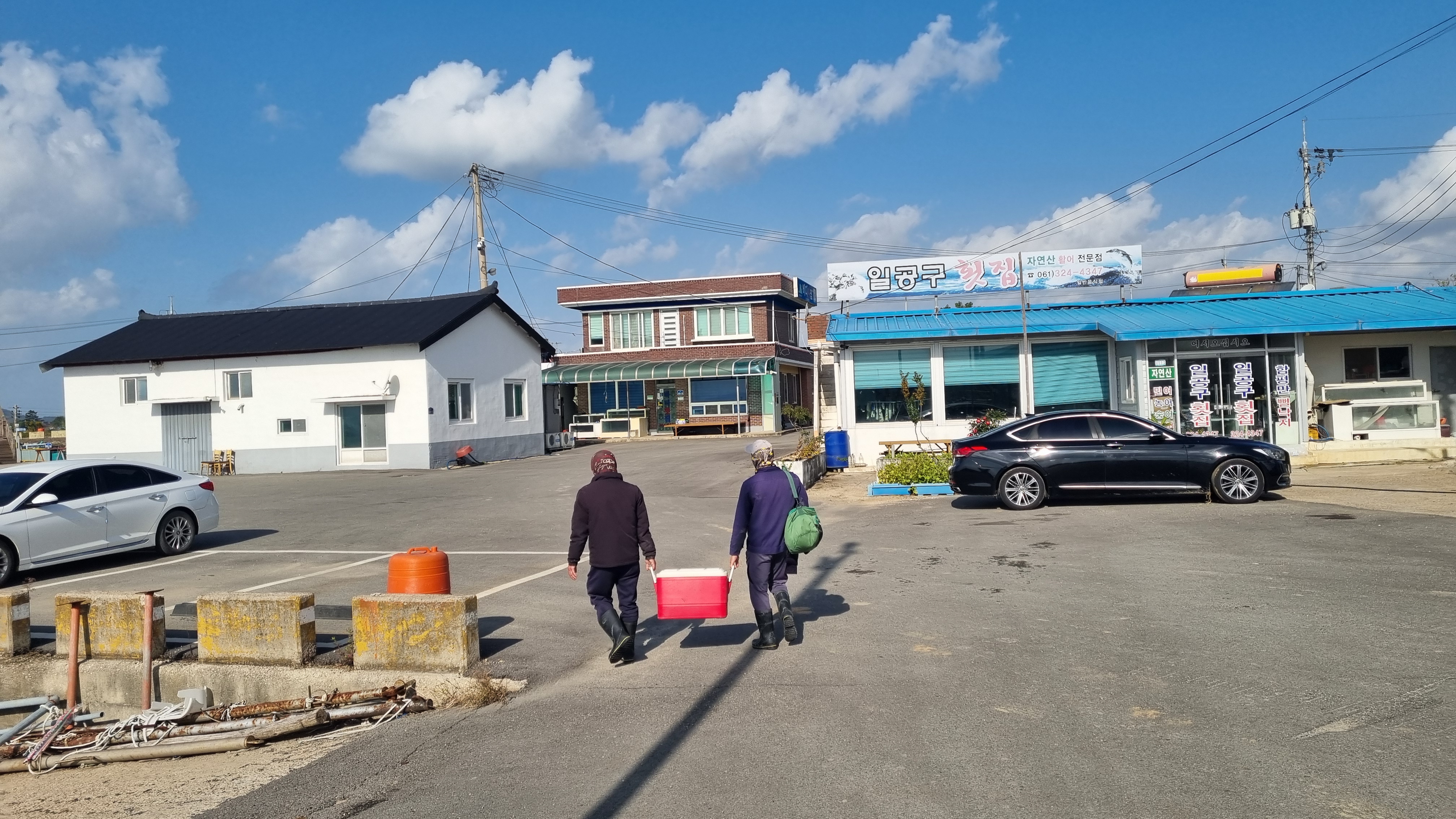 뒤로 돌아가서 마을로 진입하려는데.. 동네 아주머니들이 서해랑 걷죠? 하더니..