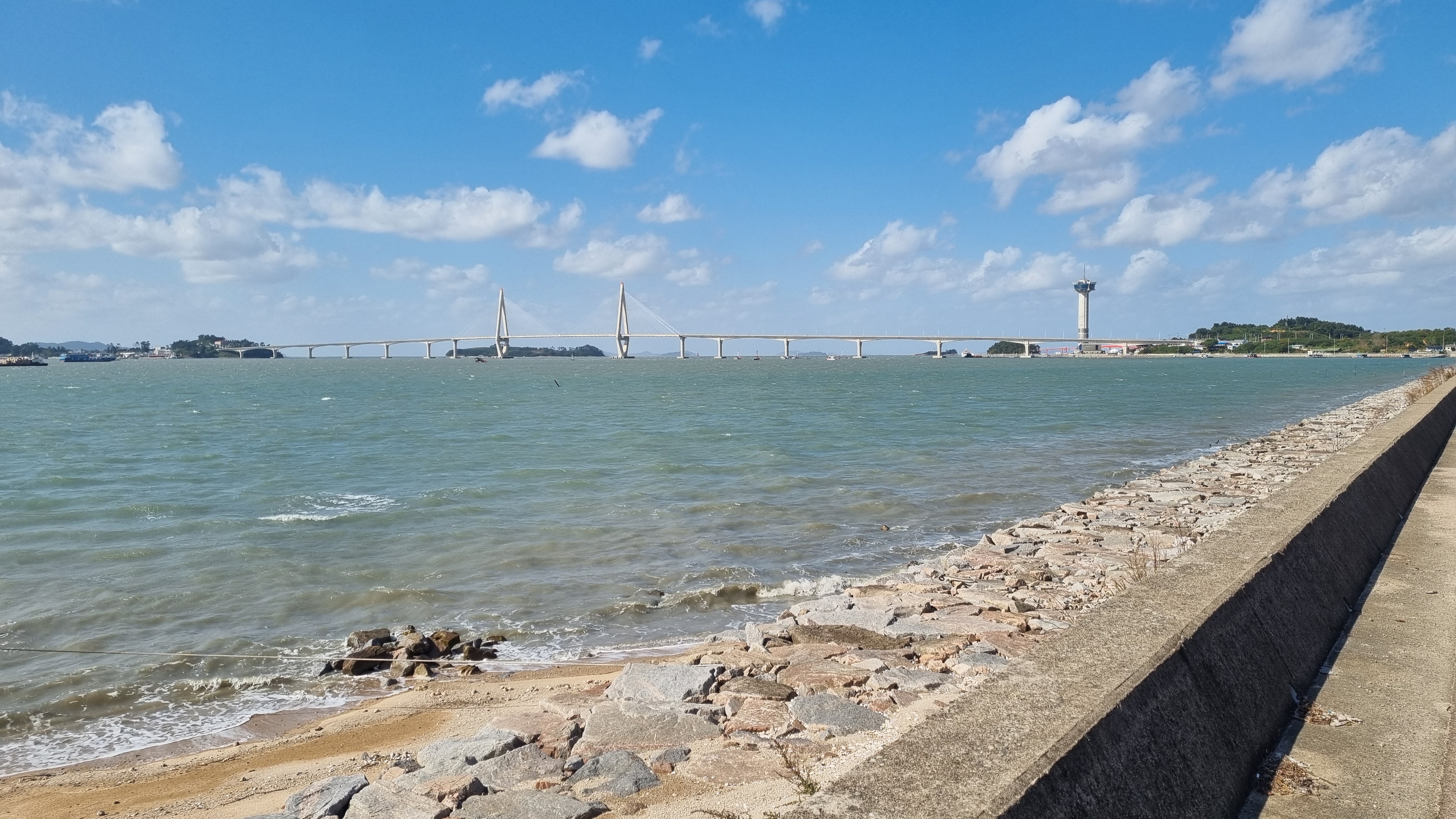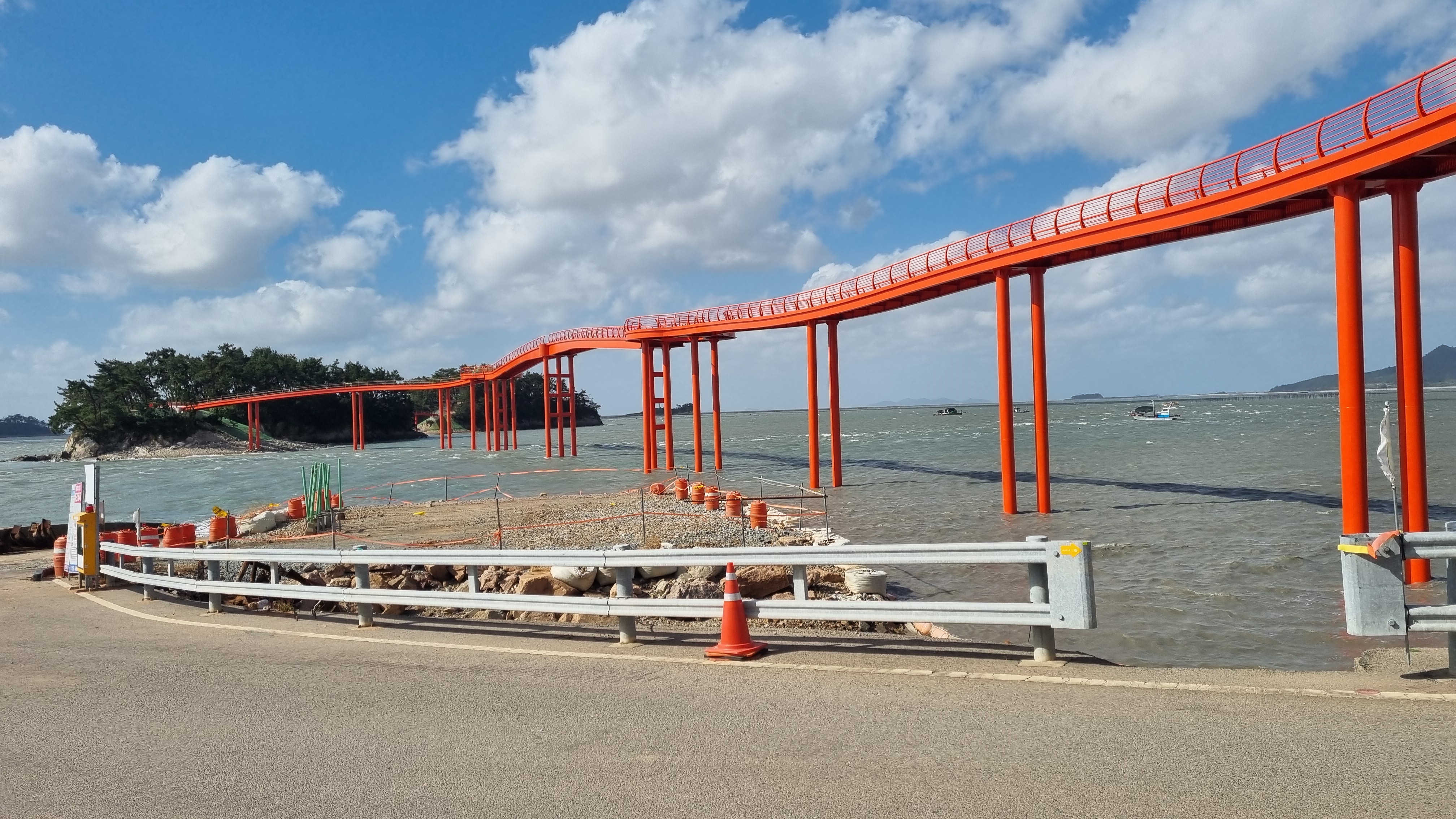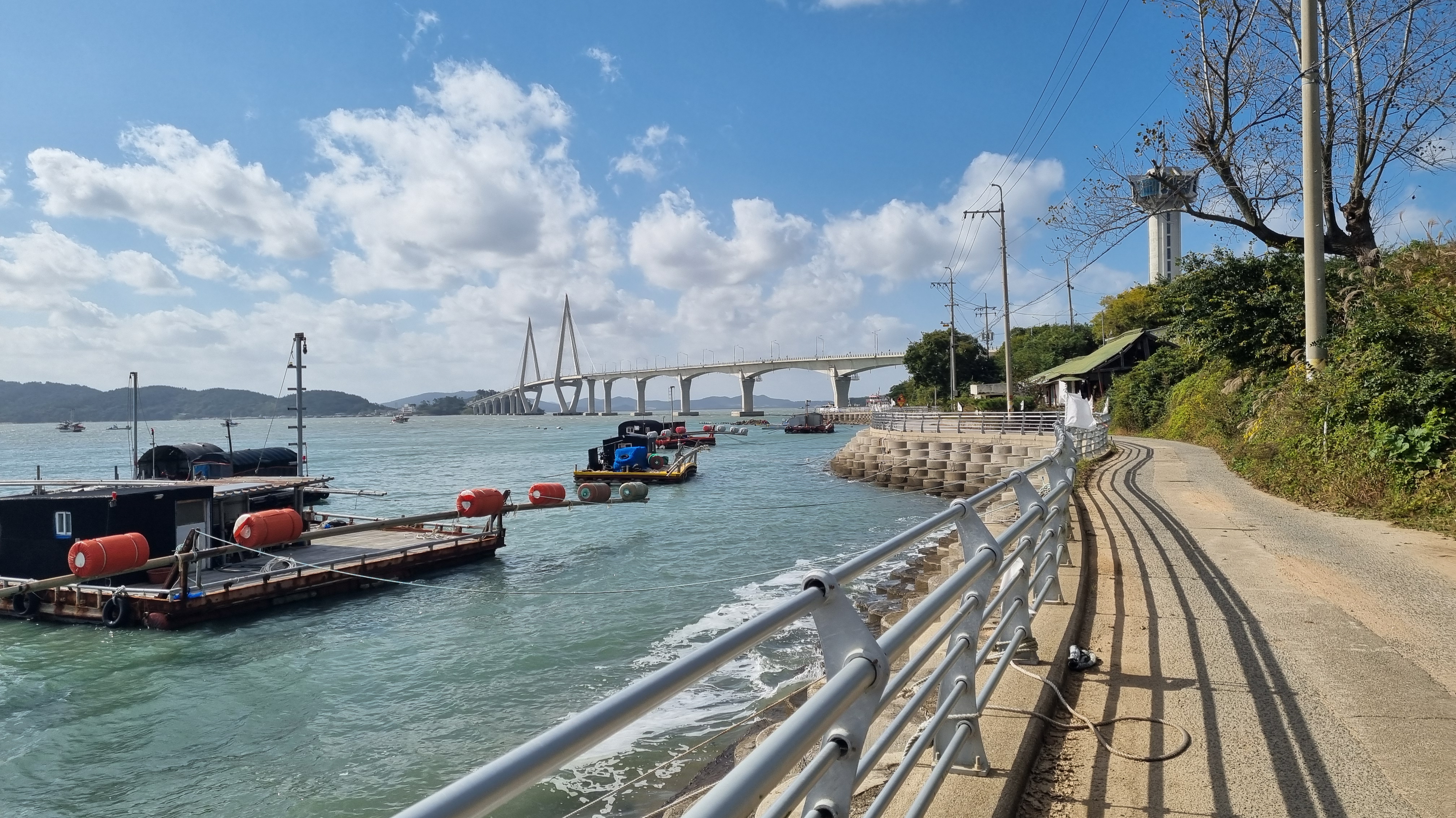 ㅇ칠산대교는 무안군 해제면 도리포항과 이곳 영광군 영산면 향화도 항을 연결하는 길이 1.82Km의 왕복 2차선으로 지난 5019년 말 개통된 다리임.