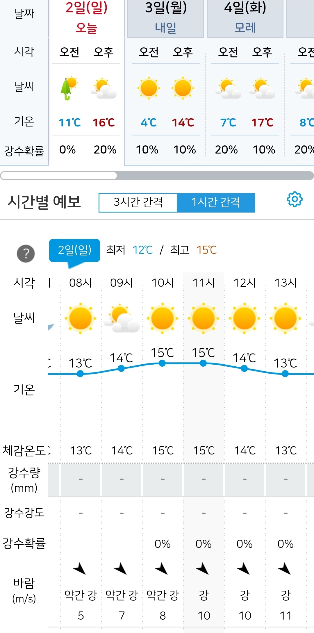 2. 날 씨 : 낮기준 15도 내외. 쨍한 날씨.