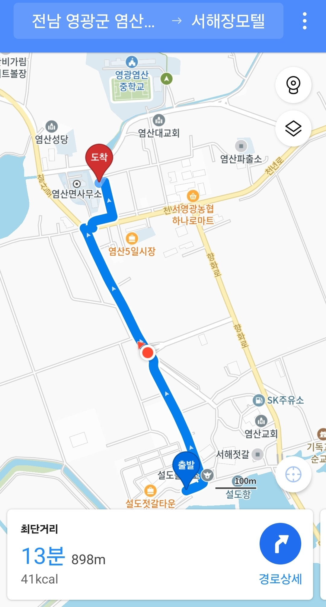 ㅇ설도항에서 서해장모텔까지는 890미터 거리에 13분 소요되었고..