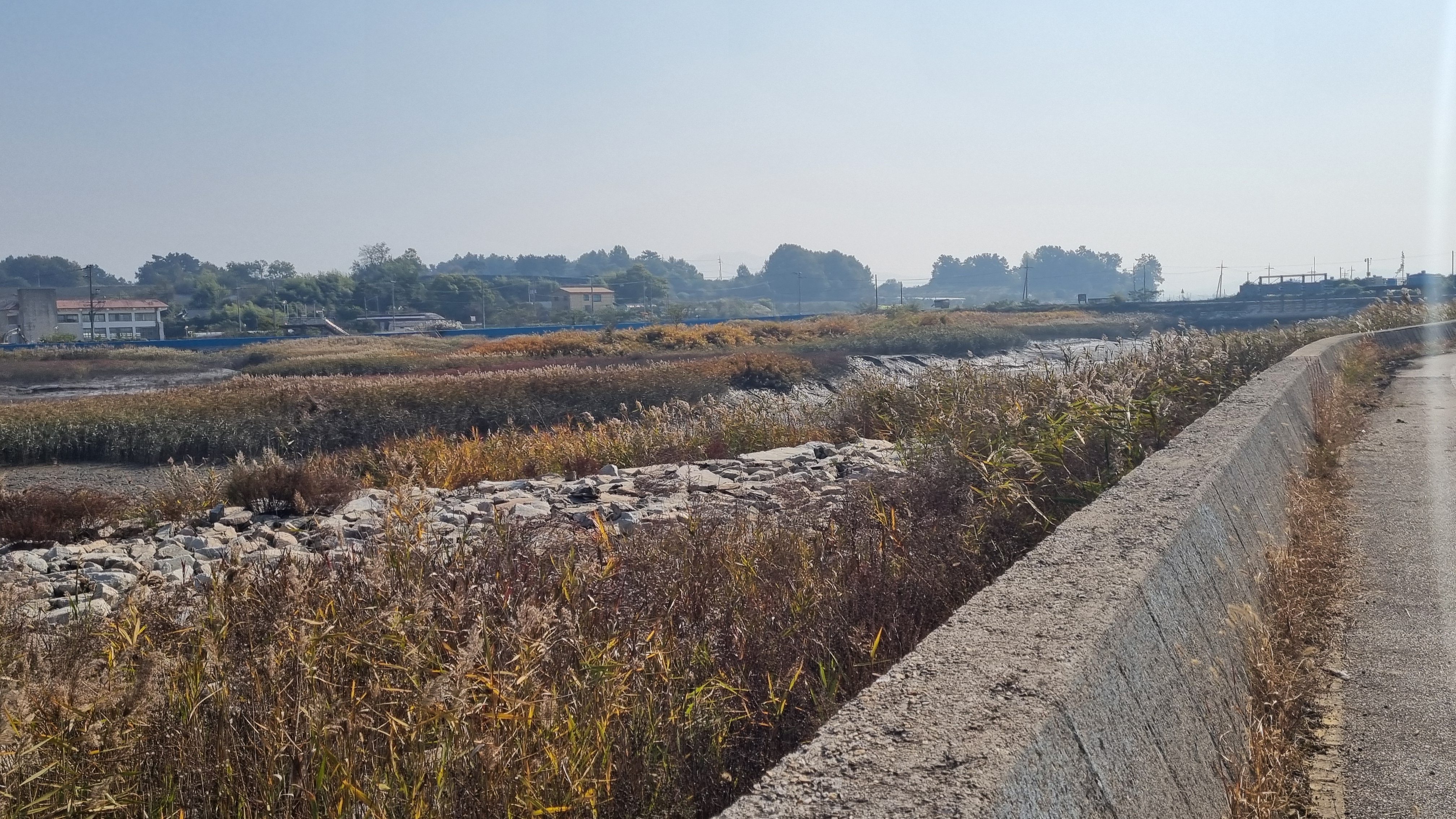 ㅇ그 외 43코스는 코스 자체도 21.1킬로로 길지만.. 연기재(고개)까지를 제외 하고는 해수면에 가까운 평지이며 오히려 끊임없는 제방둑이 힘들게 했음.