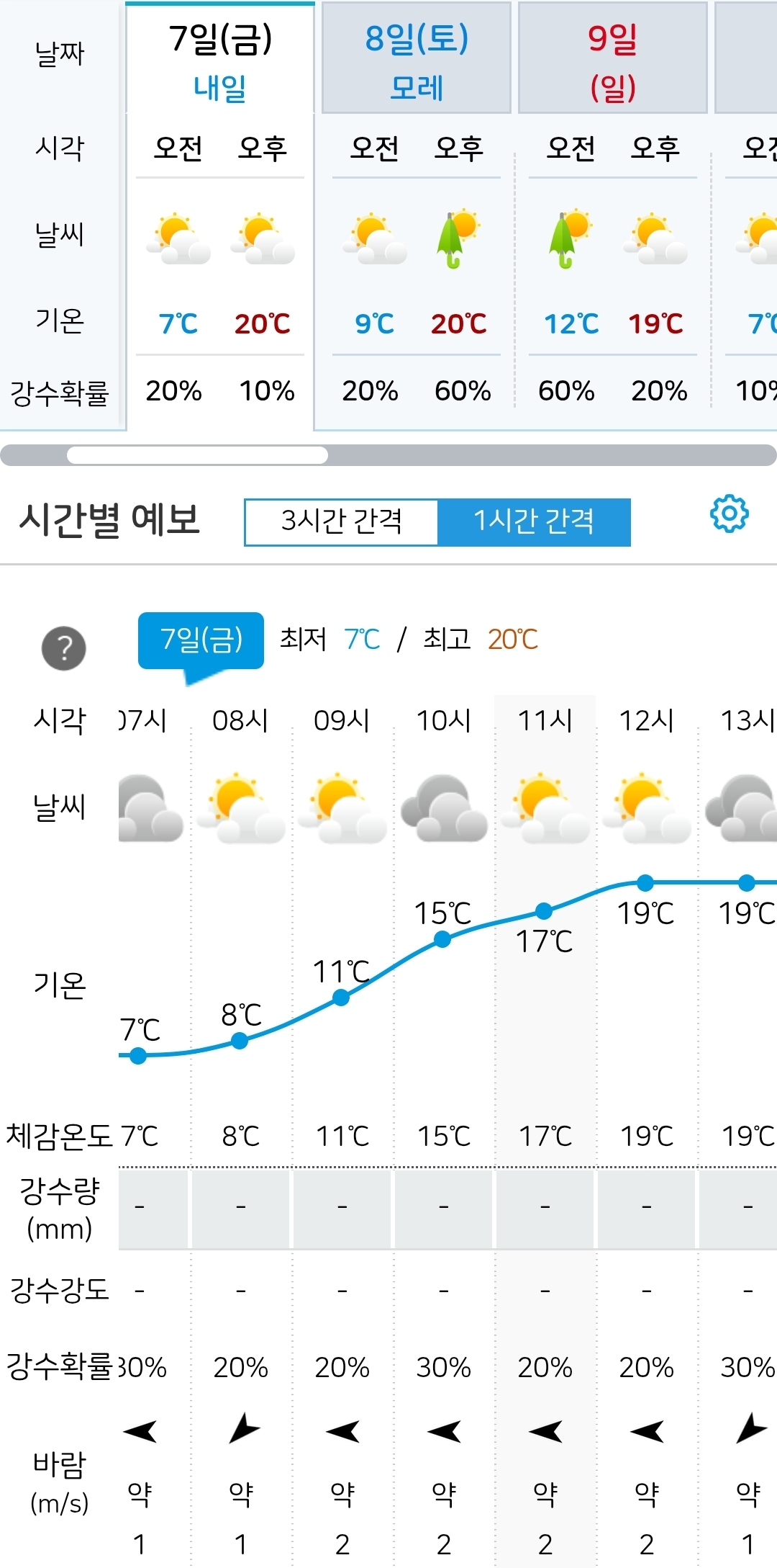 2. 날 씨 : 구름 있고.. 낮기준 19도 2-3m/sec.