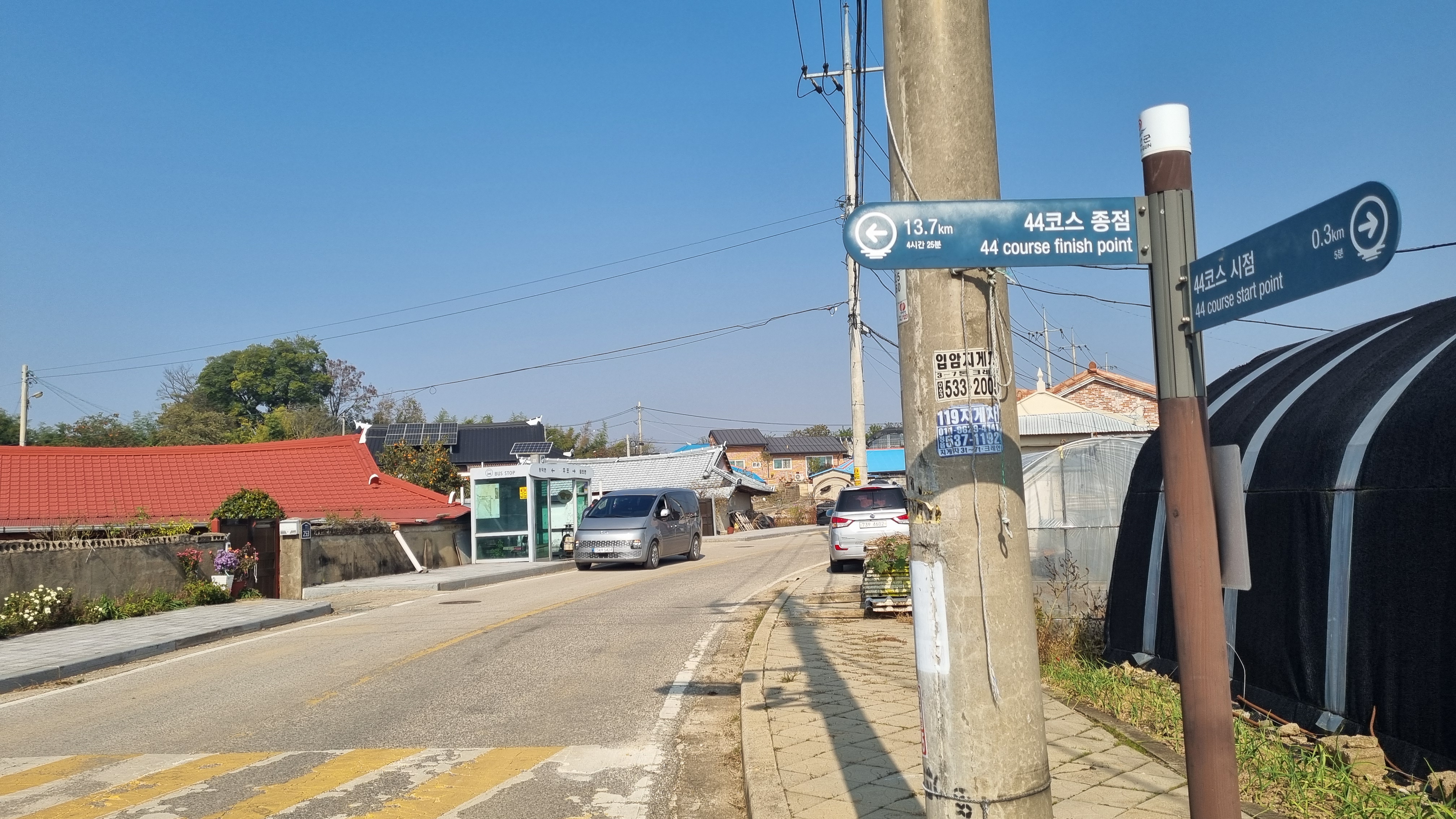 우측에 길고 긴 43코스 마감 안내판이 있습니다.