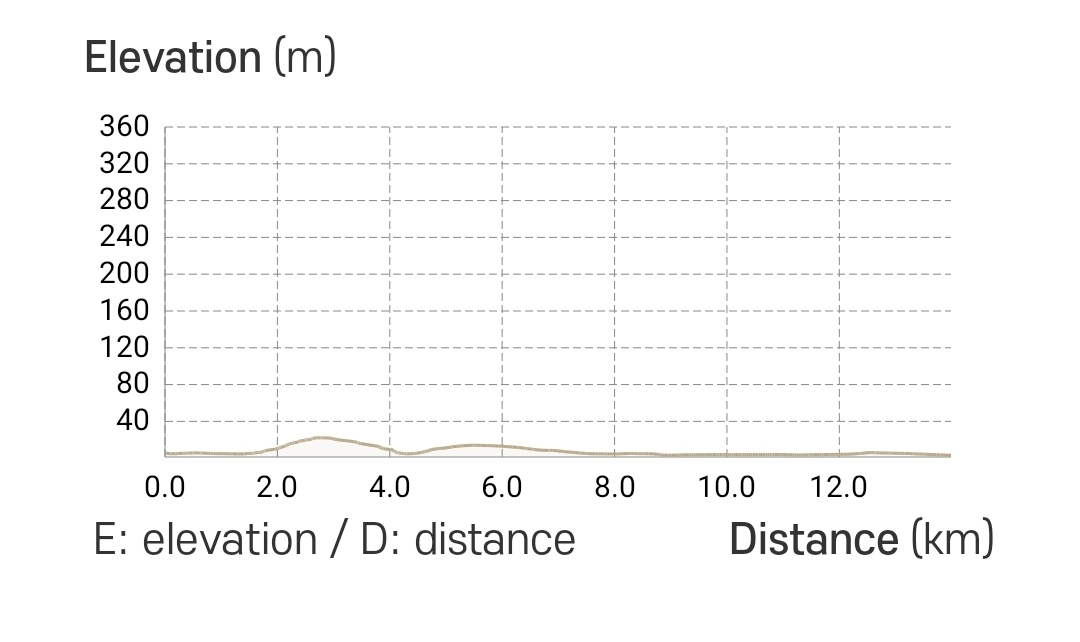 ㅇ두루누비 앱의 고도표상 초반 3-6킬로 사이에 해발 160m까지 오르는 경사가 은근히