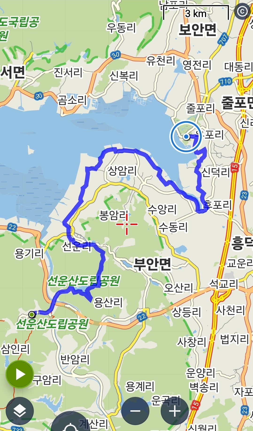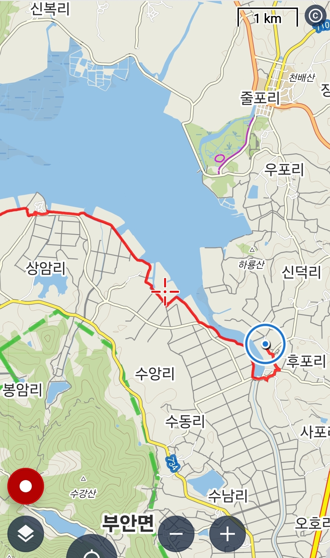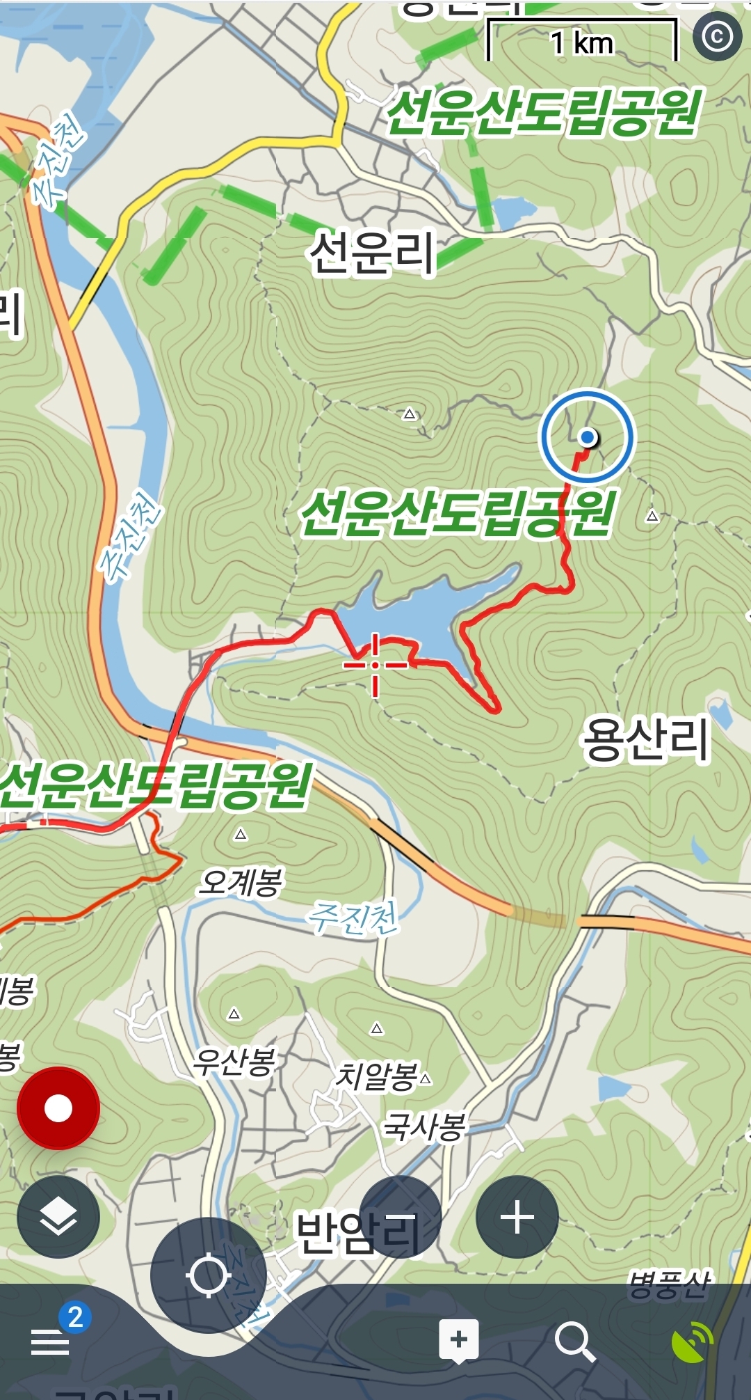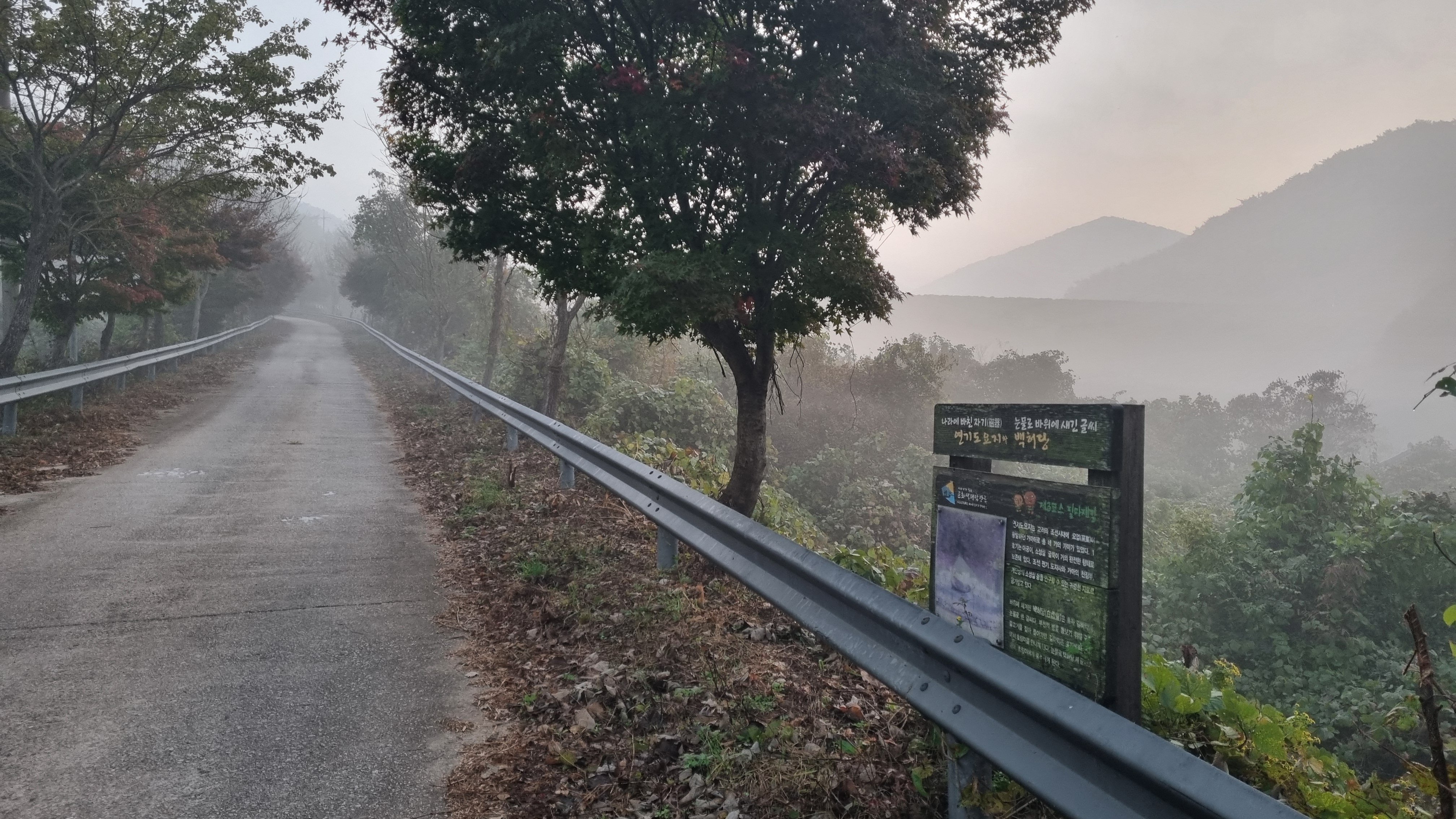 신경 쓰였으나.. 막상 현장에 가보니 삼림인도였음. 수킬로에 걸쳐 오르니 걷는 도중에는 의식할 정도 아니었음. 임도라 오히려 한적하고 상쾌하였음.