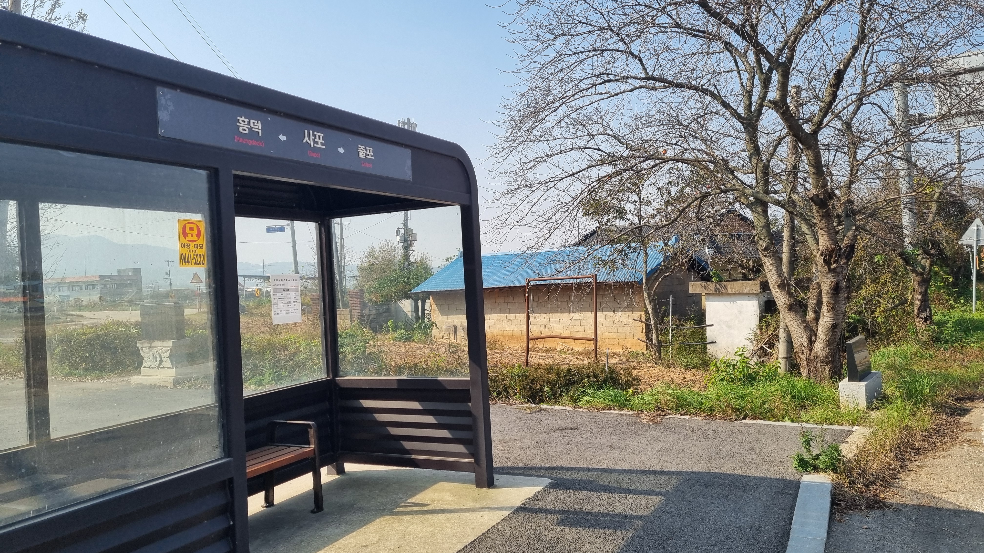 시골 마을에 버스정거장은 대부분 마을회관 앞이죠.