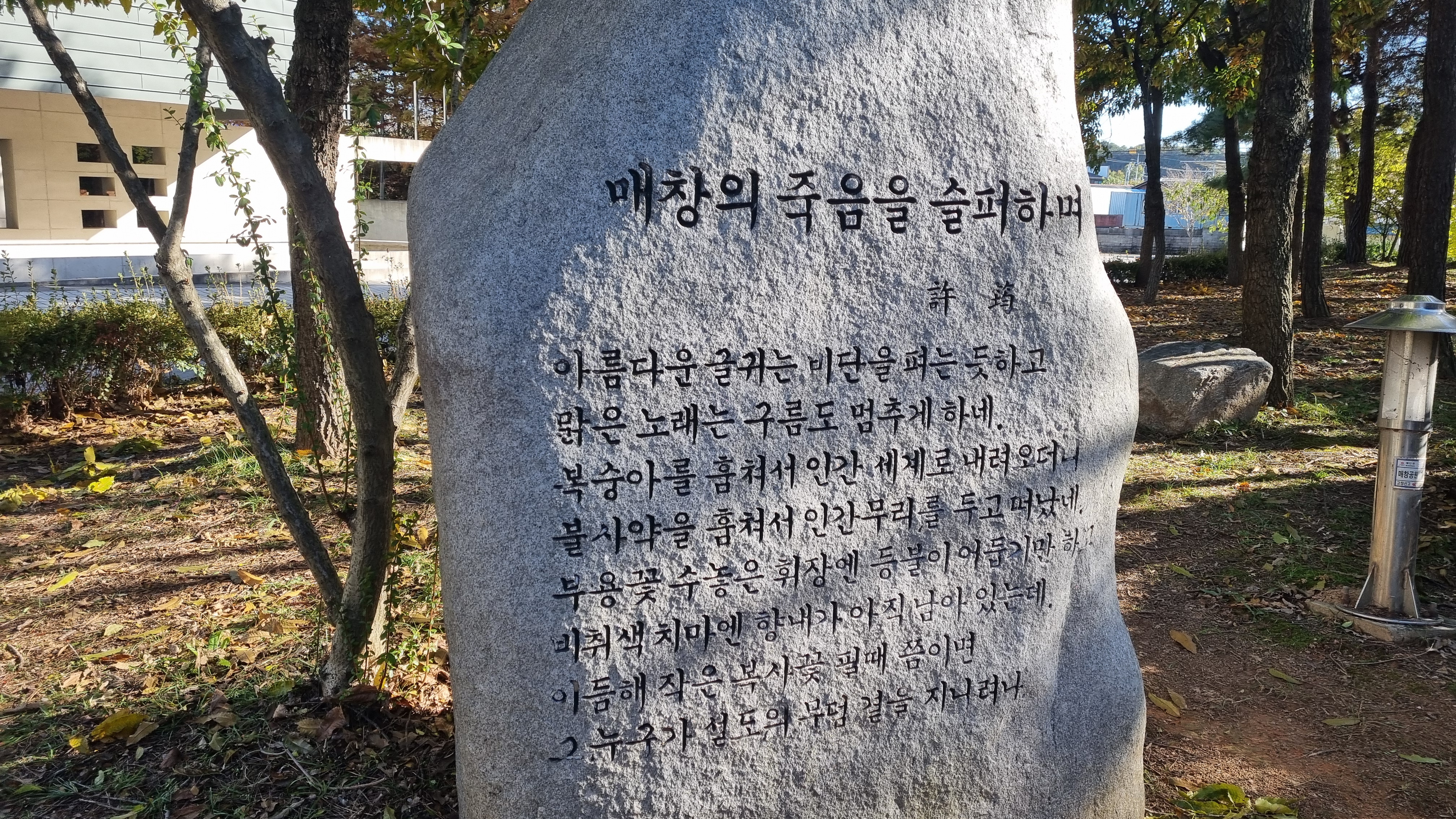 - 황진이와 함께 언급되는 기생 문학의 대표 인물인 이 매창(梅窓)을 기리는 공원.