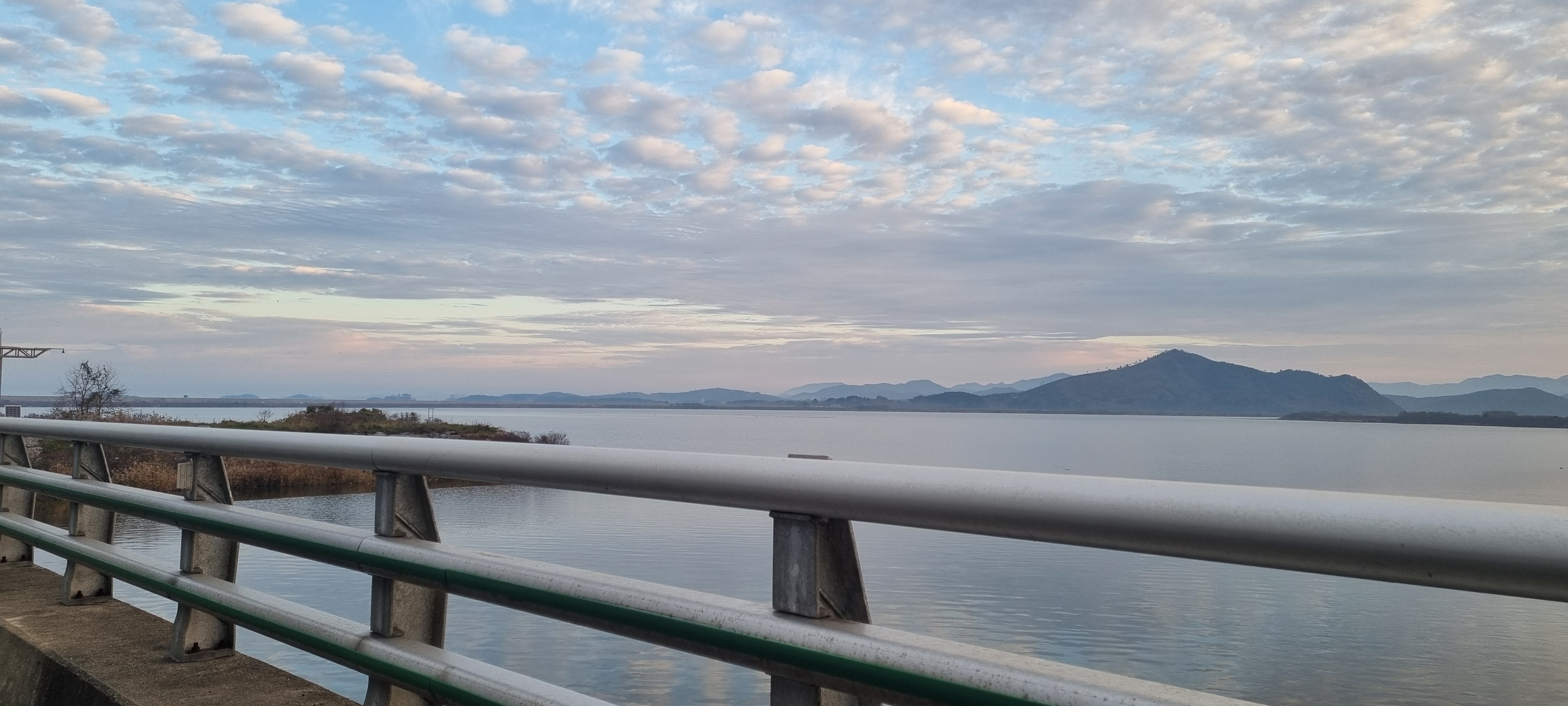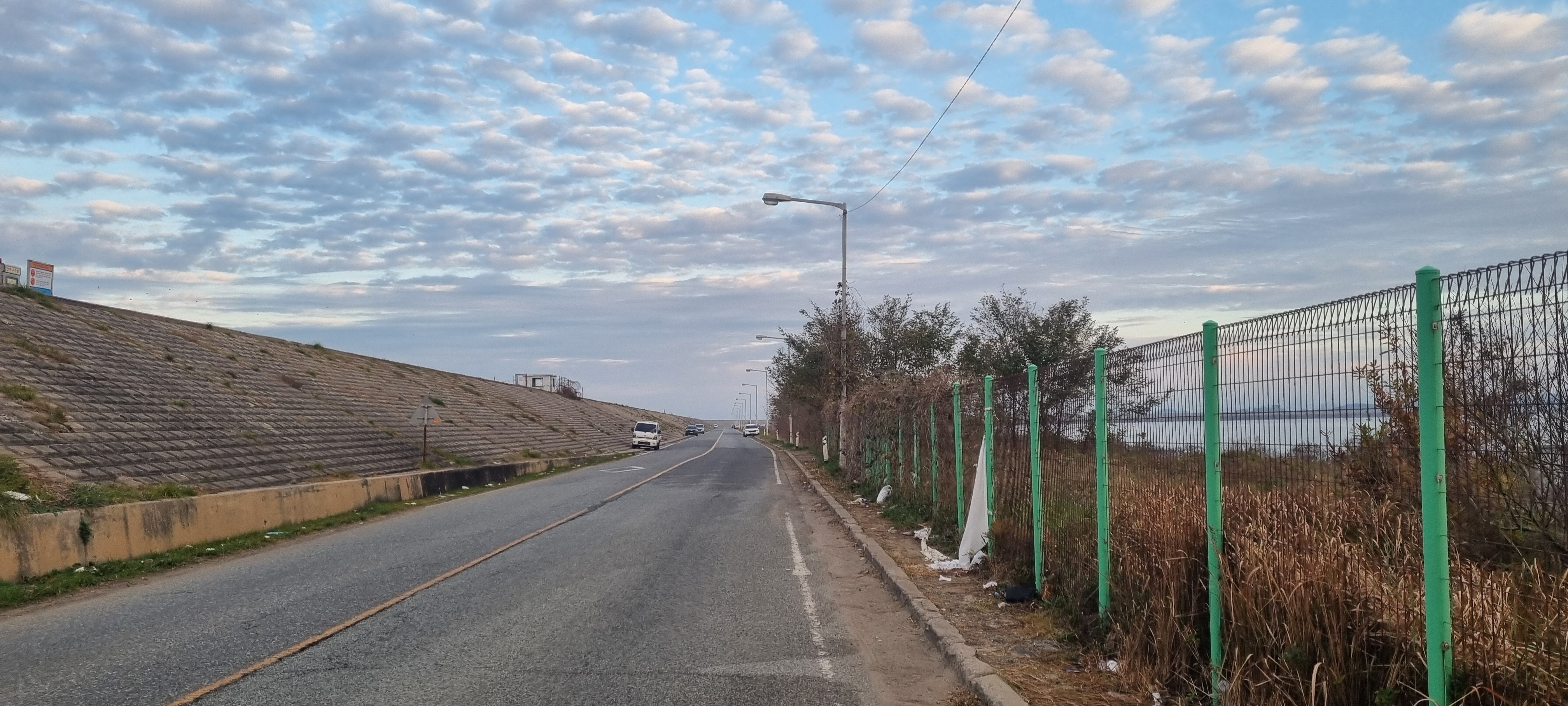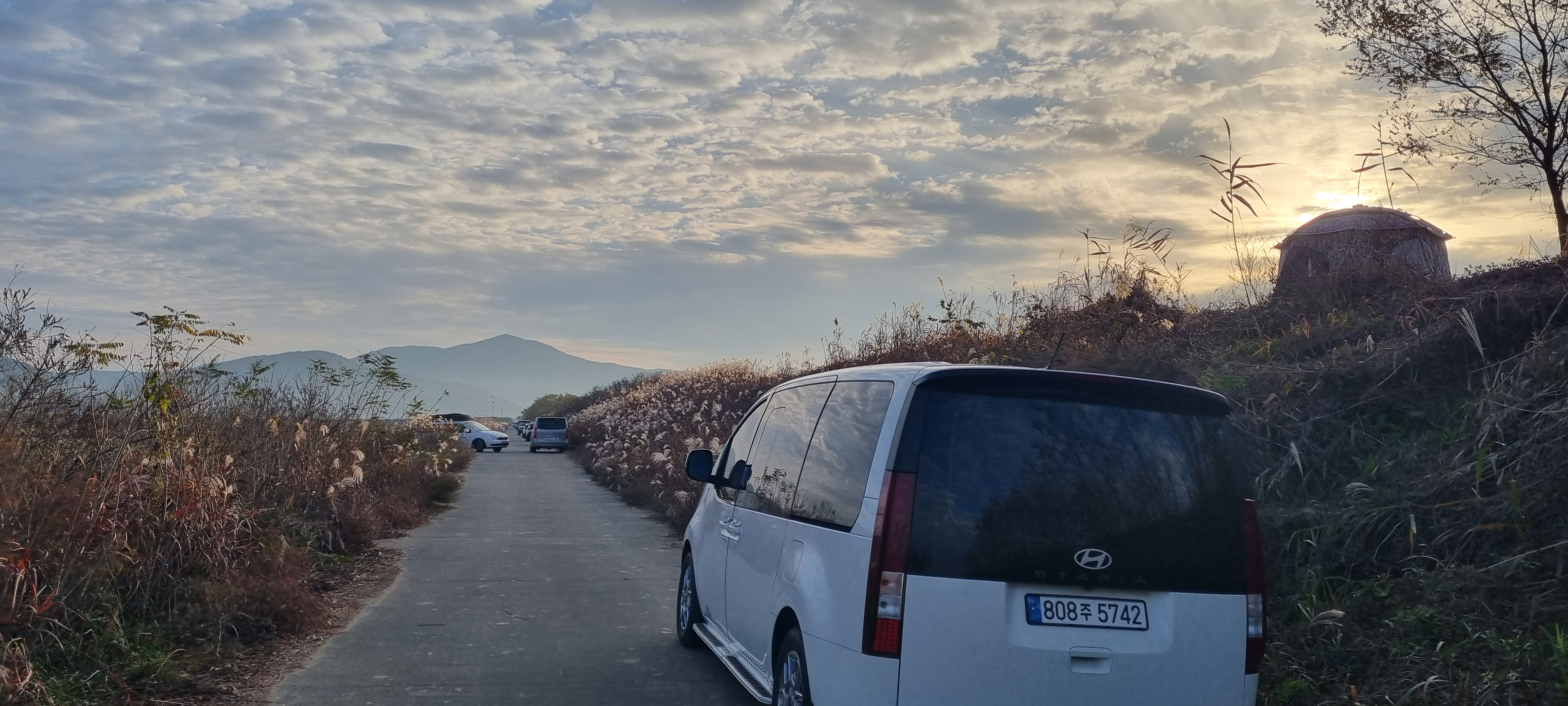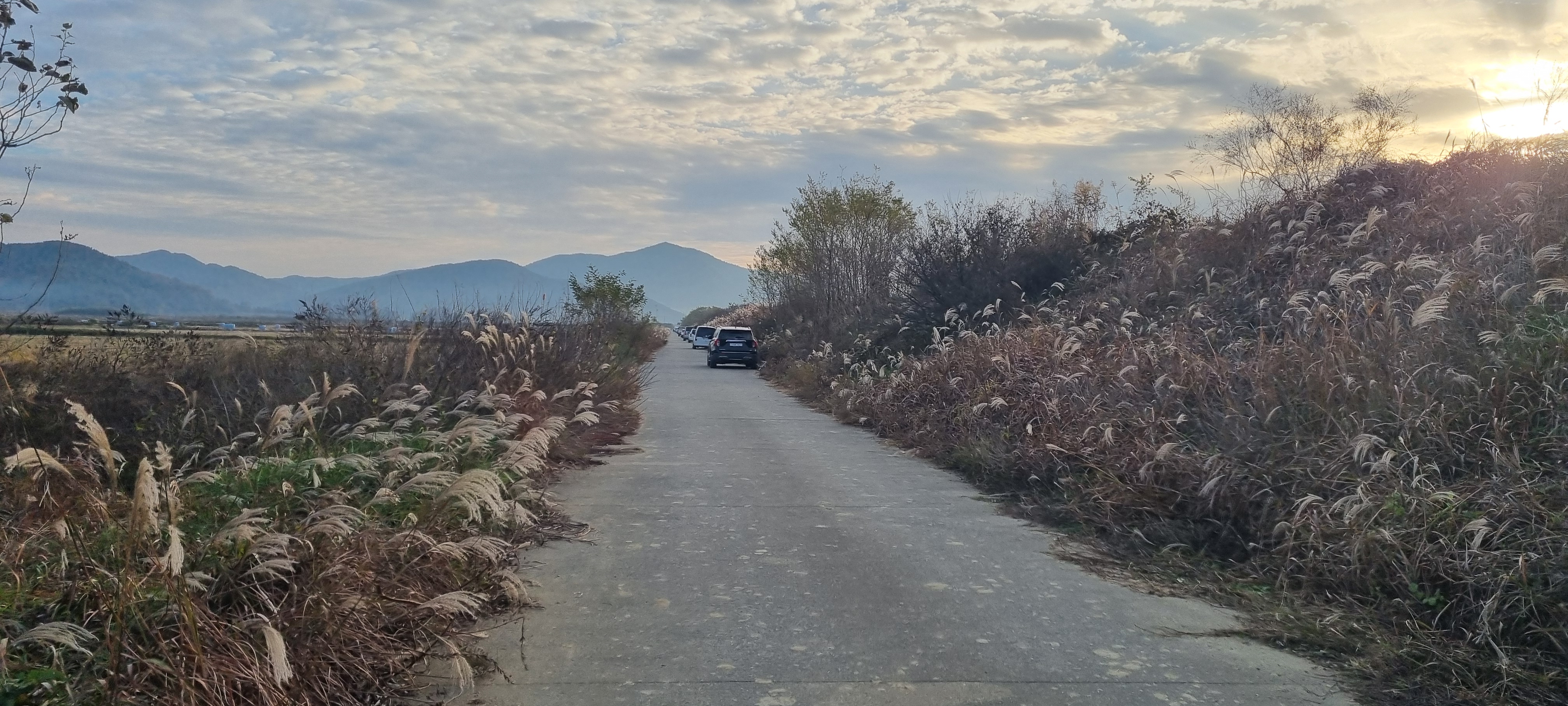 아래로 내려가.. 히치로 지루한 방조제를 건넘.