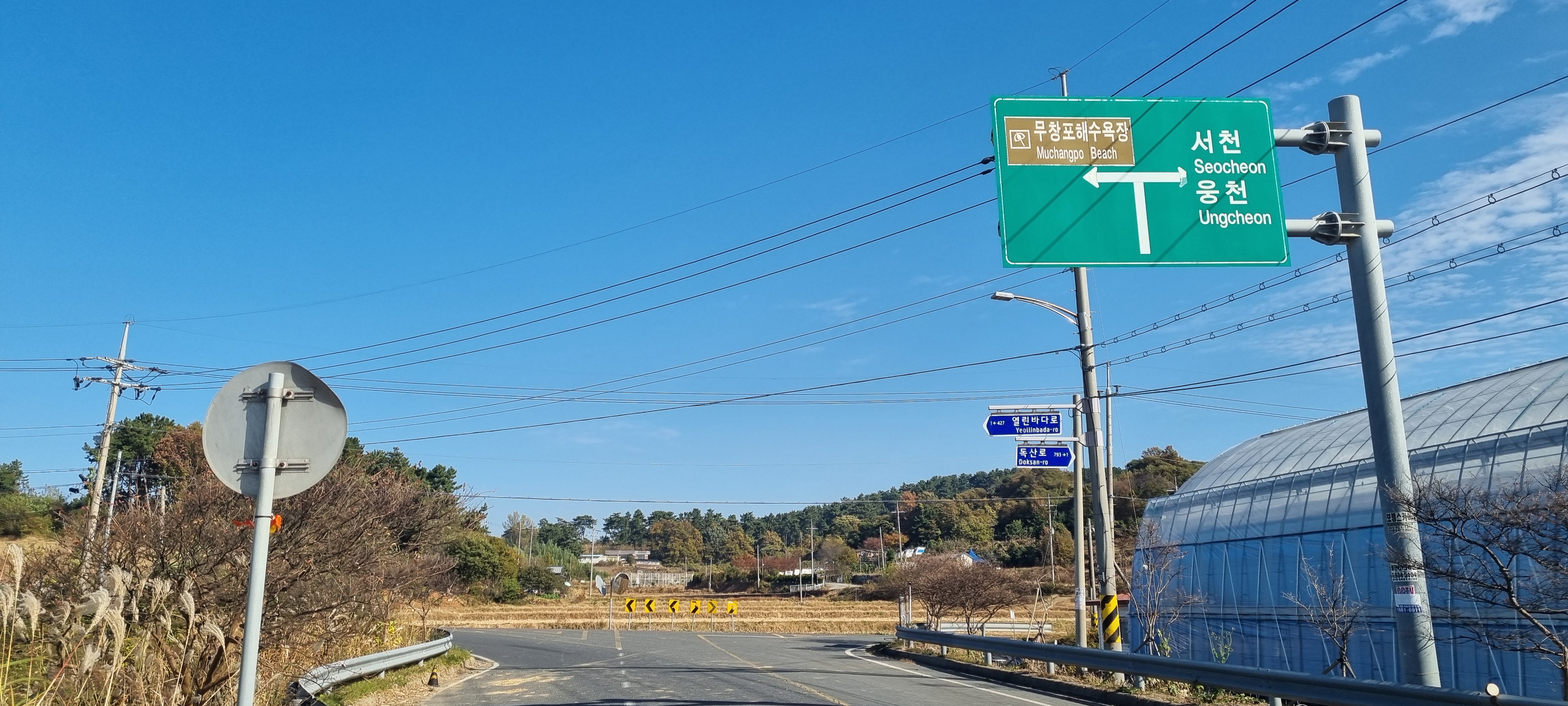 방조제 중앙부를 지나면서 보령시 웅천읍 독산리로 바뀌게 됩니다.