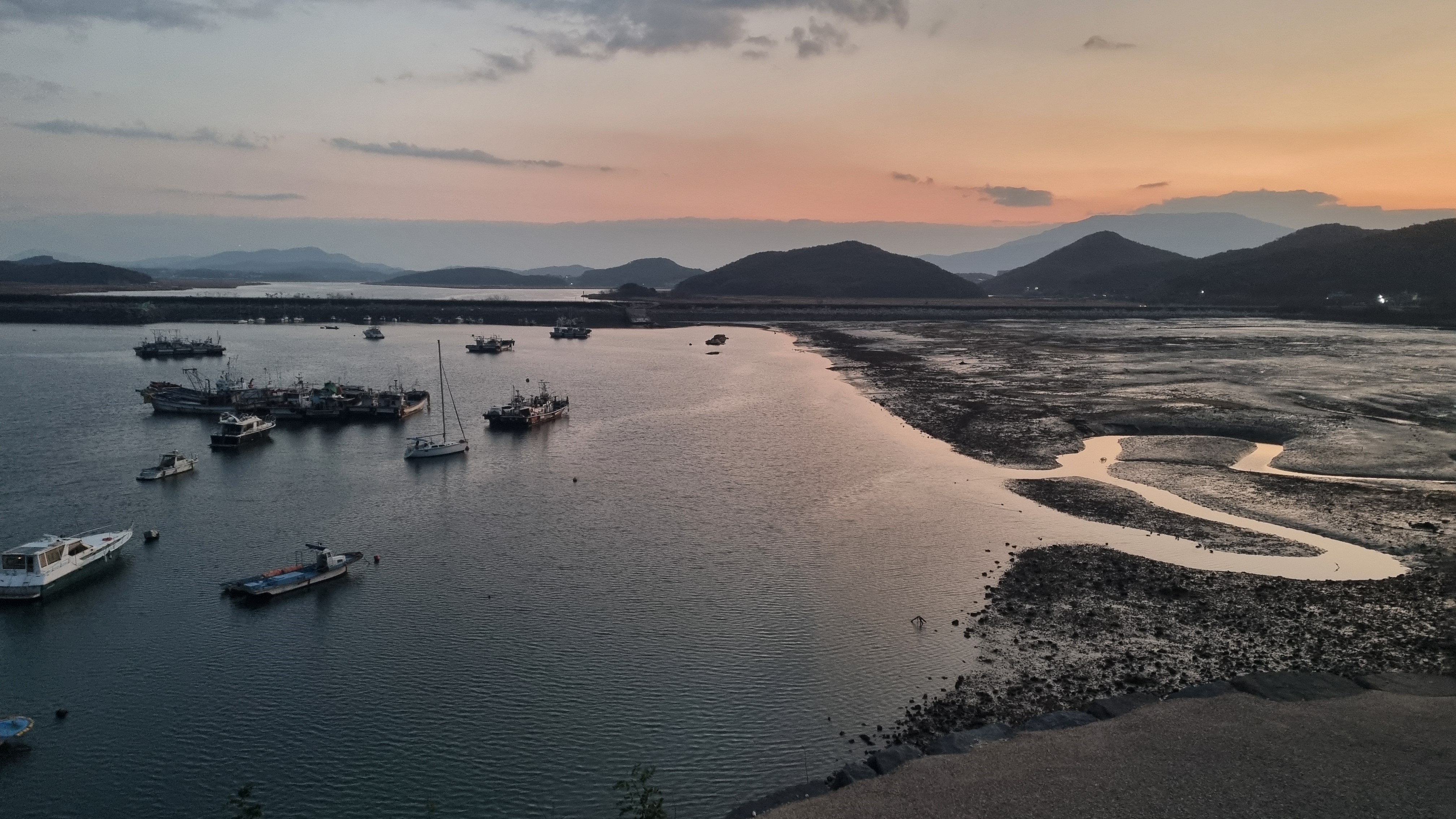 ㅇ궁리 항 도착 직전.. 약 1킬로 앞에 있는 홍성스카이타워에 올라감.
