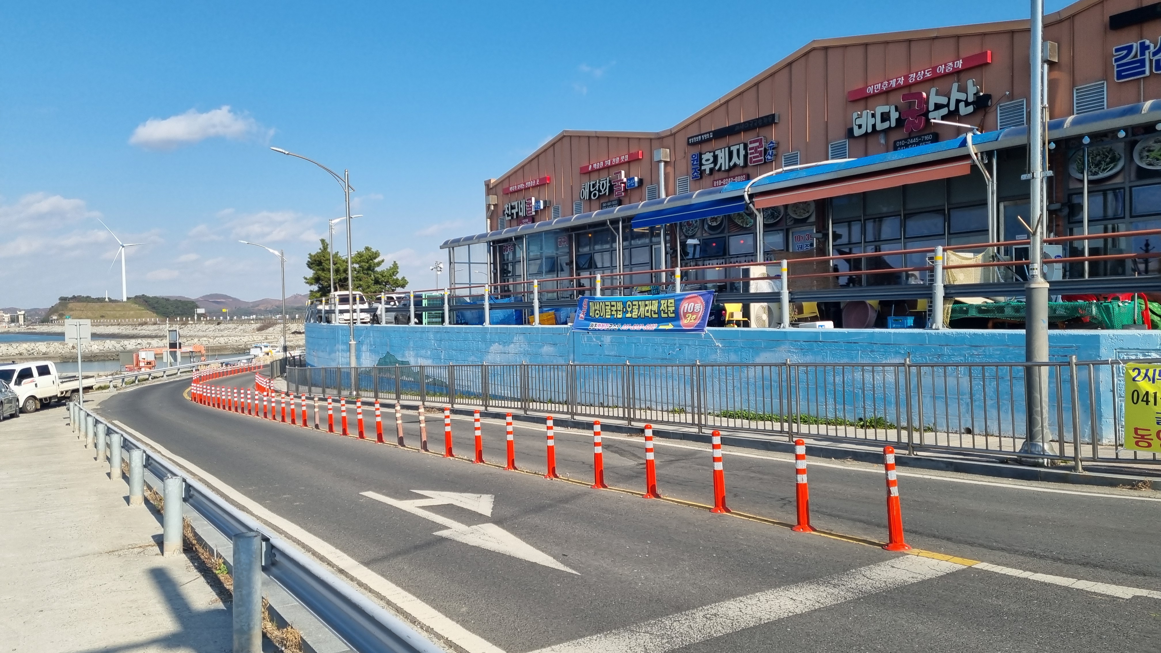 궁리항까지 약 1킬로 조금 넘는 거리를..