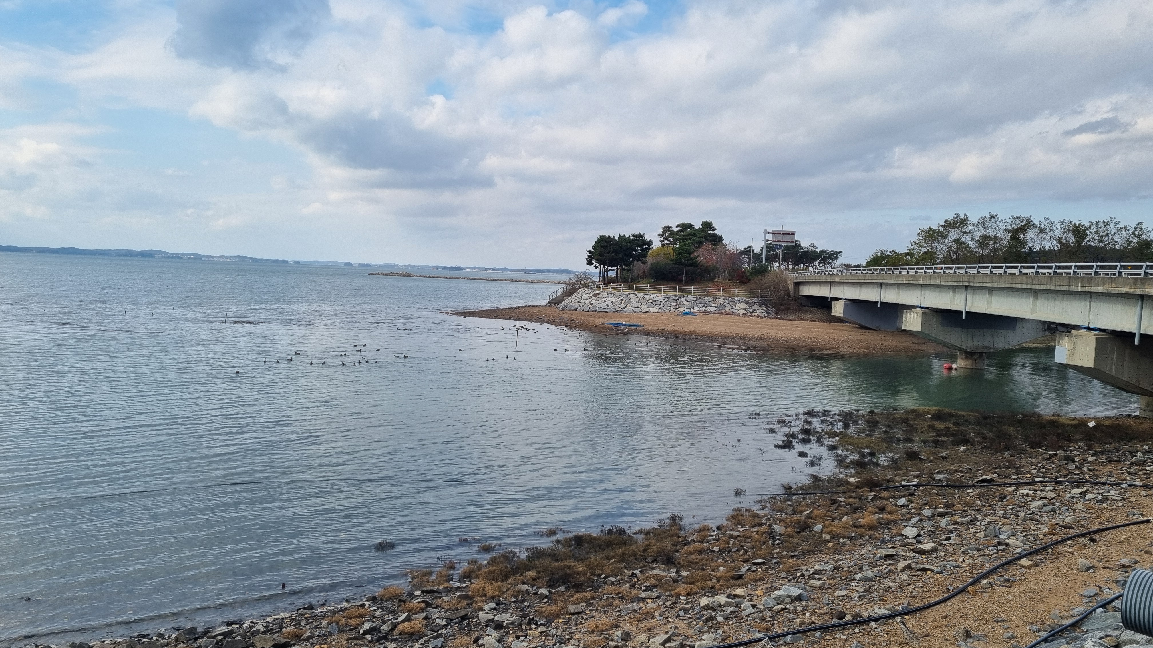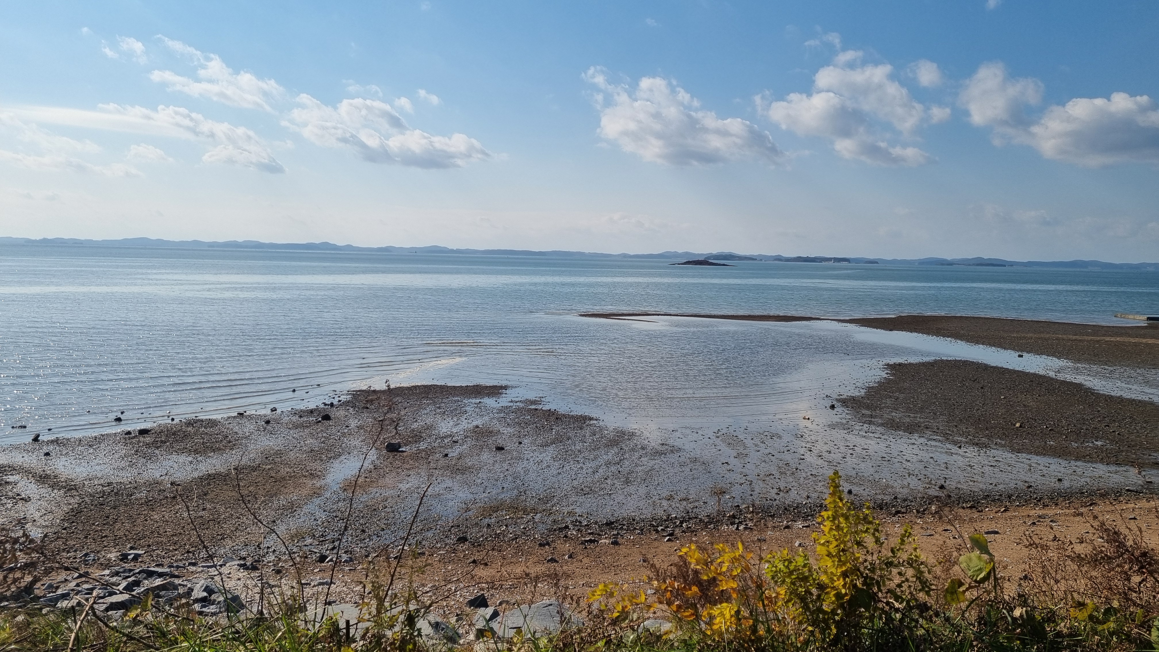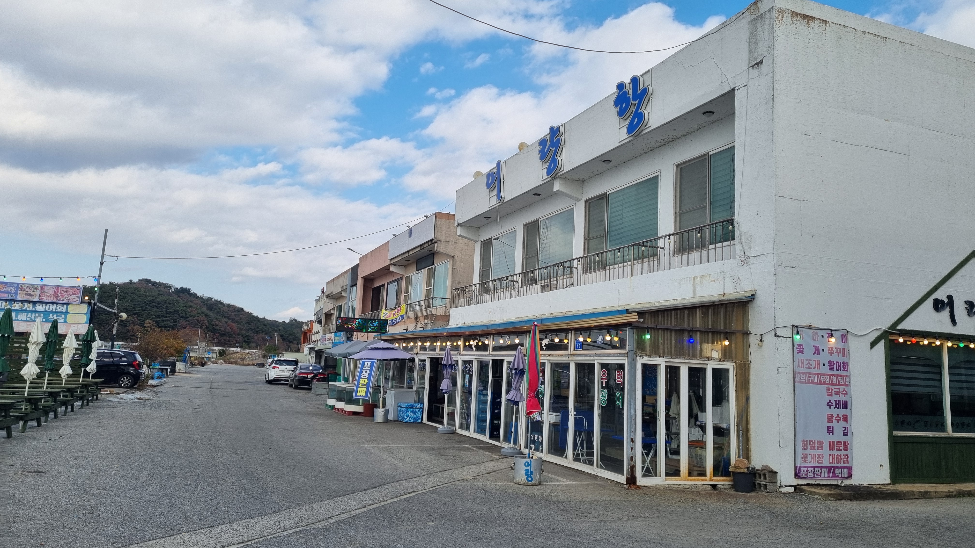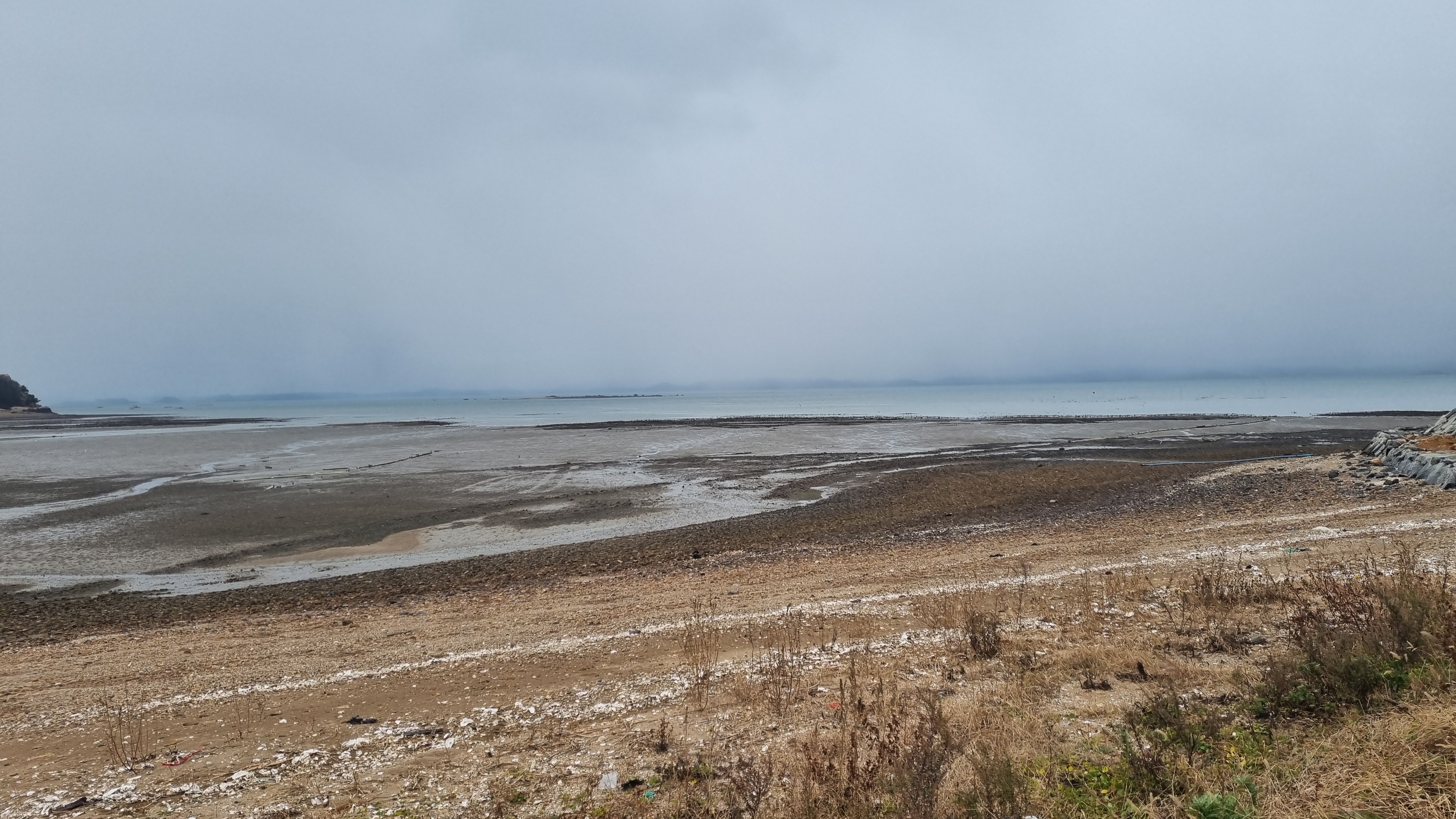 ㅇ천북굴단지 진입직전.. 두루누비앱은 해변 허릿길로 트랙이 잡혀있음. 그러나 간혹 관광객모드로서 해변으로 걷기도 하는데.. 만조 가까이 되는 밀물타임에는 일부 구간이 바닷물에 잠기기도.. 우회루트까지는 필요 없지만 만조시는 반드시 산허릿길로 올라 걷기를 권함.
