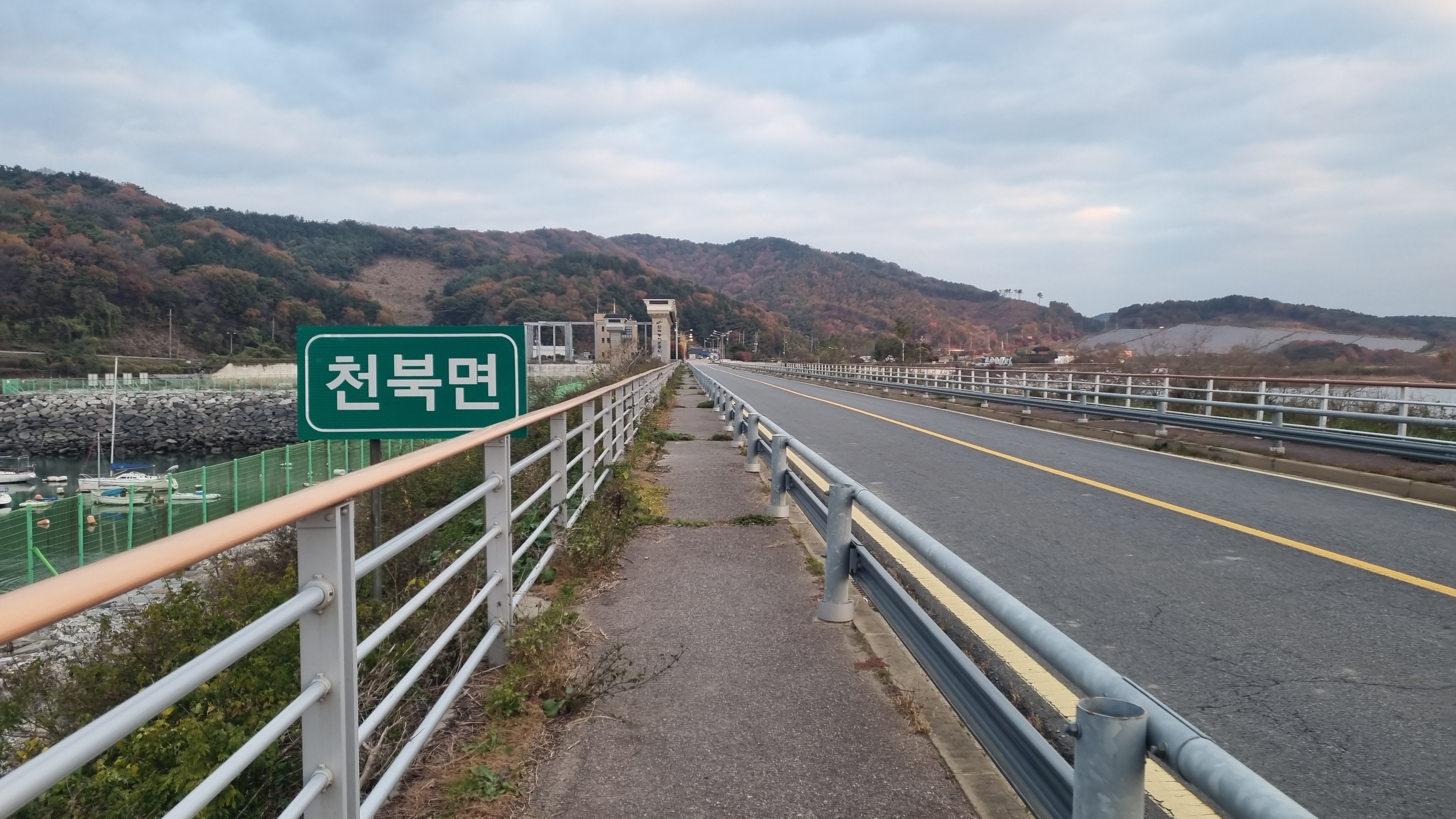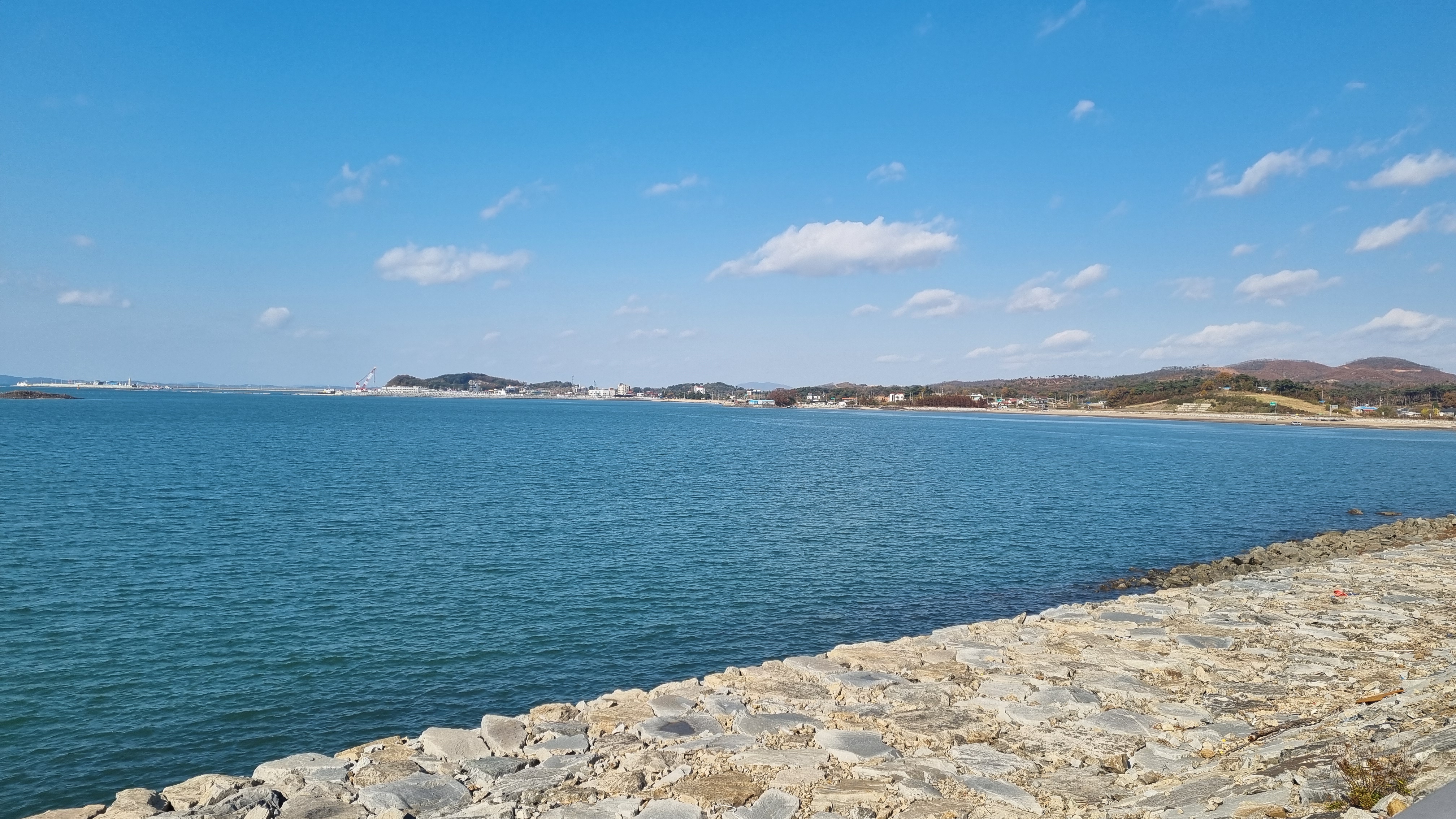 방조제 중간 지점에 홍성군과 보령시 경계가 있습니다.