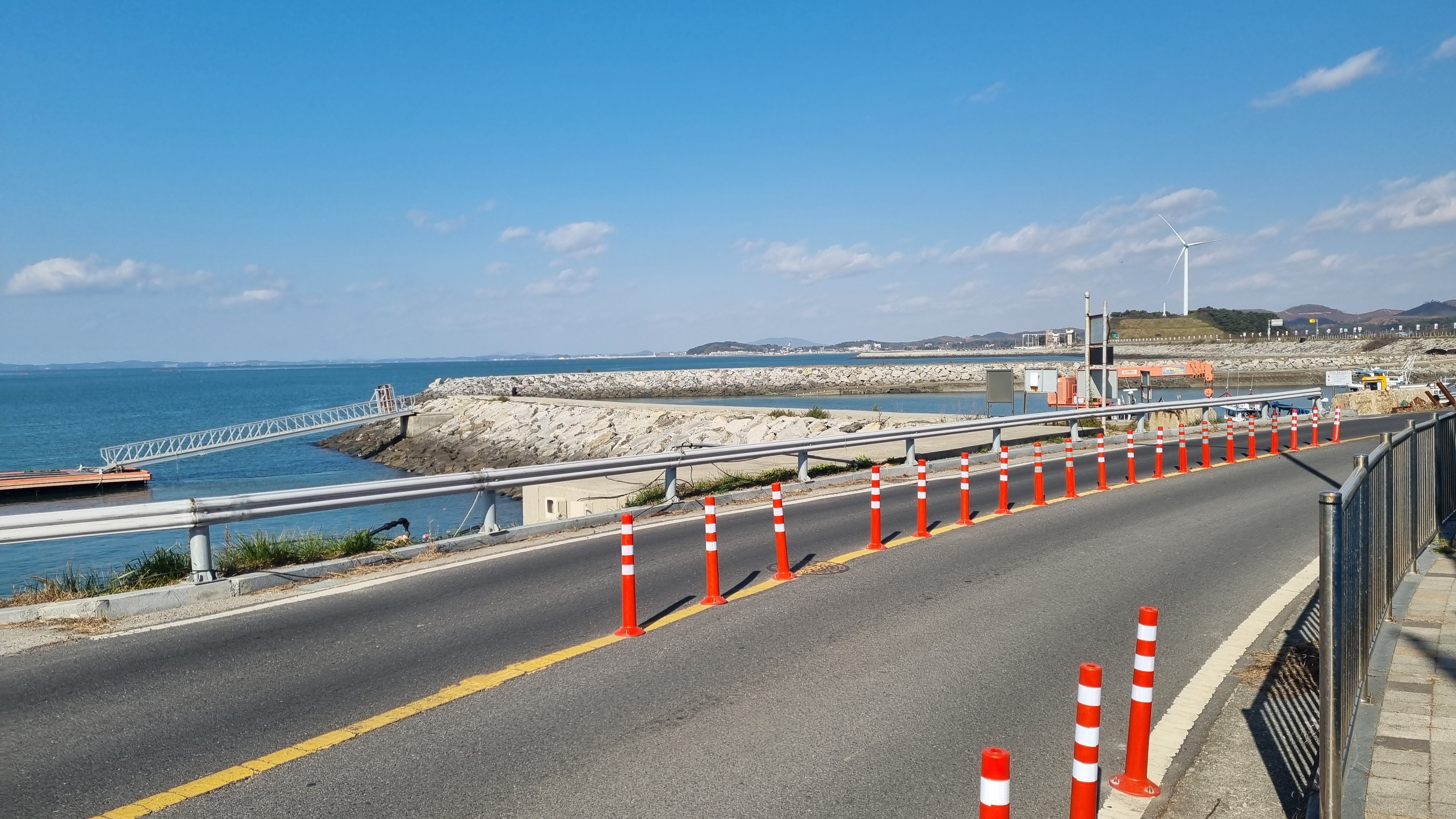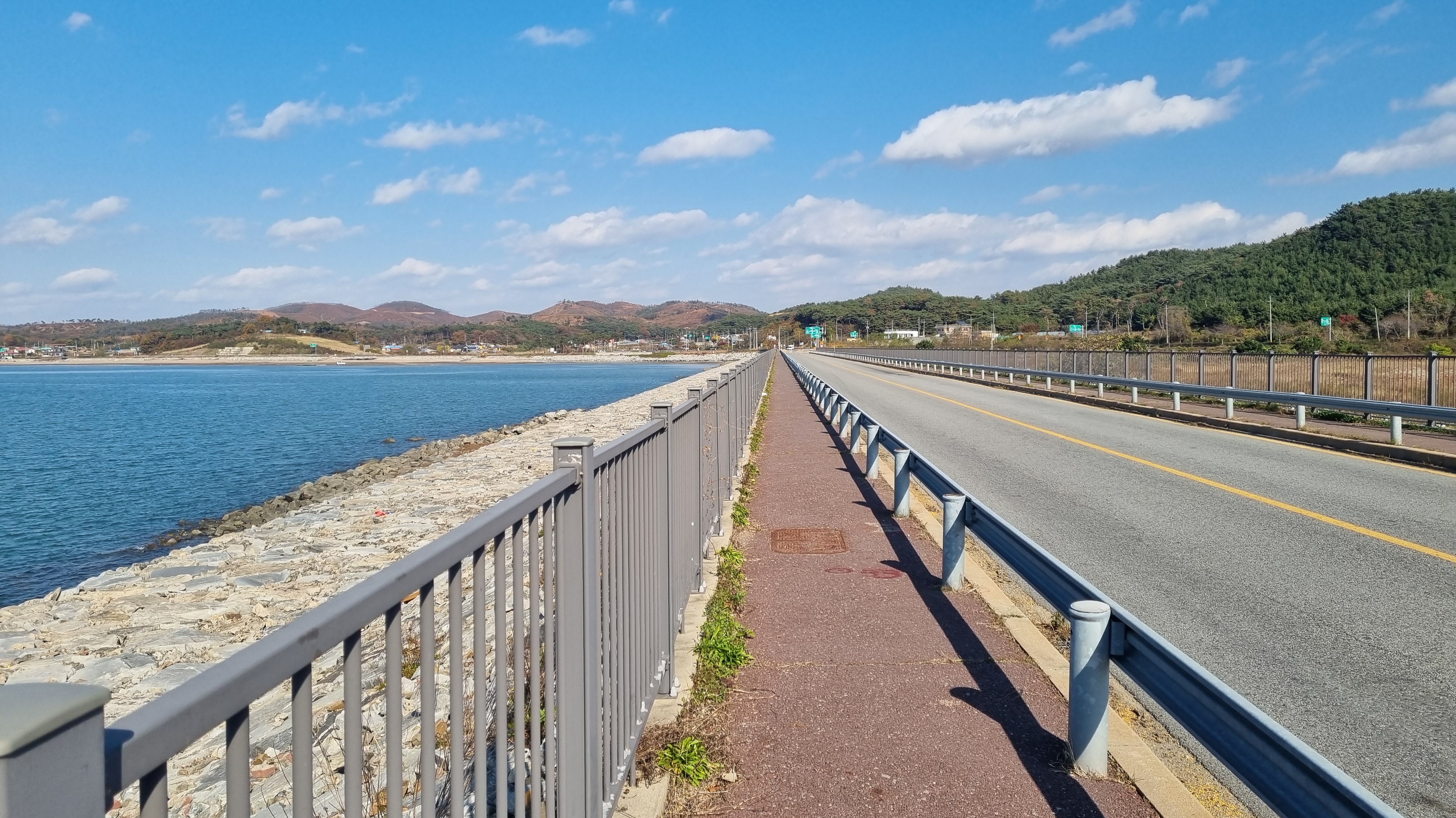 길은 성 위에서 보았던 보령방조제를 향합니다.