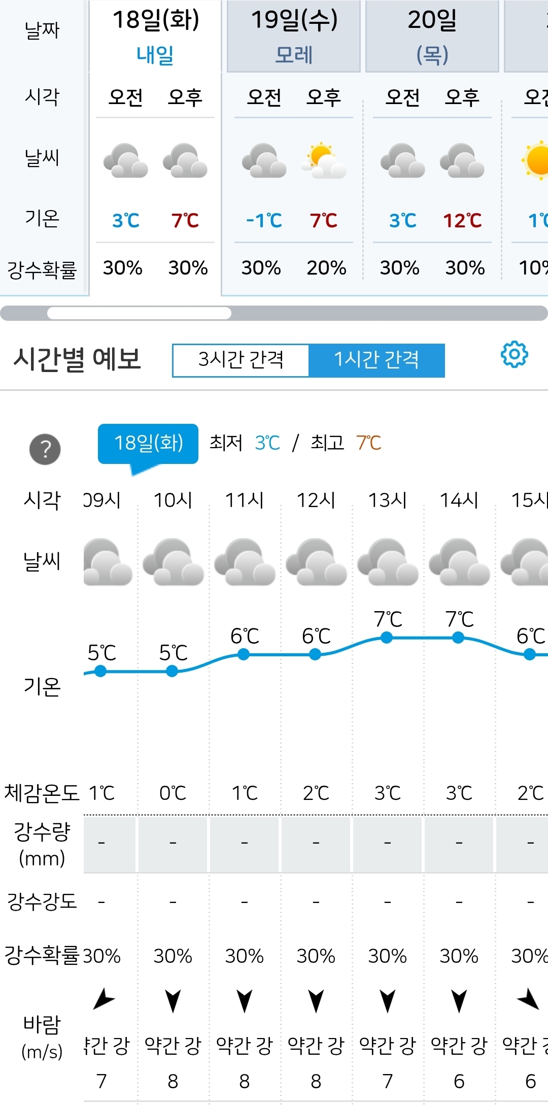 2. 날 씨 : 흐리고 한 때 눈. 5-7도 내외.