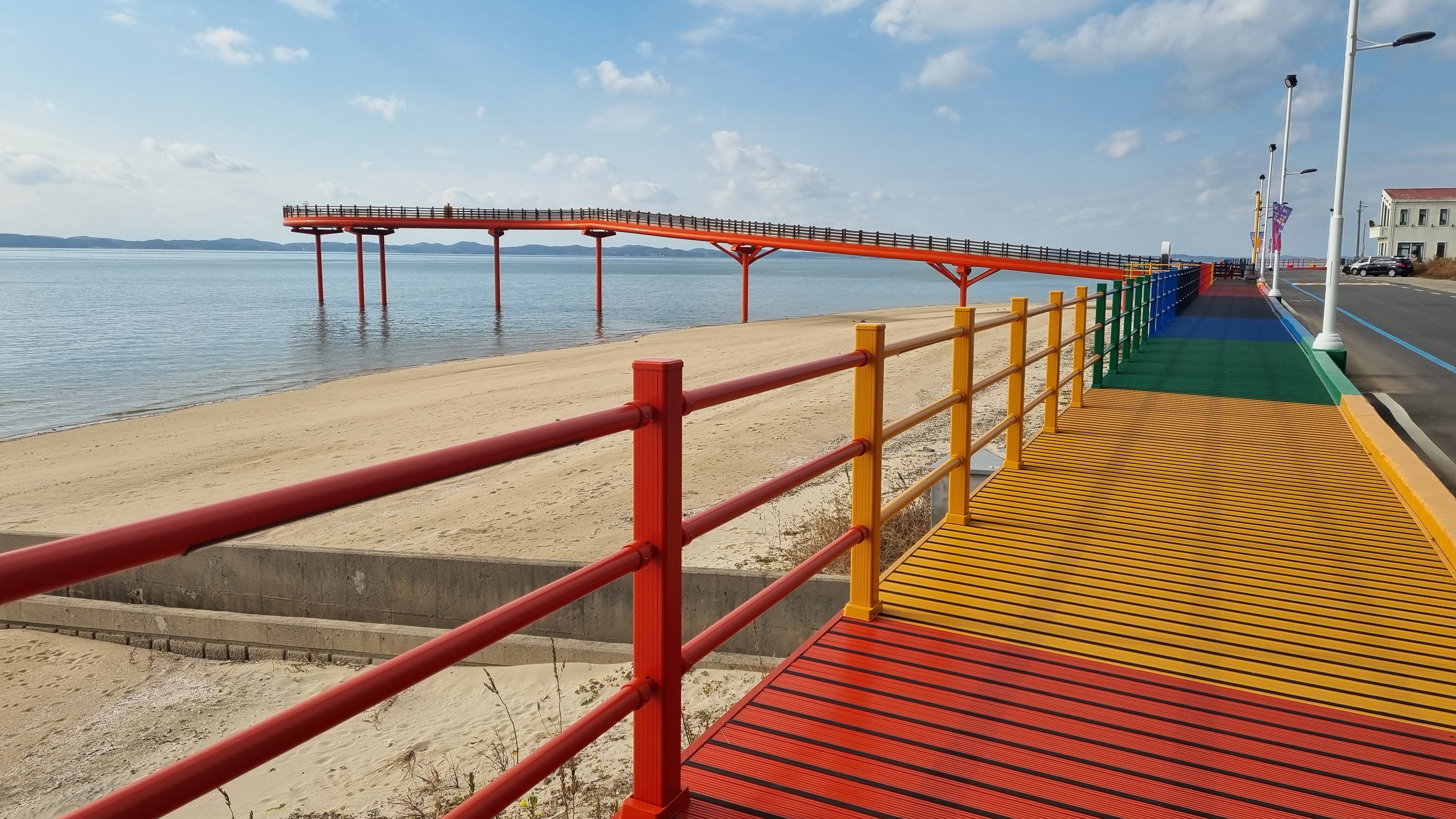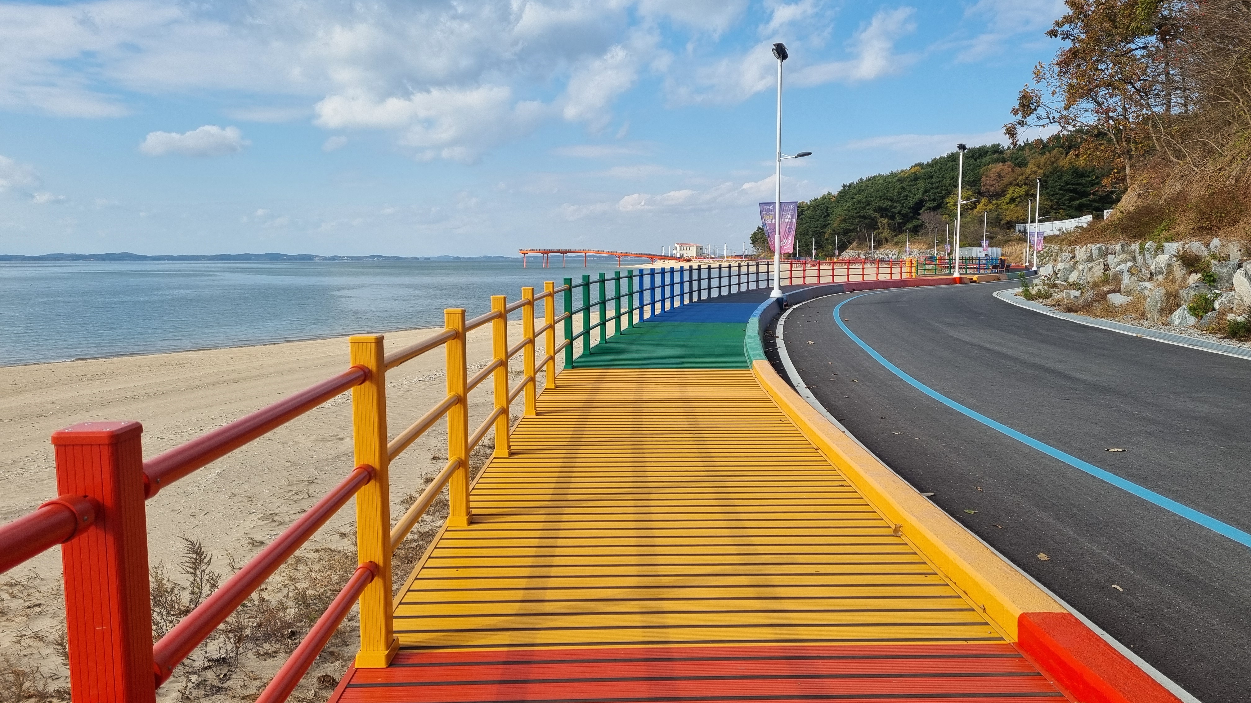 빨주노초파남보 순으로 데크와 가드레일이 색깔을 입혔습니다.