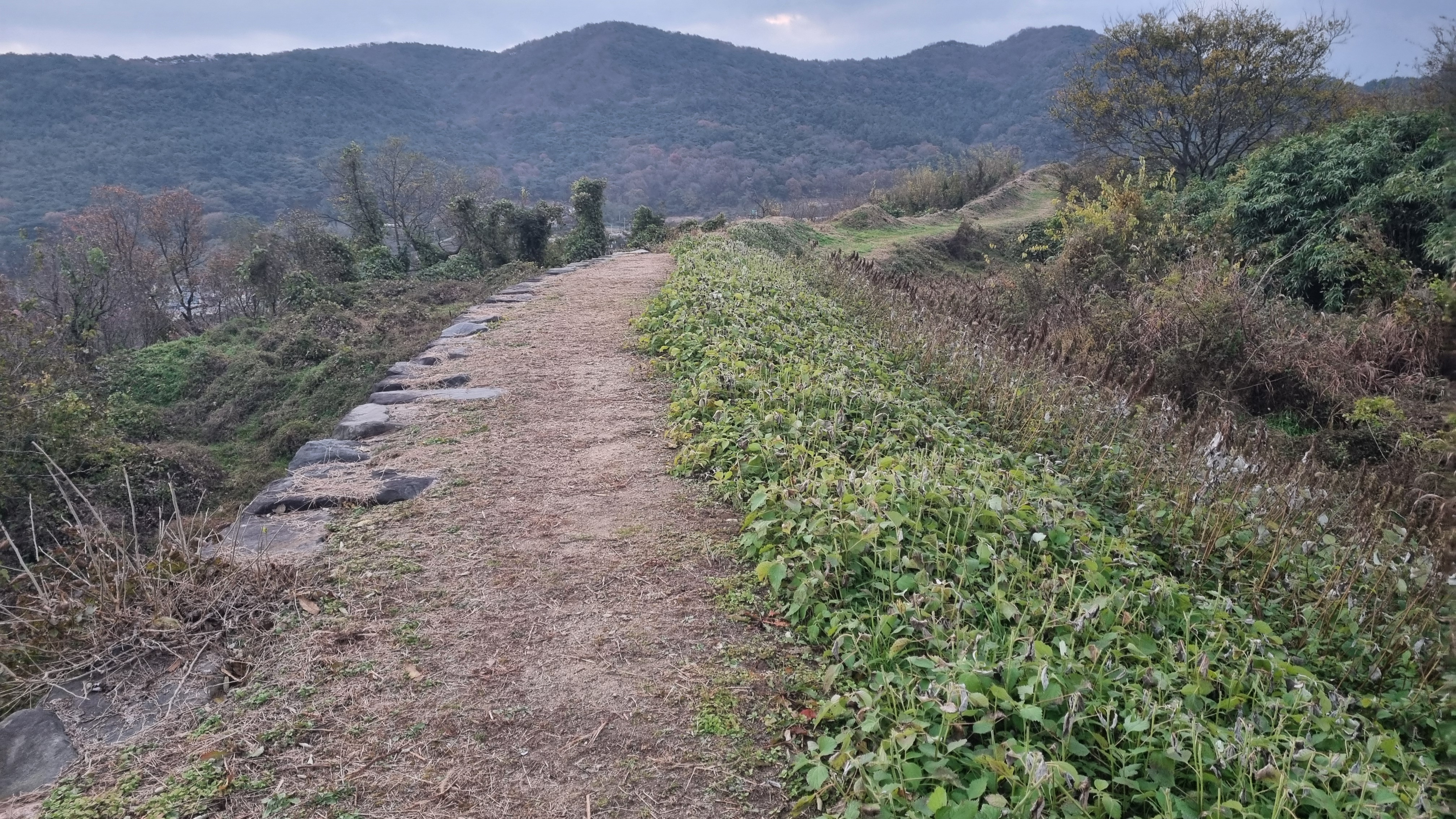 도로 따라 내려서면 안 되고.. 도로 건너 이어지는 성곽을 따라가야 합니다.